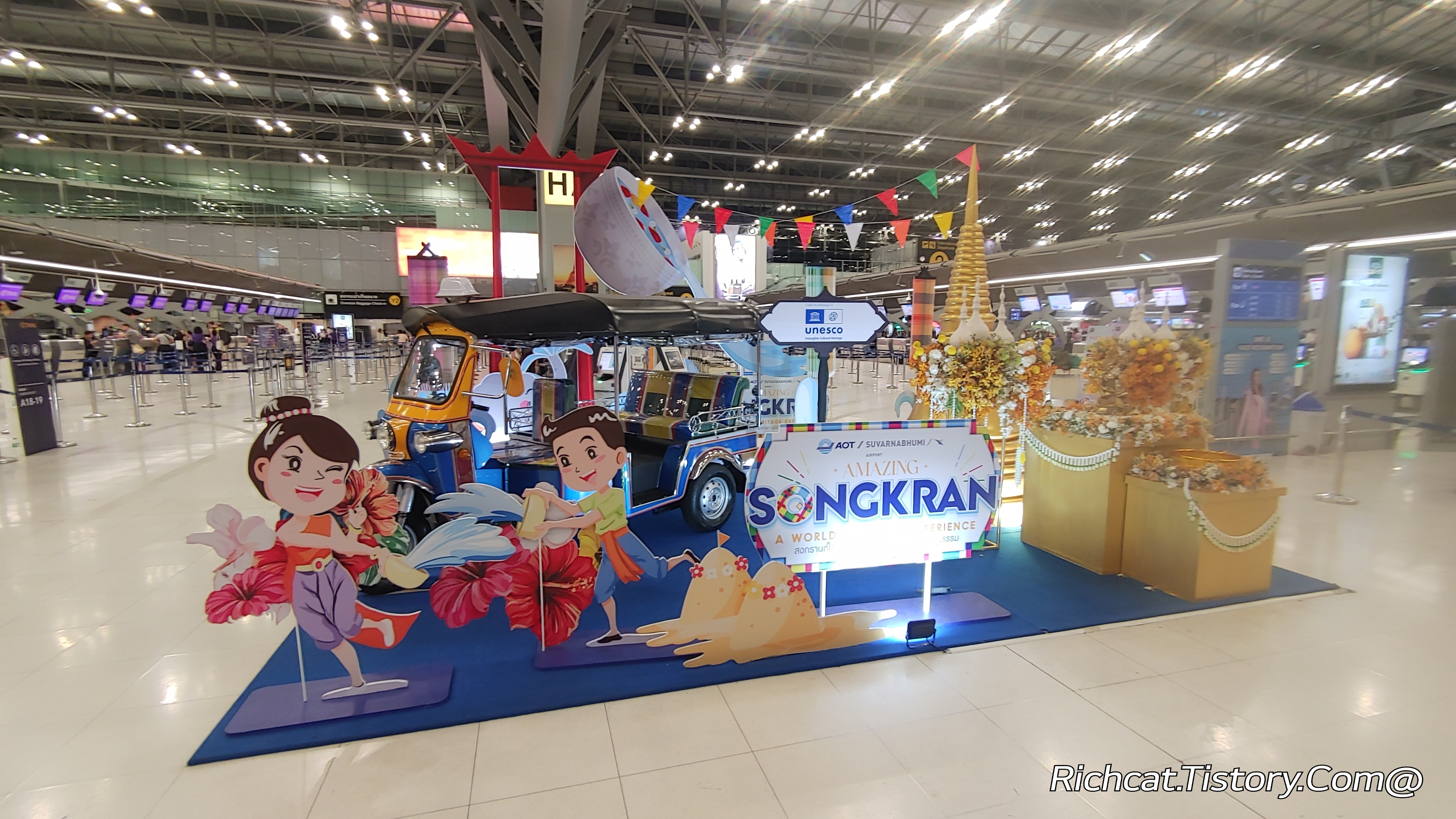 수완나품 공항 여기저기 송크란 축제를 홍보하는 입간판이 세워져 있다