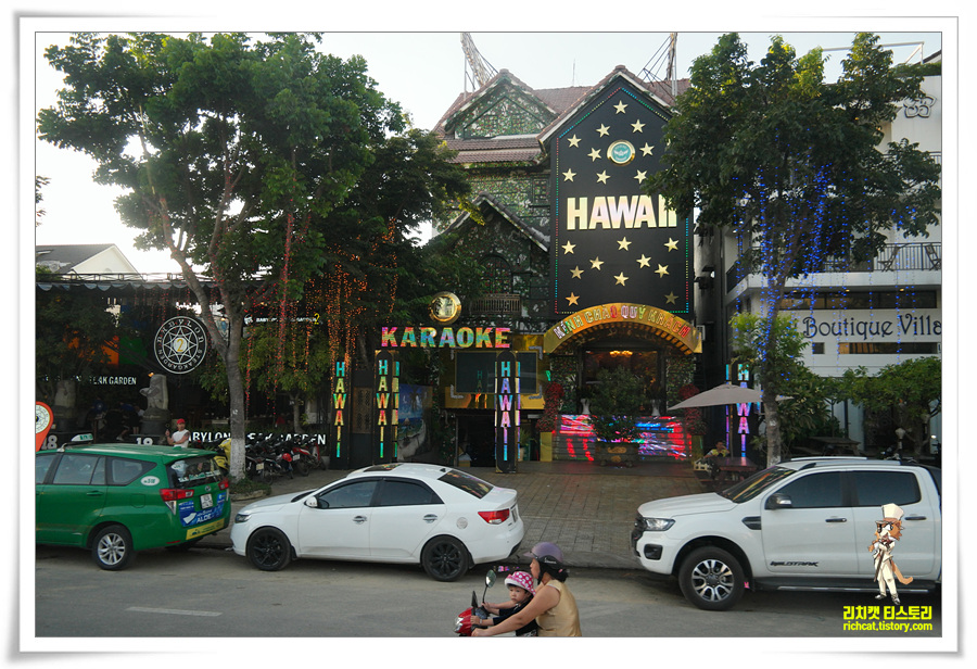 다낭엔 무지개색 파사드의 노래방이 있다.