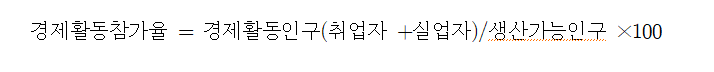 한편 노동가능인구에 대한 경제활동인구의 비율을 경제활동참가율이라 한다.