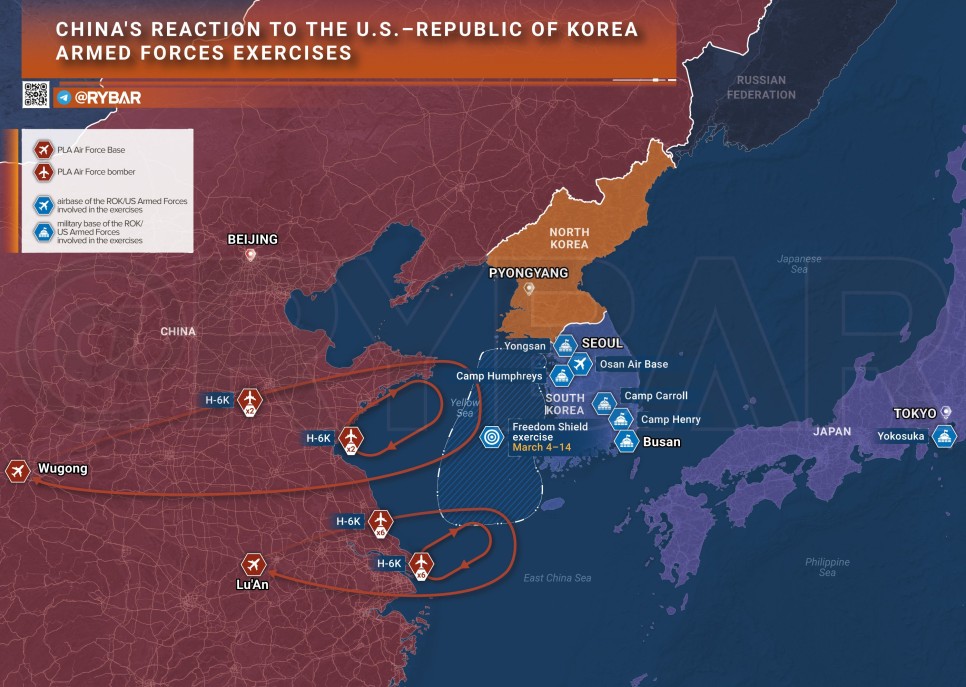 중국반응│한국 겨냥 중국 인민해방군의 핵 공격 훈련│이란의 이스라엘 공습 한달 전 중국 폭격기 16대 동원해│용산 평택 오산 대구 칠곡 부산에 핵 미사일 96발 투하│중국어로[路]