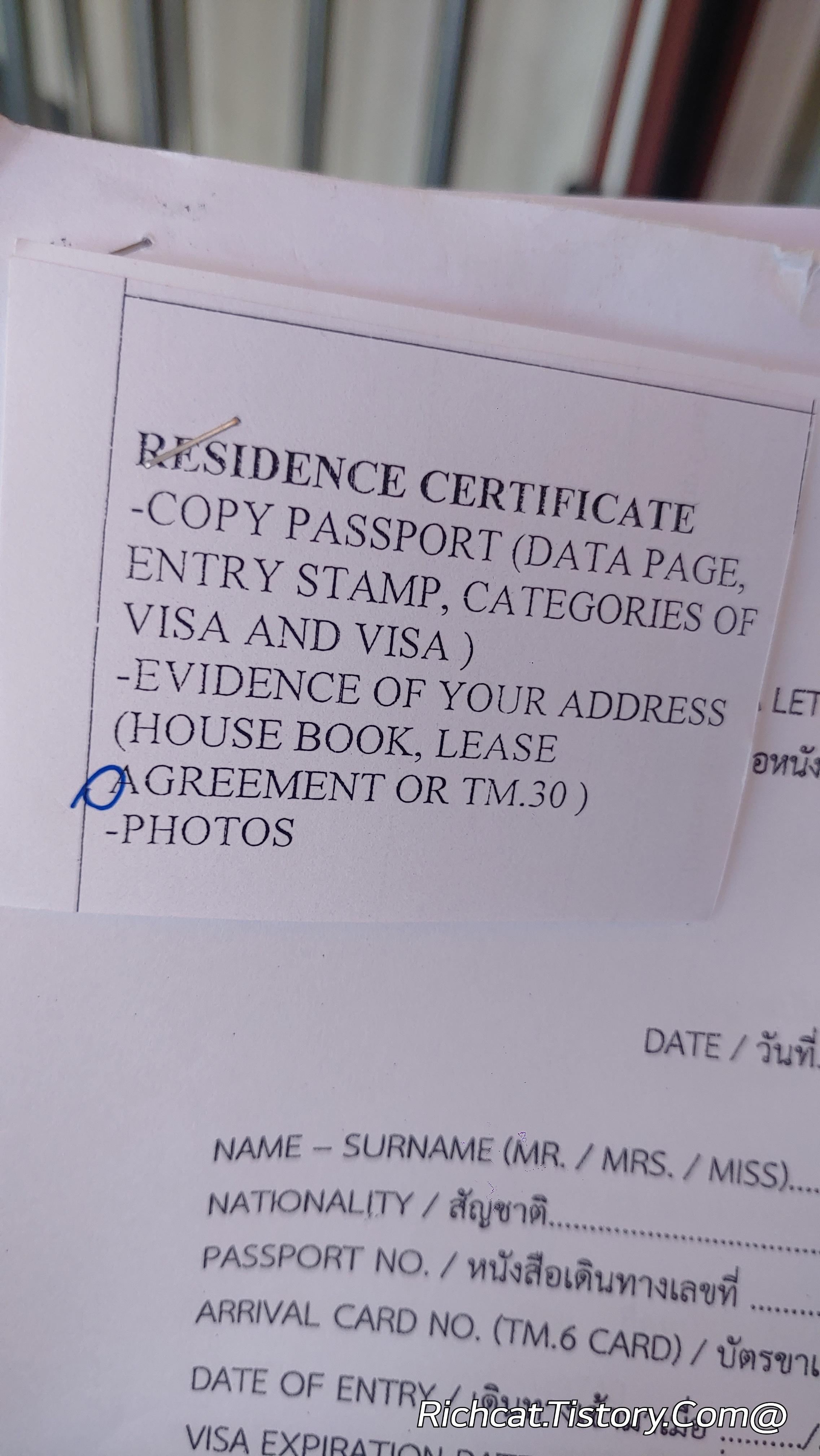 태국 파타야 촌부리 이민국에서 필요한 서류들