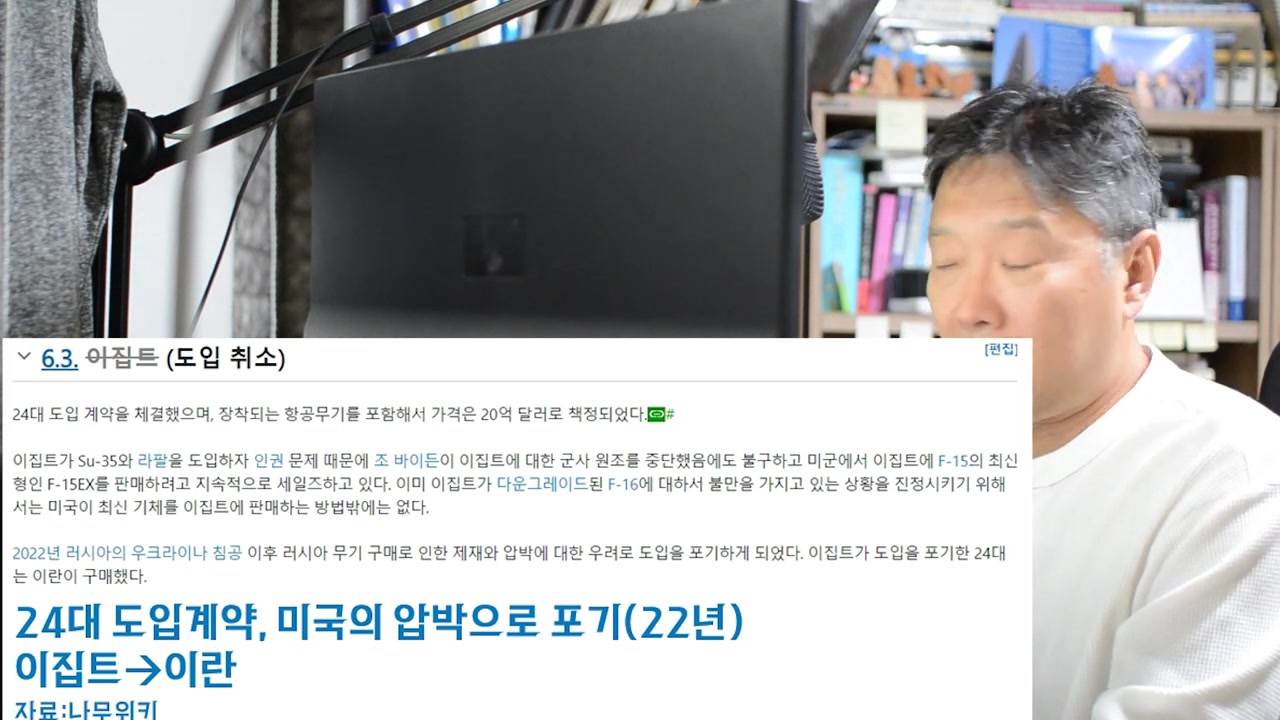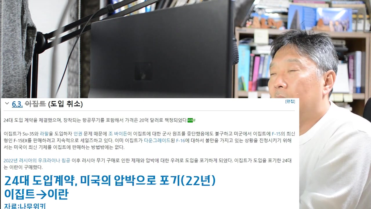 | 러시아 이란에 Su-35 판매 가능성. 미국 묵인하나? KF-21 개발이 큰 도전인 이유 안녕하세요 여러분, 쓴도곡입니다. 예, 오늘은 24년 4월 25일이고 목요일입니다. 자, 오늘은 음, 며칠 전에 러시아가 이란에 그들의 최고 사양 전투기인 Su-35를 판매 계약을 해서 곧 전달할 예정이다. 다음 주 정도에 첫 번째 인도분이 이란에 전달될 예정이다. S-400 대국 미사일 시스템도 곧 어 전달될 예정이다. 이런 이제 기사들이 있었어요. 그래서 이제 그 기사를 보면서 드는 생각을 몇 가지 이야기를 해 볼까 합니다? 미국의 입장은 이런 게 있고 어, 그 미국의 입장을 생각하다 보니까 왜냐면 이 Su-35가 사연이 좀 있어요. 이란까지 넘어가게 되는데 있어 가지고, 자 그 과정을 살펴보면 Su-35를 사고 했던 많은 나라들에 대해서 미국이 압박을 넣습니다. 그래서 포기가 된 기체 든요 예, 자 그런데 이번에는 어떨까? 미국의 입장은 거기에 대해서 뭐 가타 부사가 있느냐 이런 내용이 있고 또, Su-35에 대해서 미국이 개입하는 과정 그리고 미국이 궁극적으로 요구한 것은 미국의 방송업체 제품을 사라는 것이었거든요. 그러면 그 과정에서 우리 KF-21의 개발에 대해서도 생각을 해보게 되요. 예, 우리는 상당히 큰 손이 든 미국 방산업계 입장에서는. 그래서 우리가 KF-21을 개발하게 되면 어 좋은 구매자가 하나 빠지게 되는 셈이고, 그것뿐만 아니라 국제시장에서 미국의 방산업체 제품들과 경쟁할 가능성이 농한 그런 거예요. 자, 그래서 Su-35를 보면 아, 미국이 KF-21의 개발에 대해서 언론에 전혀 보도는 되지만, 상당히 압박을 넣겠다. 지금도 그 압박은 진행 중이다. 성서로 넘어가지 못하게, 예, 이런 생각을 감히. 해보겠습니다. 어, 그래서 제가 생각에 맥락을 여러분한테 좀 공유드리고자 합니다. 물론, 이건 제 개인적인 생각이죠. 자, 저희 싱포스트 기사를 보면 전에, 4월 15일 날, 어 이때 기사들 쭉 많이 있었어요. 여러 가지 언론에서, 러시아 무기를 이란이 이제 받아들여서 살 거죠. 구매해서 이란의 방공망이 강화될 예정이다.. 예, 이란은 지금 지상군에 비해서 또, 뭐, 이스라엘과의 전투를 염두해 둔다고 했을 때 해군은 그렇게 큰 의미가 없다고 봅니다. 그래서 지상군에 비해서 공군이 열다 아도 하기 위해서는 기술력이 상당히 따라줘야 되니까, 이런 뭐, 미사일 이런 거 좀 다르죠. 예, 그래서 가지고 있는 게 뭐, 최신 기준이 미거 29 정도가 있고, 그 외에, 예, 옛날에 미국하고 사이가 좋았을 때 샀던 F-14 톰캣, 요런 거는 이제 오래됐다고 봐야 되겠죠. 그래서 여기 균형을 맞춰 주기 위해서 러시아가 그들의 최신 전투기인 뭐 상당히 훌륭한 전투기로 평가받고 있죠. 4세대, 4.5세대 플러스, 4.5세대 플러스, 이런 식으로 분류가 되는 전투기예요. 여기서 누가 붙으면 누가 이기는다, 이 별 의미가 없는 거죠. 예. 그래서 4세대, 4.5세대 플러스인 비행기이고, S-400 시스템은 제가 보기로는 전 세계 최고 수준의 방공 미사일이라고 봅니다. 우리 어디, L 개발에도 상당히 큰 영향을 주고 있는 미사일이라고 봅니다. 어떤 점이냐 하면, 우리의 지금 천이나 천 러시아에서 S-350으로 됐고, 그 마음에 들어 한 거든요. 원래는 S-300이 있었고, 100단위 넘어가 S-400 그다음 S-500인데, 한국하고 한국은 기술 이전을 했고, 그들은 돈이 없었죠. 구소리 붕괴되고 난 후 이제 공동으로 우리가 돈을 다 대고, 그들이 우리한테. 무기를 우리 사양에 맞는 한국의 상에 맞는 무기를 개발해 준 사인데, 그때 사 레이다 방식 다 들어오고 미사일 시스템에 대한가 오게 되는 것으로 봐집니다. 자, 그래서 어 그렇게 만들어 줬는데 만들고 보니까 괜찮다. 러시아도 원래는 자기들이 그걸 채택할 생각은 필요 없었던 거 같아요. 왜냐면 s300 있고 400도 개발하고 있었으니까. 근데 의외로 어 중거리 미사일로 어 이걸 보완을 하면은 기존 s300, S 400에 빈틈을 좀 텀을 좀 메꿀 수 있고 그들의에 배치 부담을 좀 줄일 수도 있겠다. 이런 생각을 한 거 같아요. 그래서 s35 공 개발된 거잖아요.. 그래서 어 러시아 반공은 세계 최강의 공력을 가진 미국을 상대를 해야 되기 때문에 미국은 지금 어떻게 보면 패트리아 정도밖에 없는 상황이에요. 사실은 예, 패트리아 우리 어 천공이나 천공 2하고 비슷한 수준의 미사일로 돼 있단 말이에요. 예, 자 그래서 그들은 압도적인 미국. 미국은 압도적인 공력을 바탕으로 하고 있기 때문에 모든 전쟁에서 아, 방금 방 국 미사일에 대한 투자는 좀 약했다. 근데 그 정 반대는 러시아다. 그래서 러시아 S400 미사일은 상당한 수준일 것으로 봐진다. 그래서 이미 우리는 기술을 핵심 기술은 러시아의 것을 다 가져왔지만 아직도 S 400은 그 컨셉이라면에서 어떻게 방공망을 구성하는지에 대해서 그런 컨셉은 우리한테 큰 어 참고가 되지 않을까 전 그렇게 생각합니다. 예를 들어서 셈이 있고, 그 어 슨과 또 우리가 개발해 놓은 어 천궁 2 뭐 이런 것들이 따로 노는 게 아니거든요. 한방 공 시스템에서 서로 상호 보완적으로 사용되게 돼 있어요. 효율적으로 예, 그런 데서는 미국이 그런 시스템을 구축하고 있지 않기 때문에 우리가. 본보기로 삼을 것은 러시아 시스템 밖에 