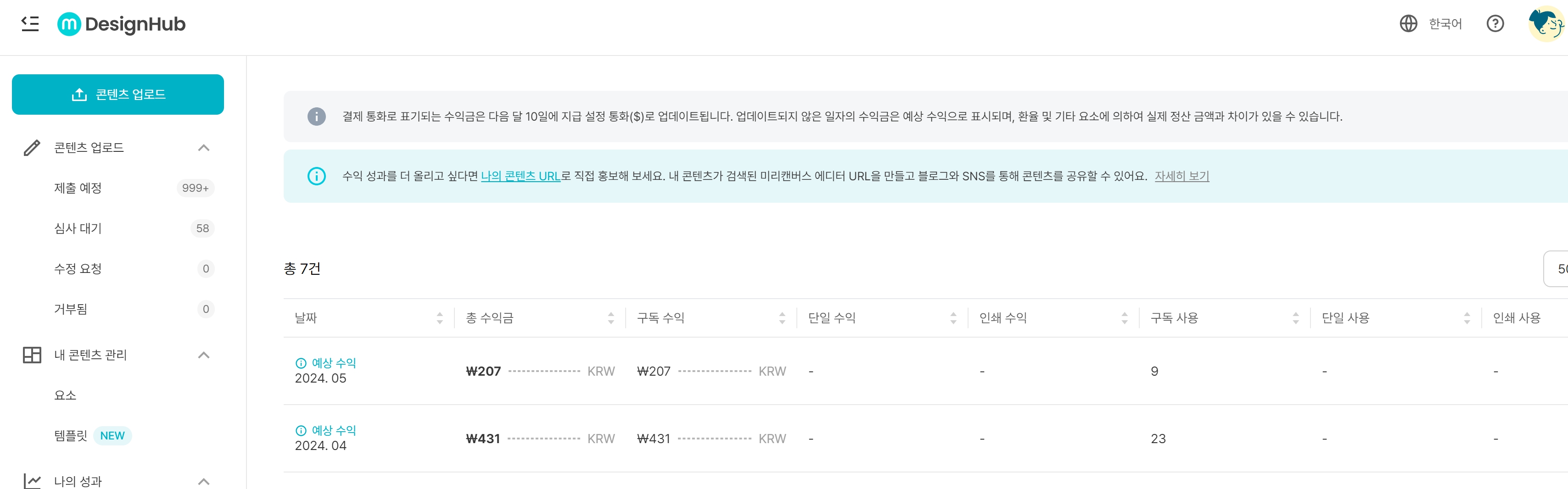 미리캔버스. 디자인허브에서 사진 23장이 판매되면...수익은 얼마일까?