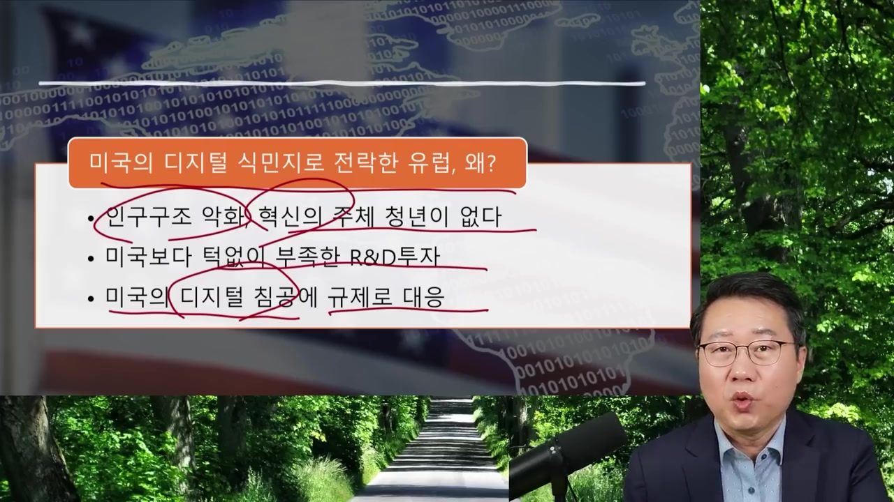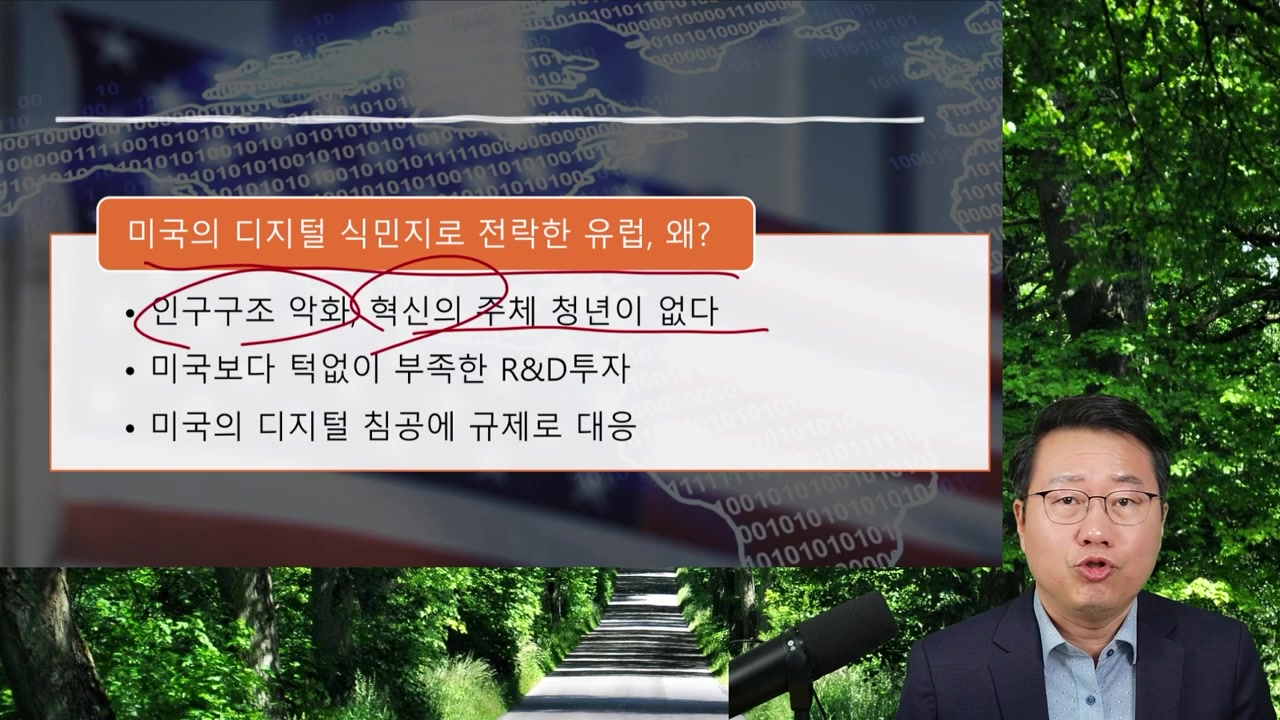미국의 강력한 디지털 성장으로 유럽은 미국과 혁신 대신 방어에 치중하며, 혁신적 청년들이 미국으로 끌려 디지털 식민지화되는 문제가 발생한 거죠.