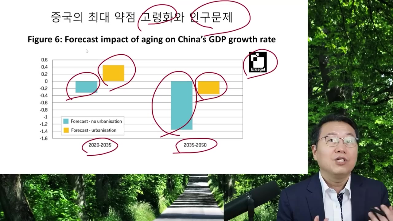 - 도시화로 인해도 성장 저하 예상되며, 35년 후에는 -1.4% 성장 전망.