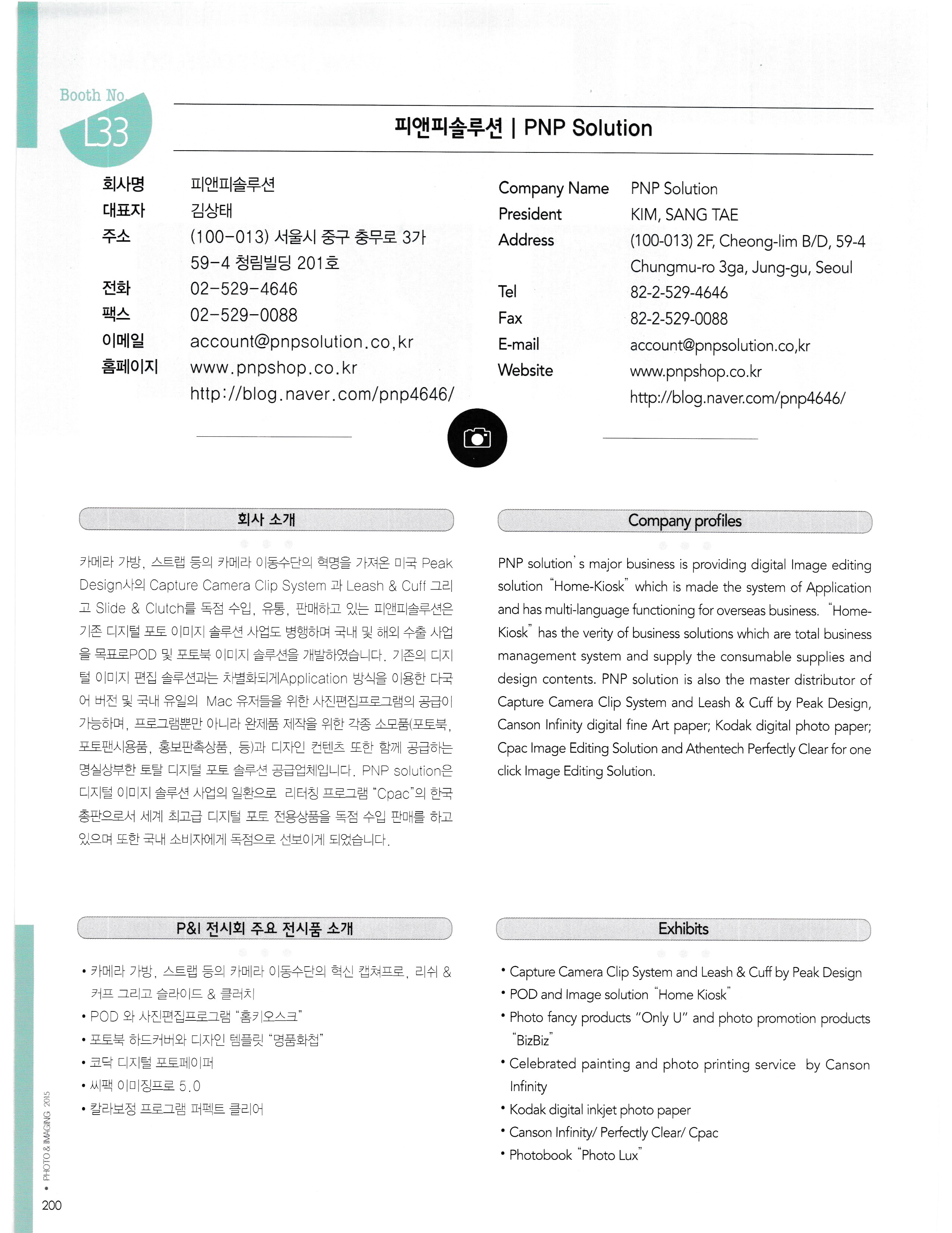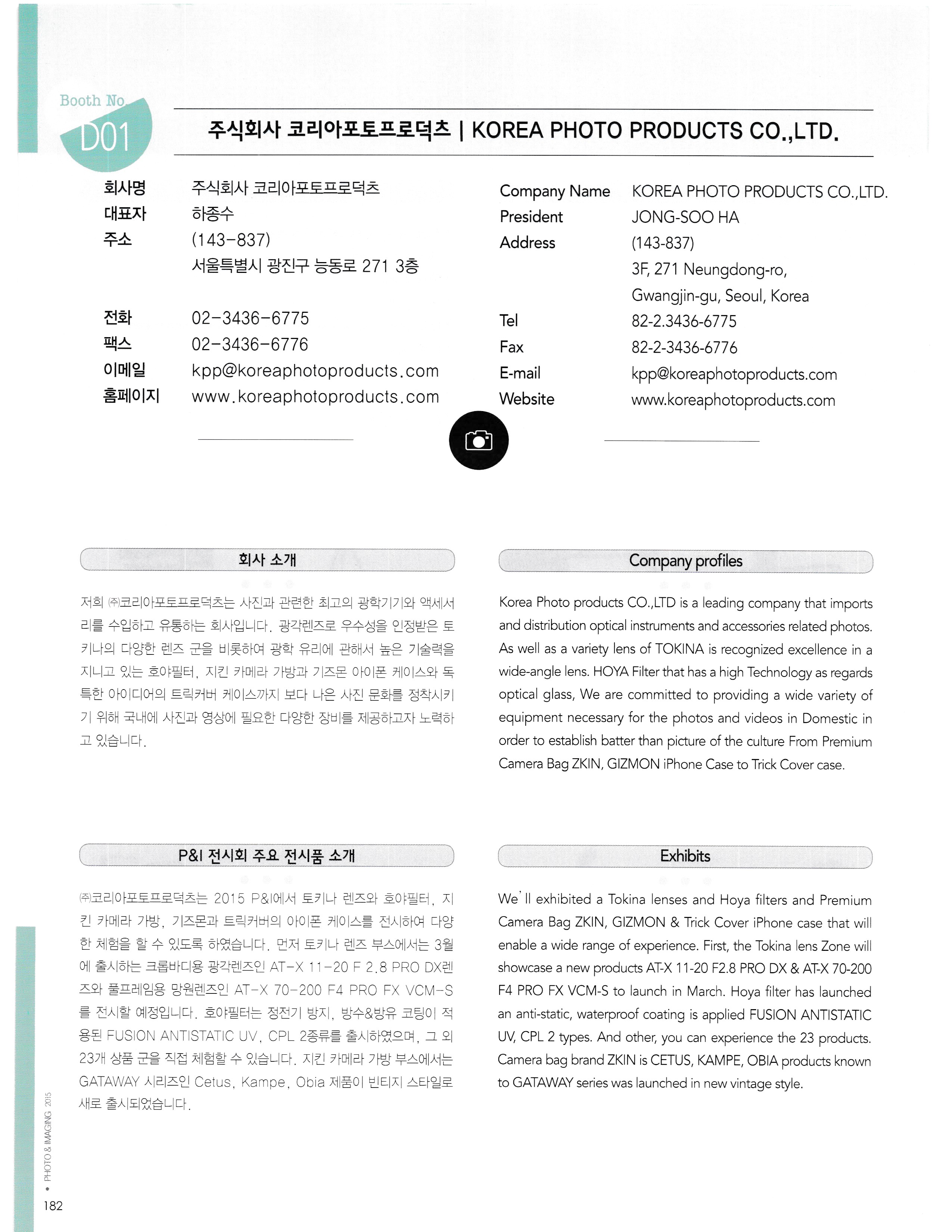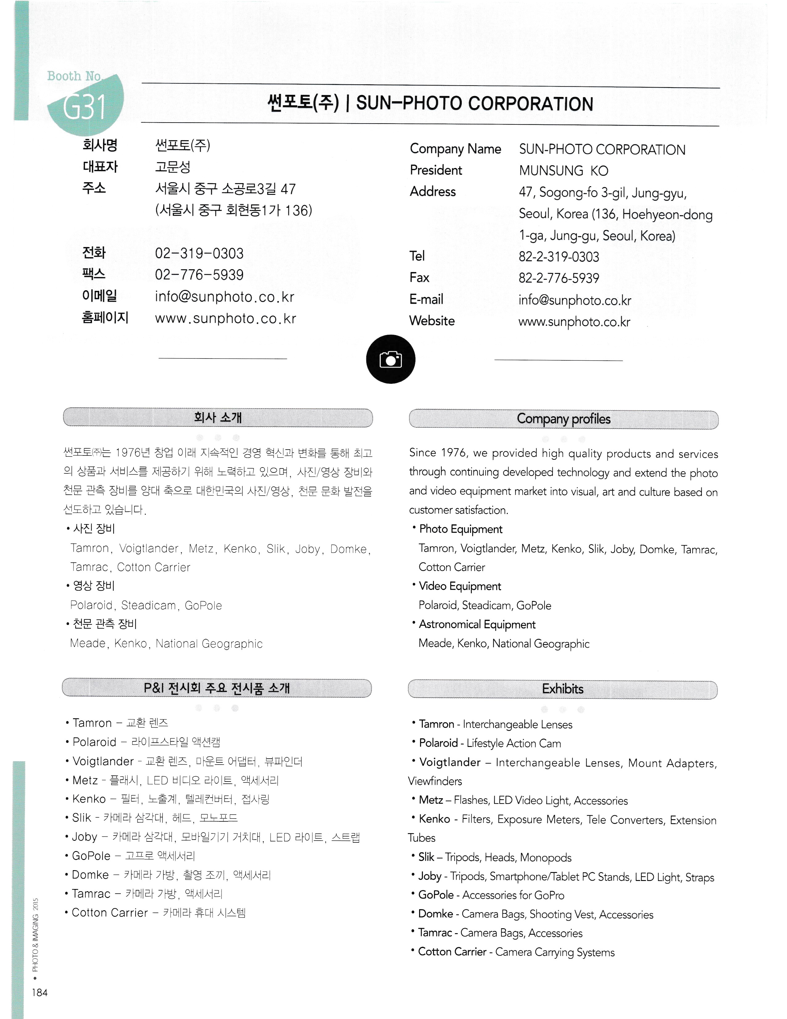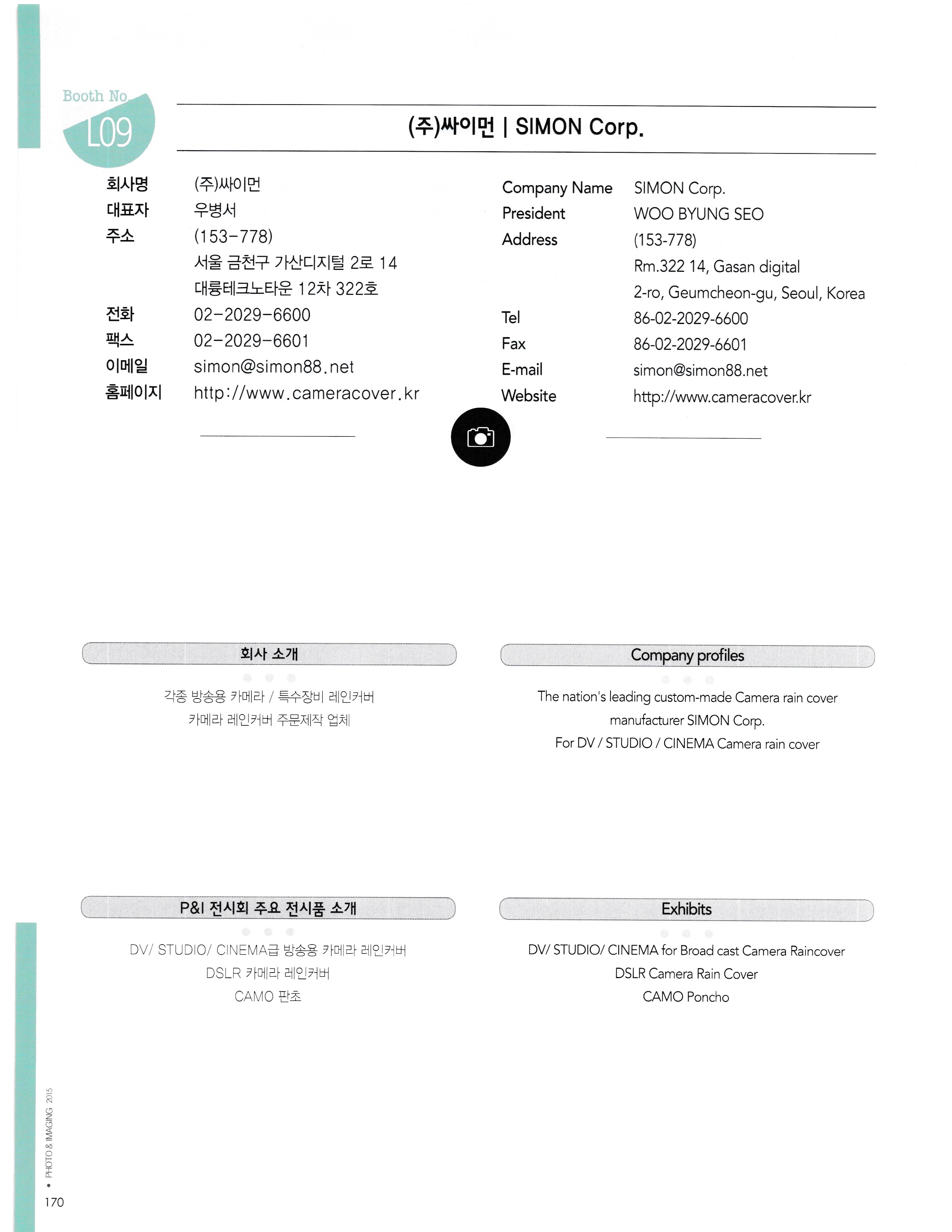 | P&I 2015, 제24회 서울국제사진영상 기자재전, 기업리스트, 참가기업리스트,-3 (0) | 2019.07.22 |