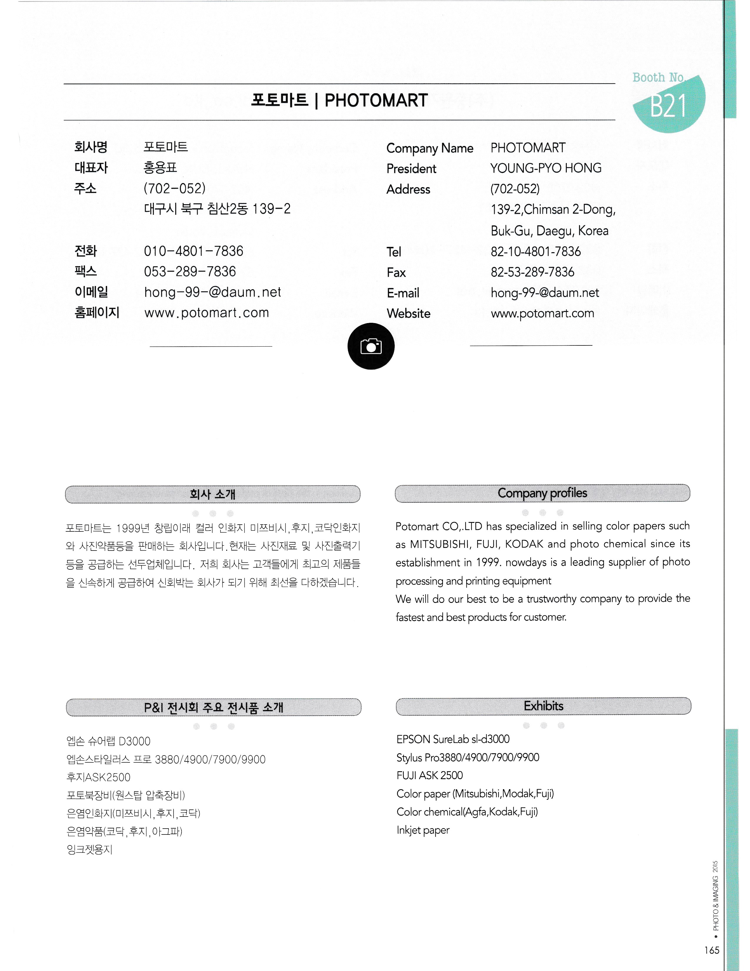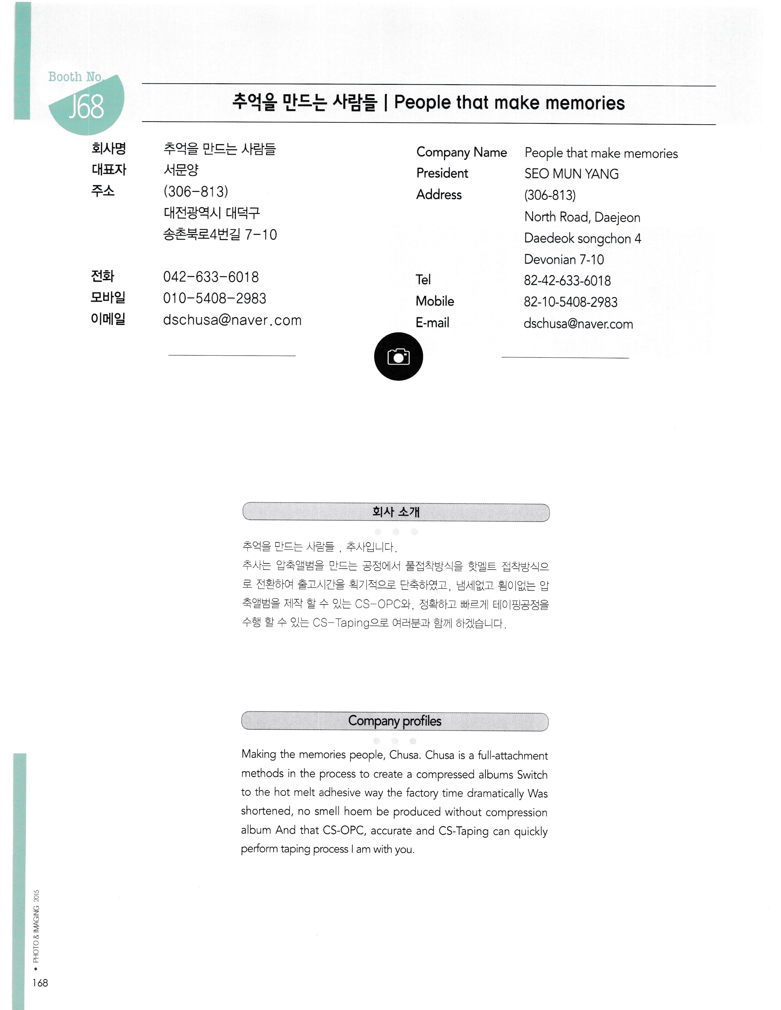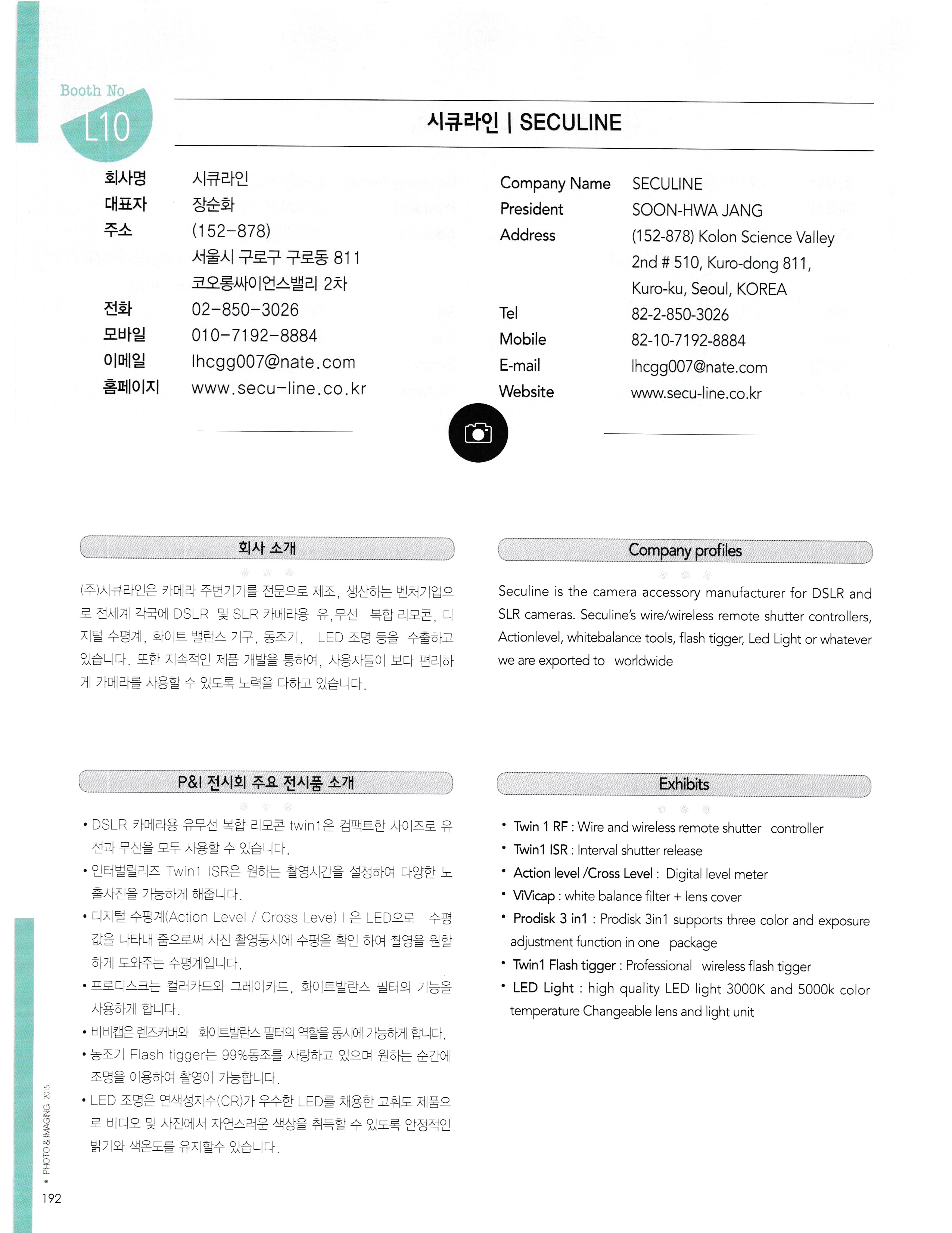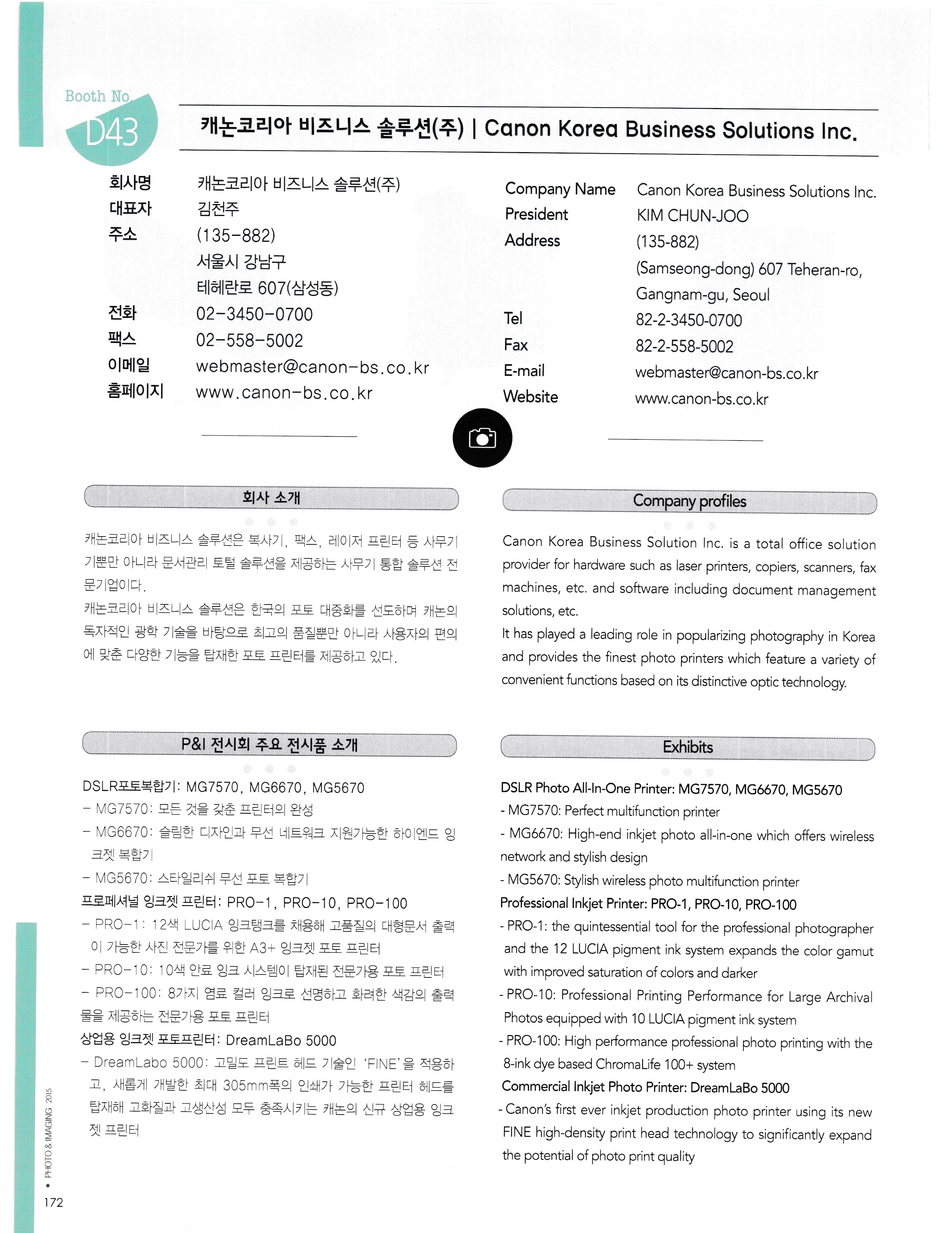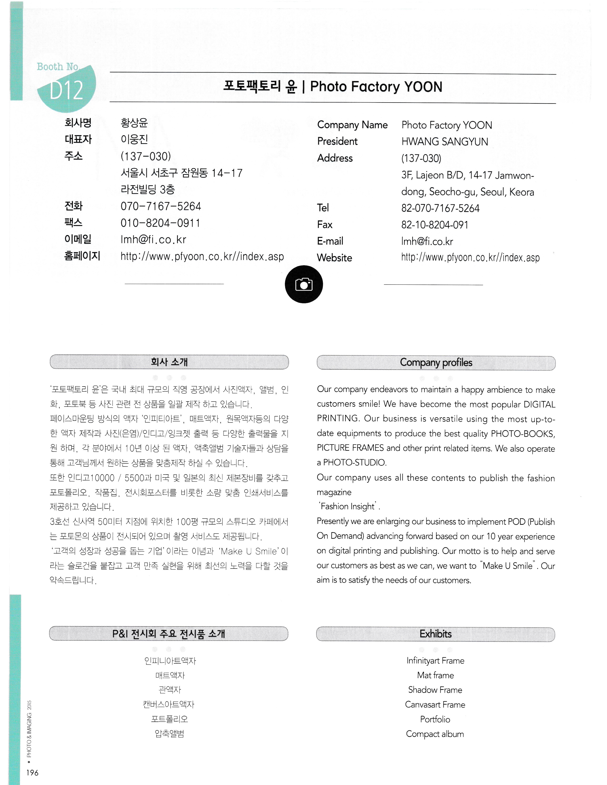 | P&I 2015, 제24회 서울국제사진영상 기자재전, 기업리스트, 참가기업리스트,-3 (0) | 2019.07.22 |