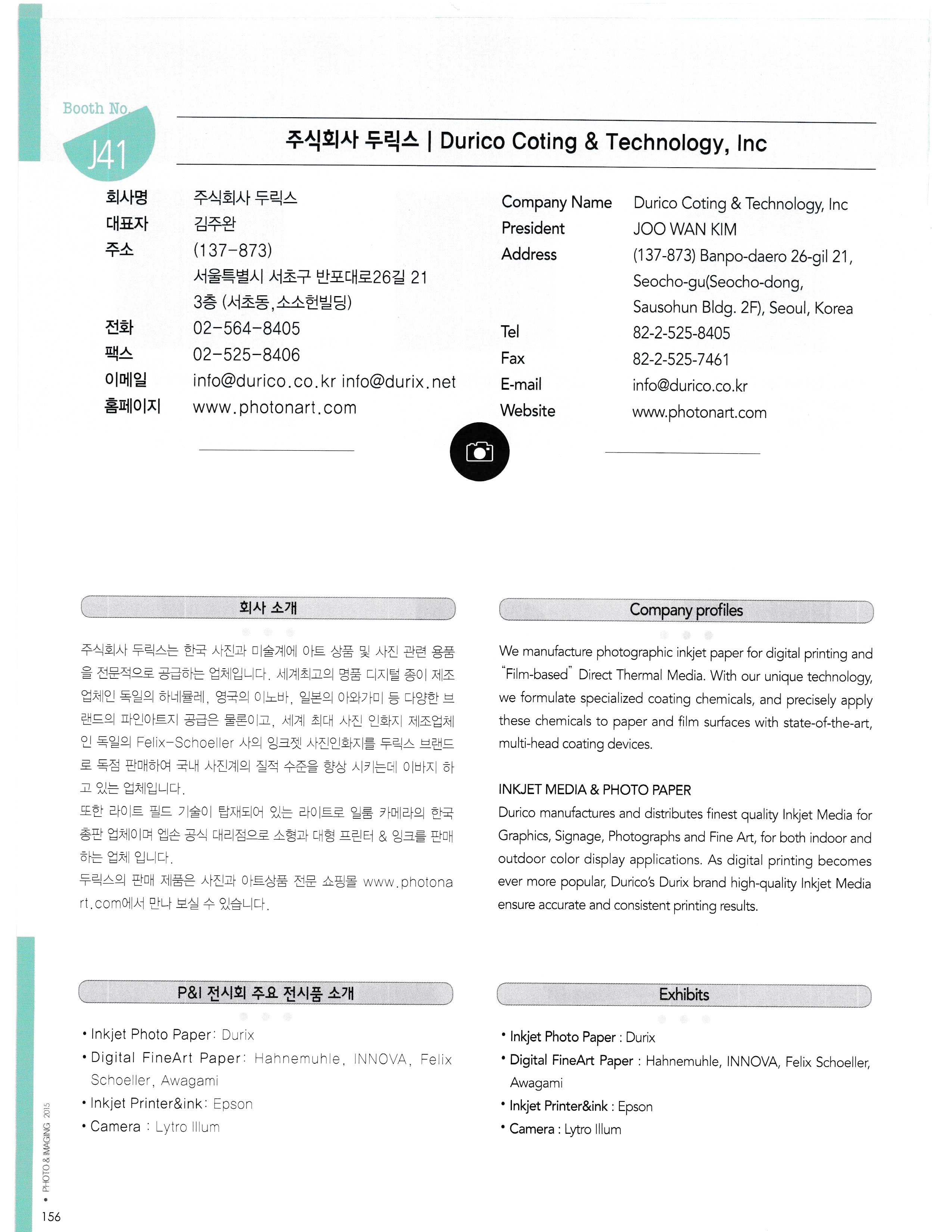 P&I 2015, 제24회 서울국제사진영상 기자재전, 기업리스트, 참가기업리스트,