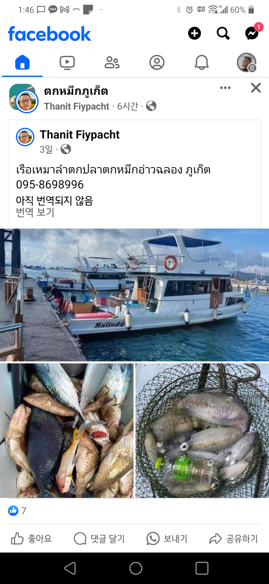 오징어 낚시 전세 보트, Chalong Bay, Phuket 095-8698996