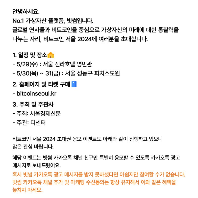 [비트코인 서울 2024] 초대권 드림🎁