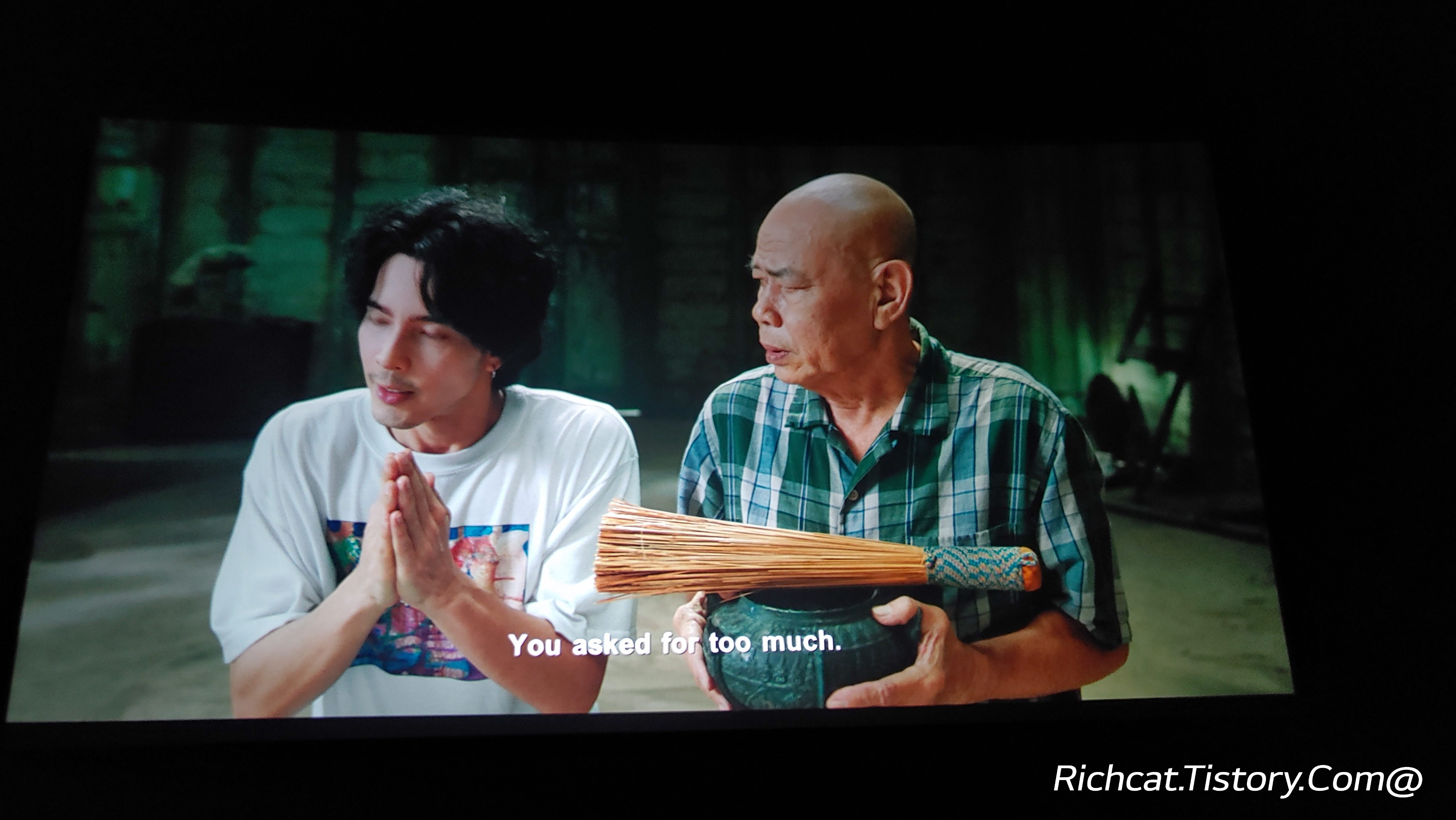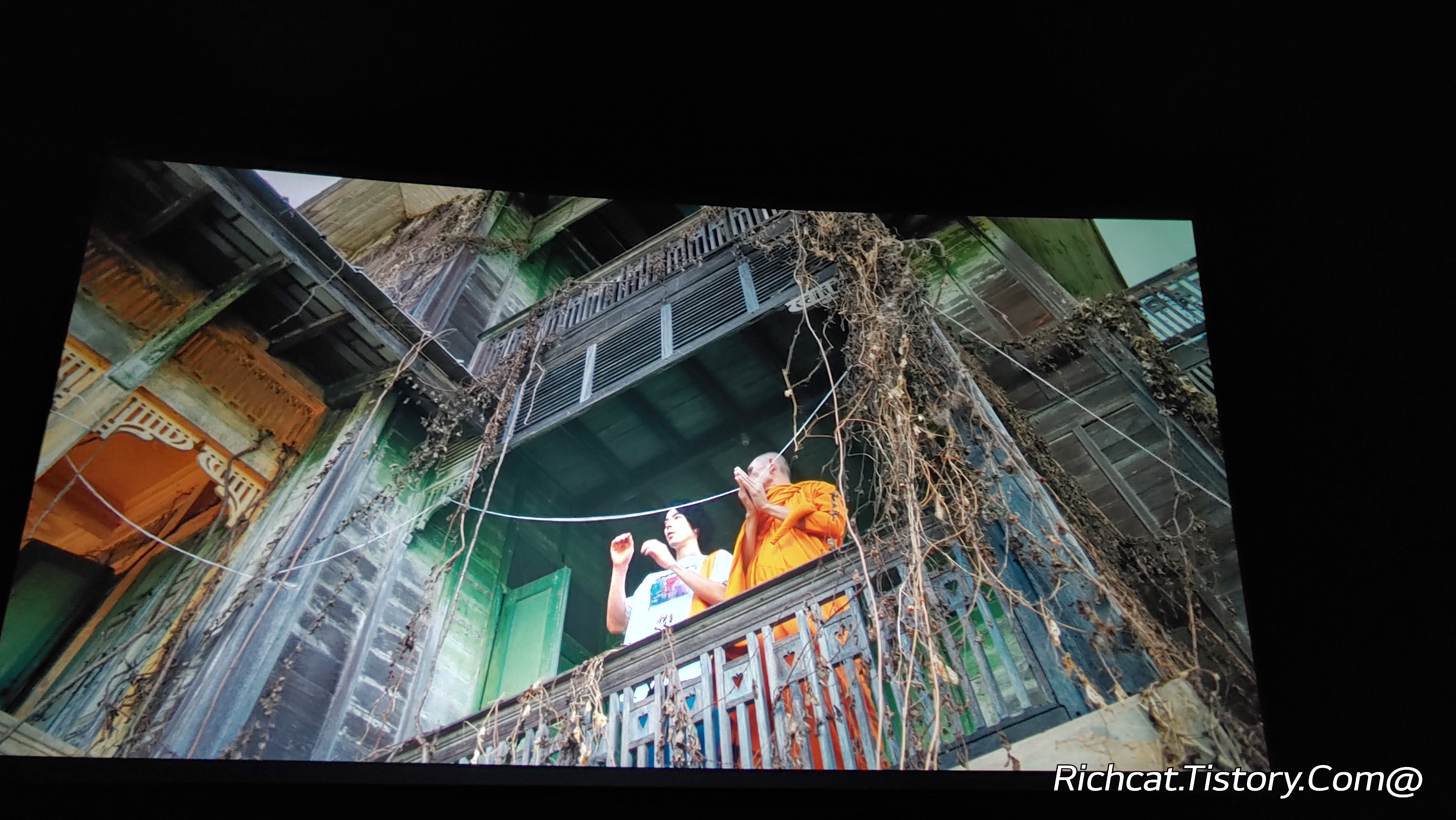 이 남자가이 영화의 주인공이다 영화관 안 해서 사진을 찍다 보니 솔직히 약간 민폐라서 여자 주인공을 찍지 못했는데 여자 주인공은 한국의 조여정과 비슷하게 생겼다 그런데 남자 주인공은 나름 태국에서 굉장히 유명한 배우라고 하는데 내 눈엔 그래 잘생겨 보이지도 않고 약간 일본 사람처럼 생겼다 아마도 한국에 잘생긴 남자 배우들 하도 많이 봐서 눈이 높아진 탓이 아닐까 싶다