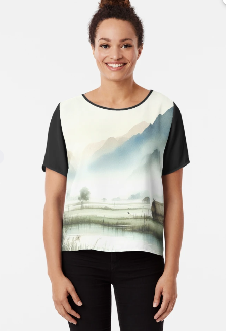 Light ink painting, oriental painting, ink painting, mountains, rivers, lakes, thatched houses, rice fields, foggy, hazy,