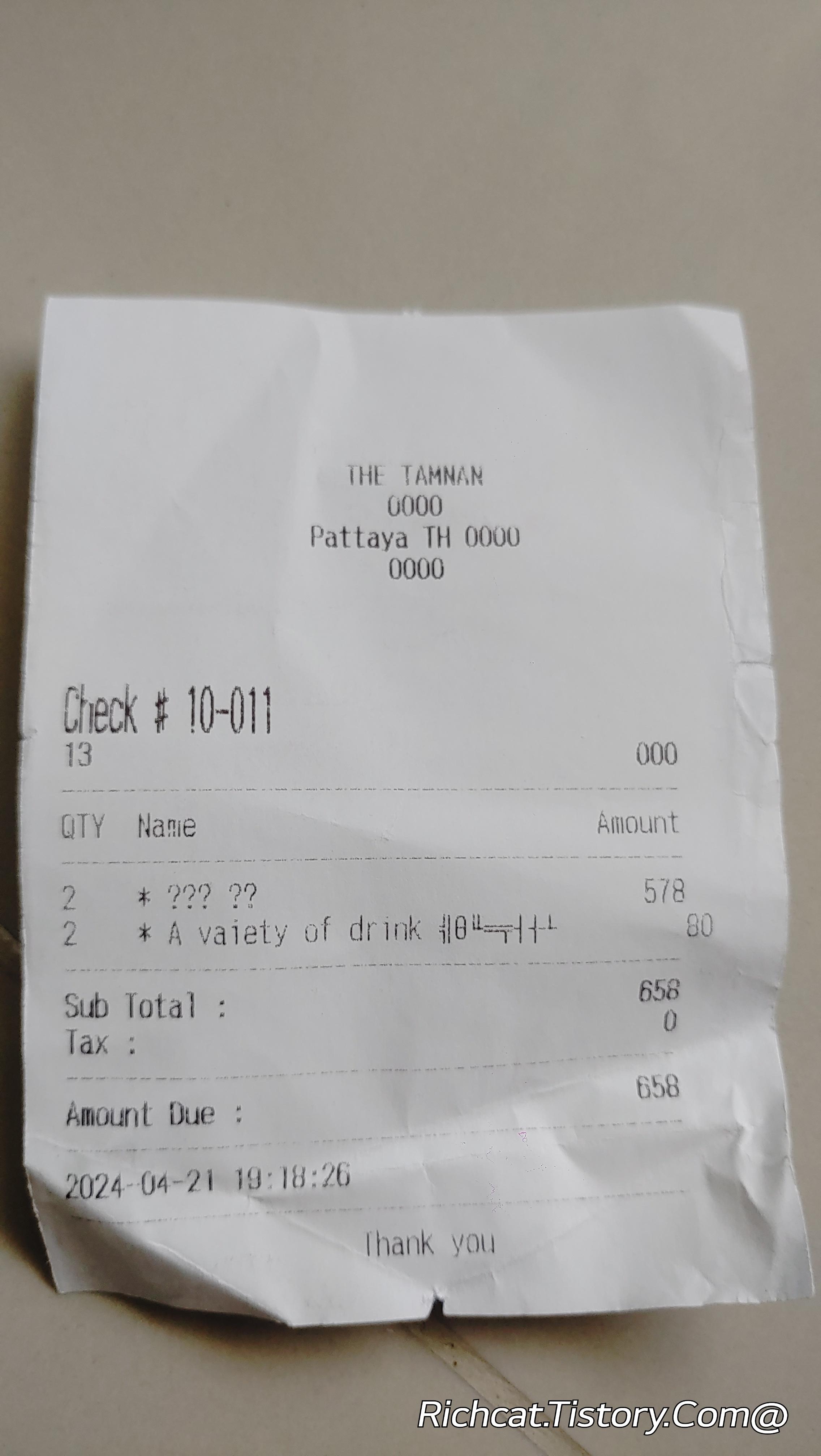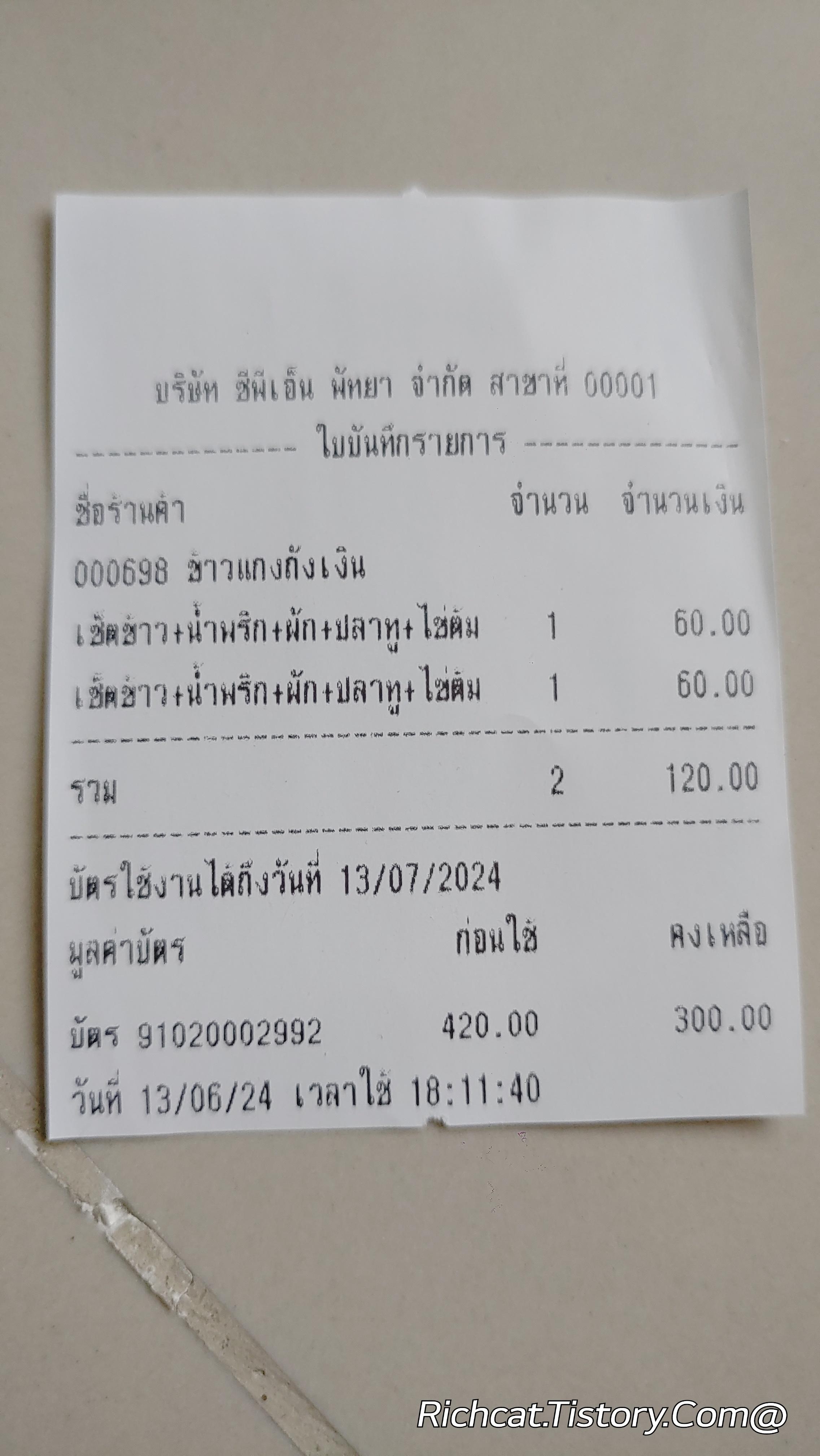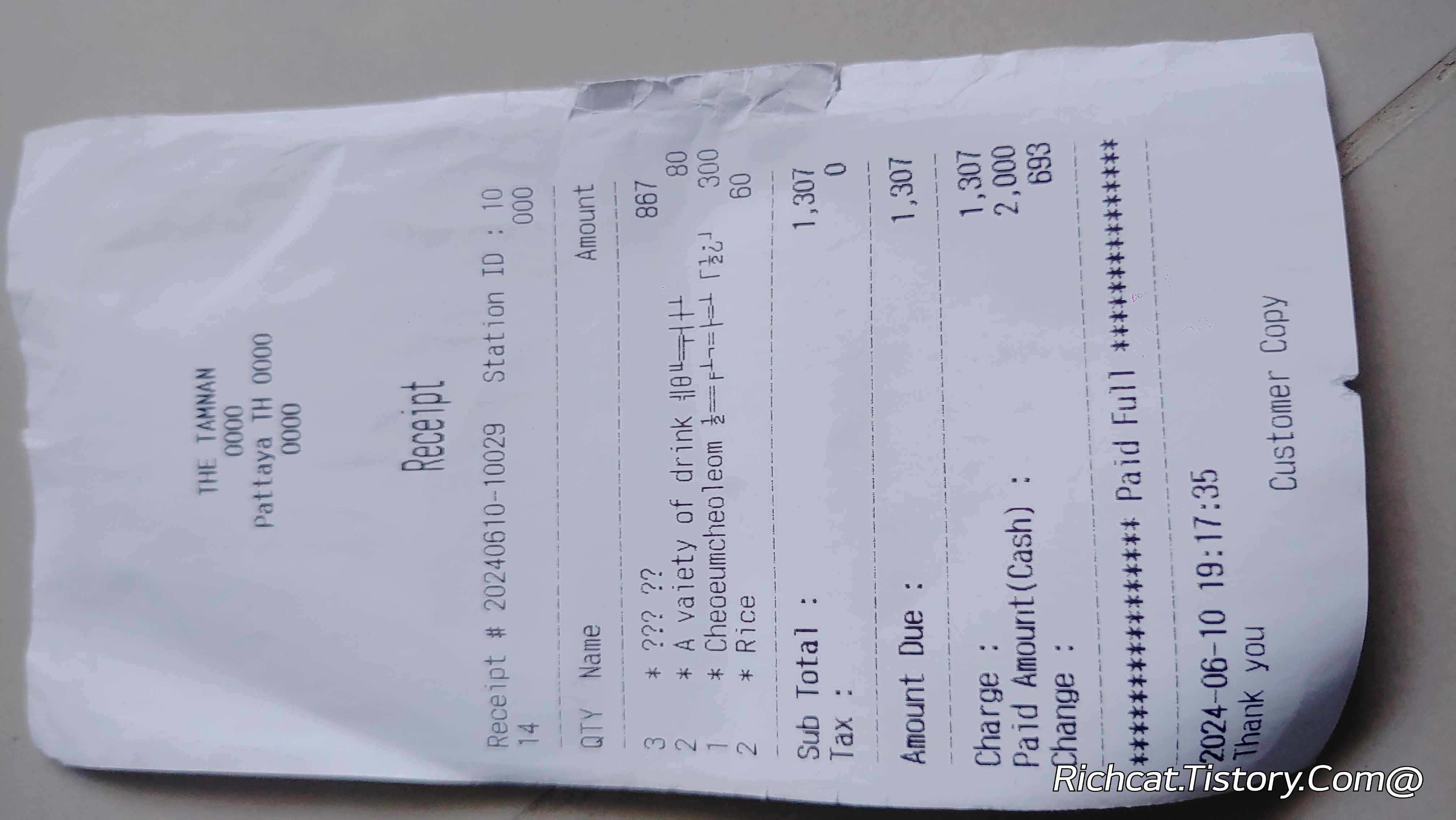 영수증으로 태국 물가를 기록