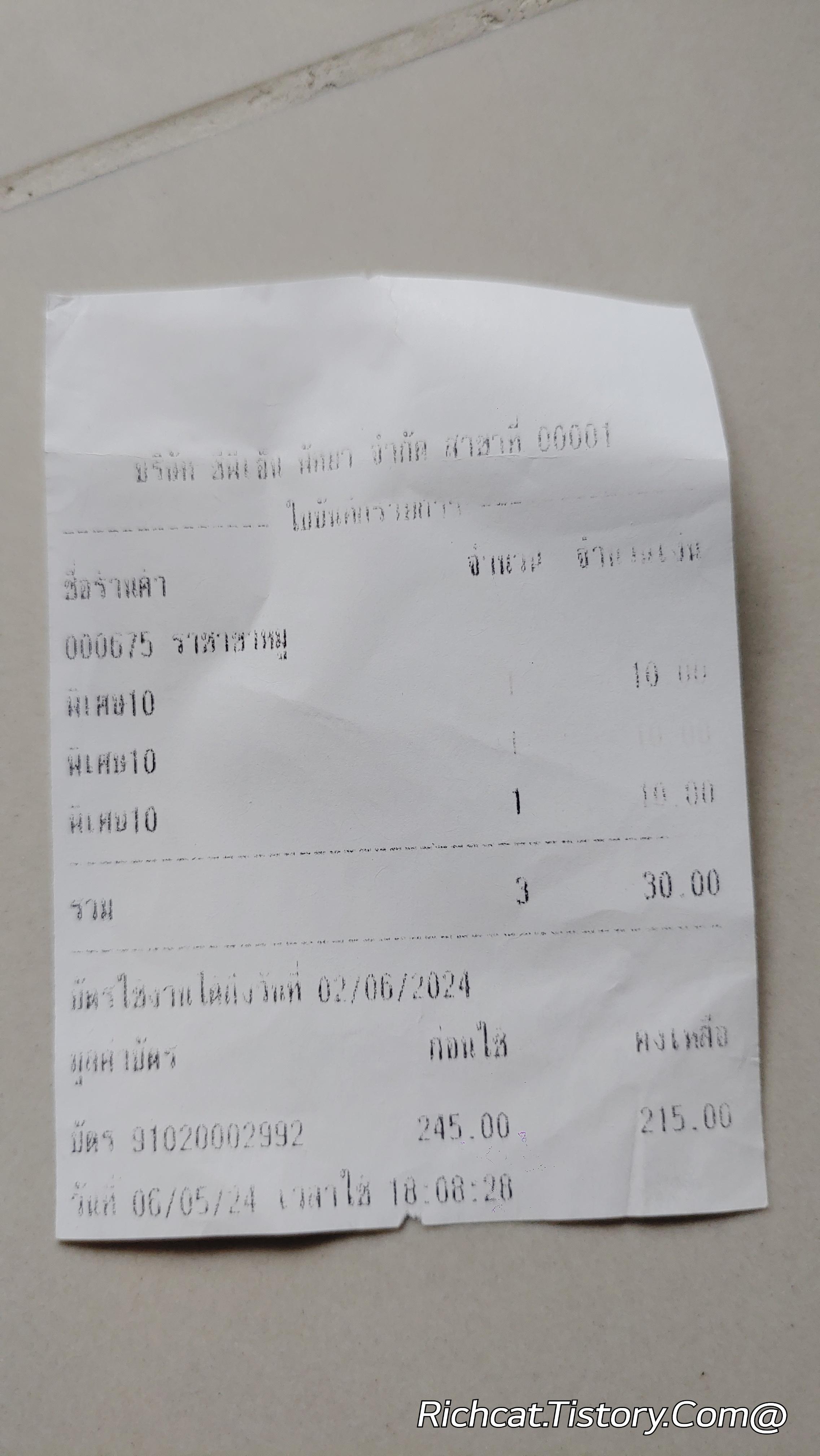 | 영수증으로 알아보는 태국의 물가 (0) | 2024.06.16 |