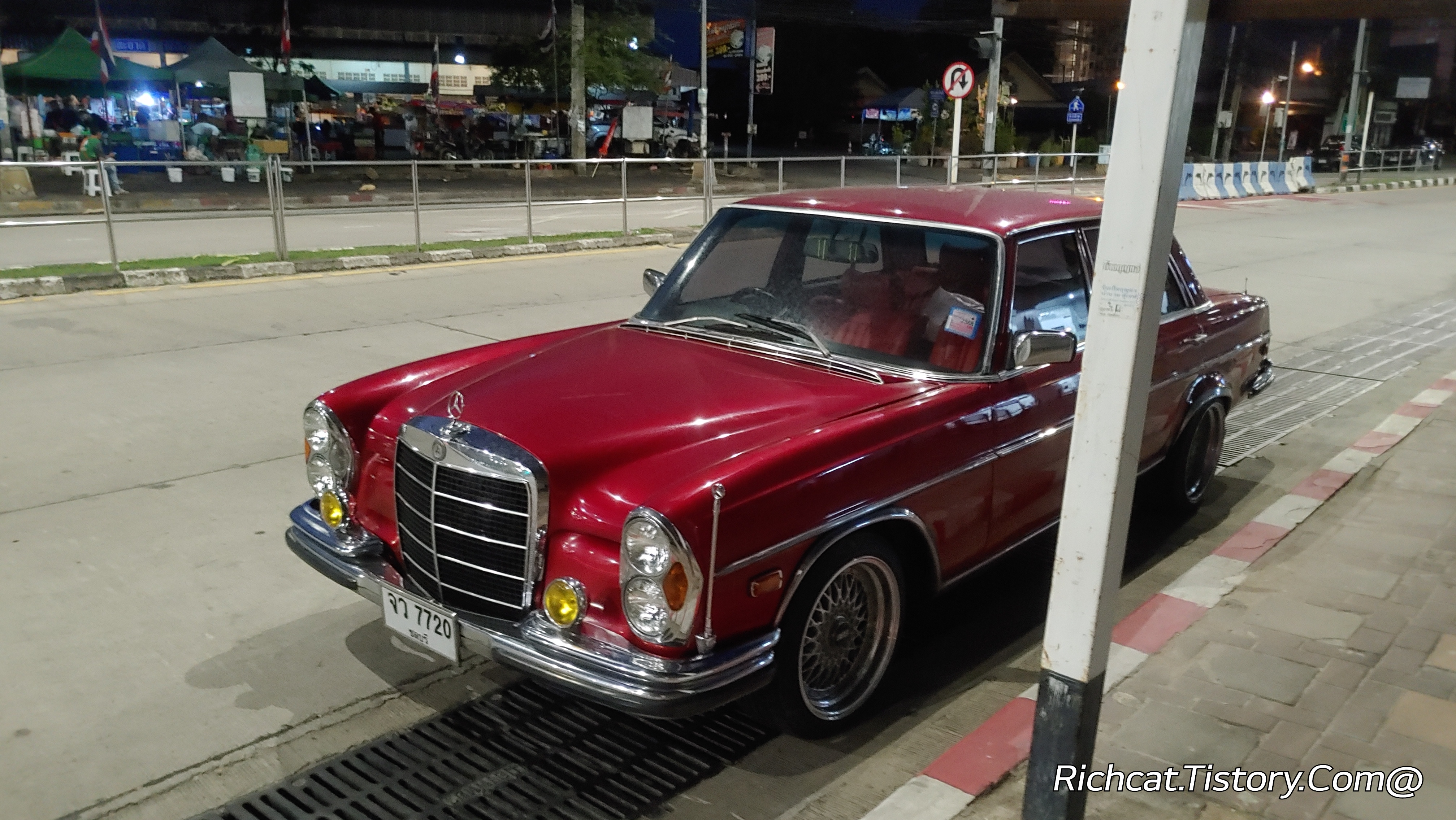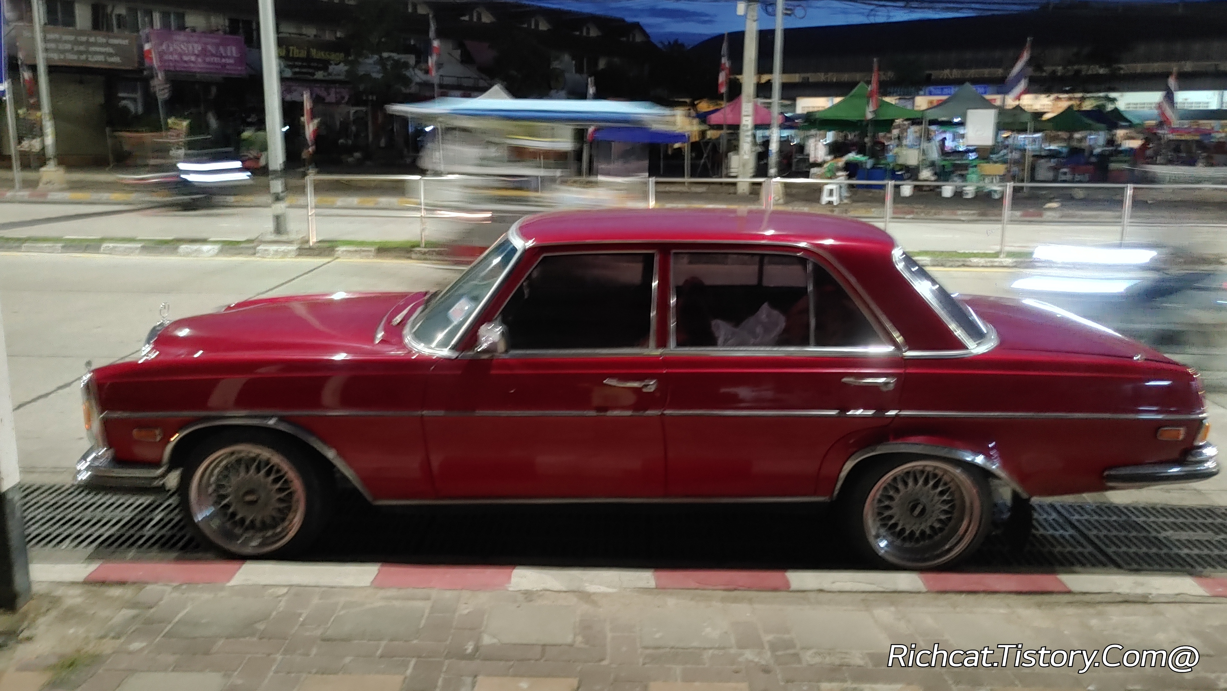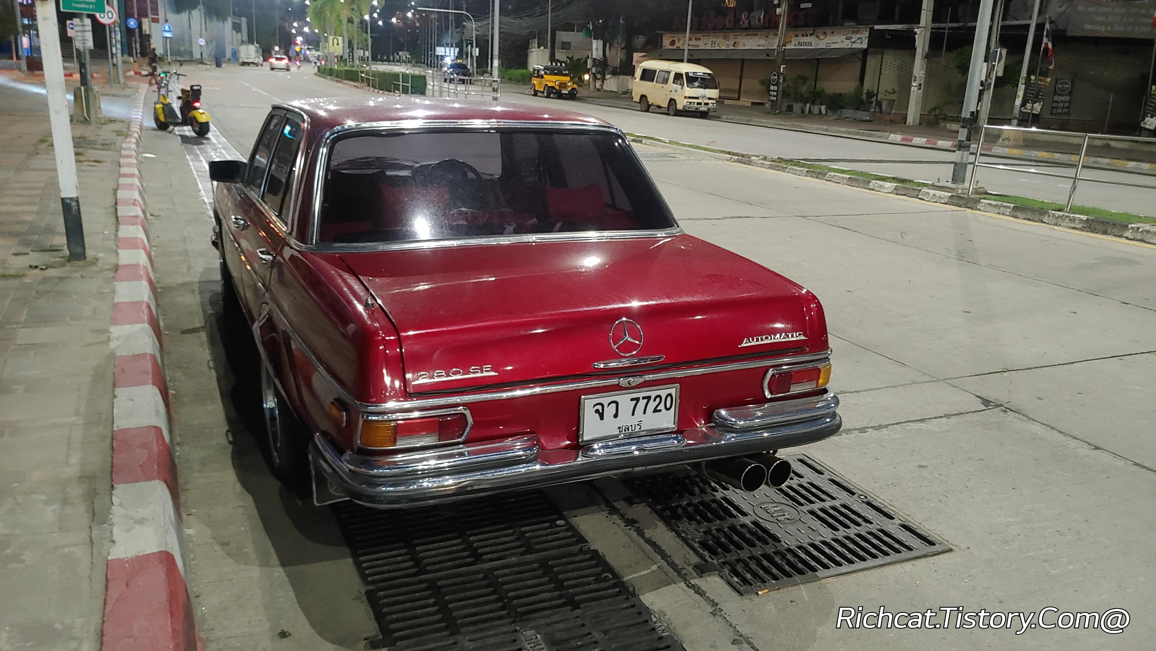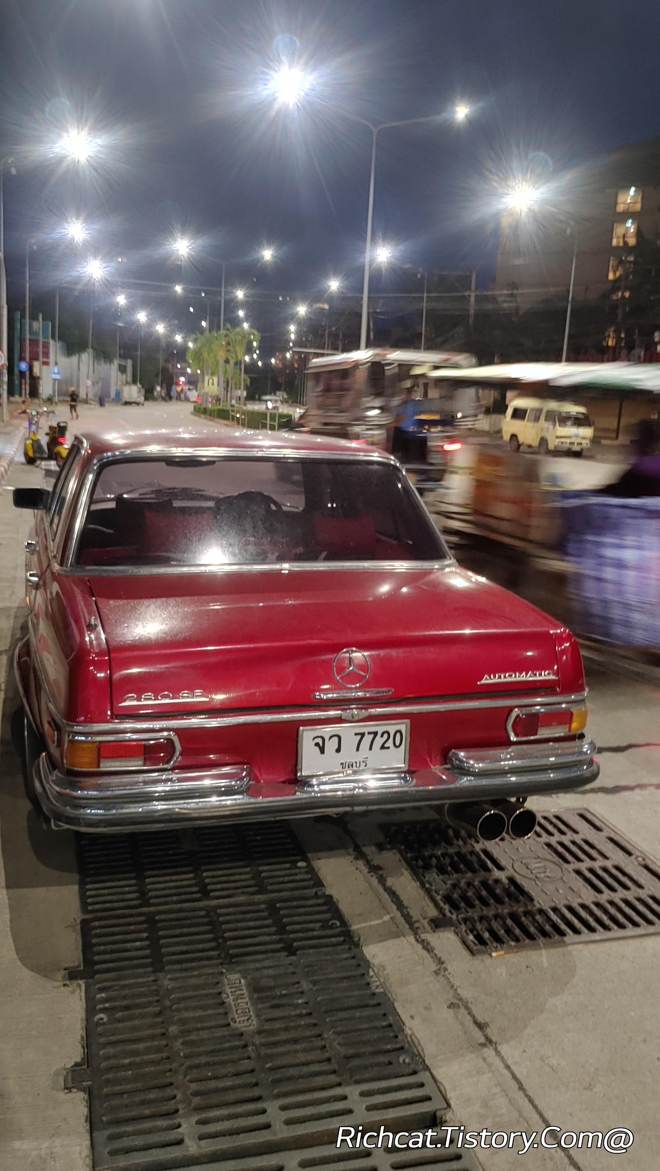 새벽에 파타야 좀티엔 2선도로에서 만난 오래된 빨간 벤츠...^^