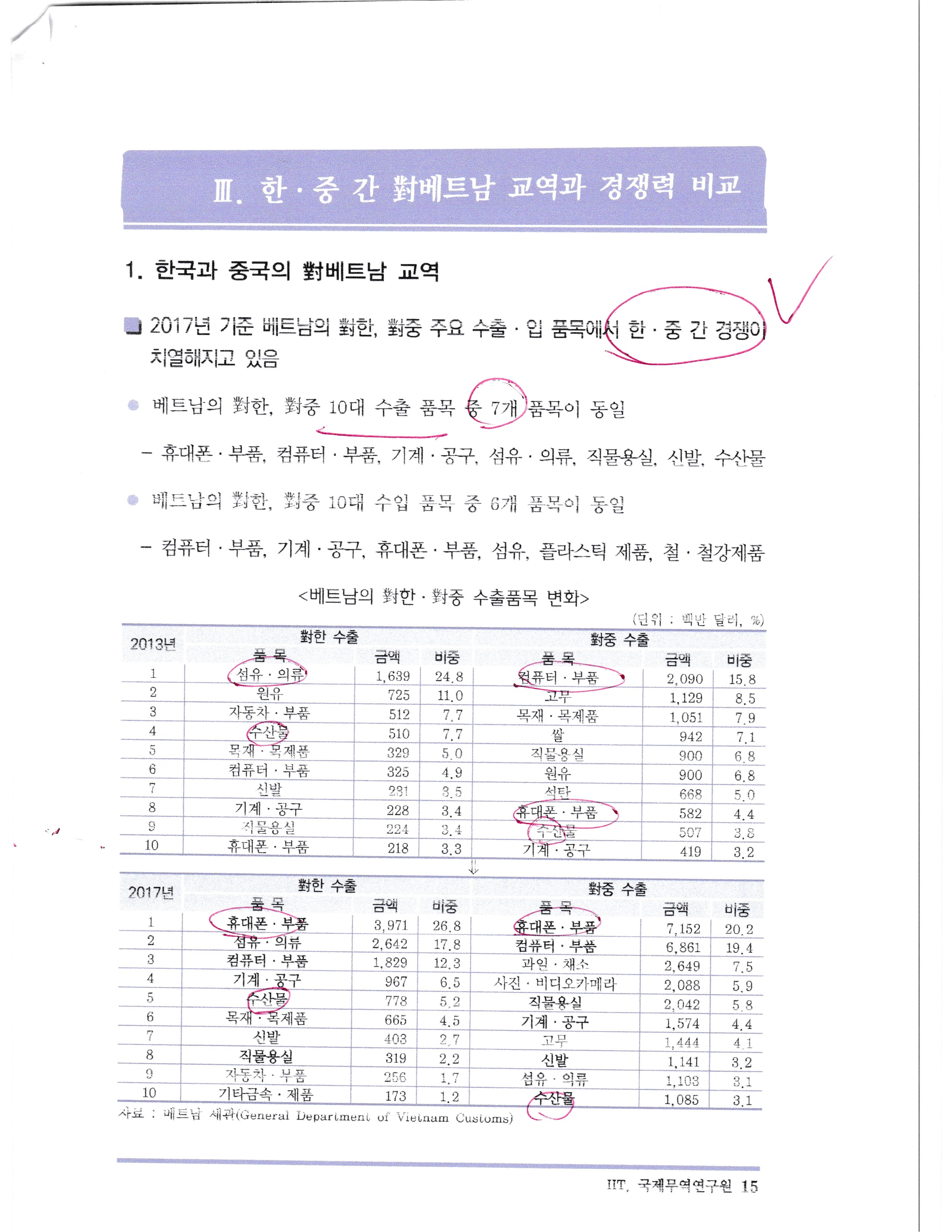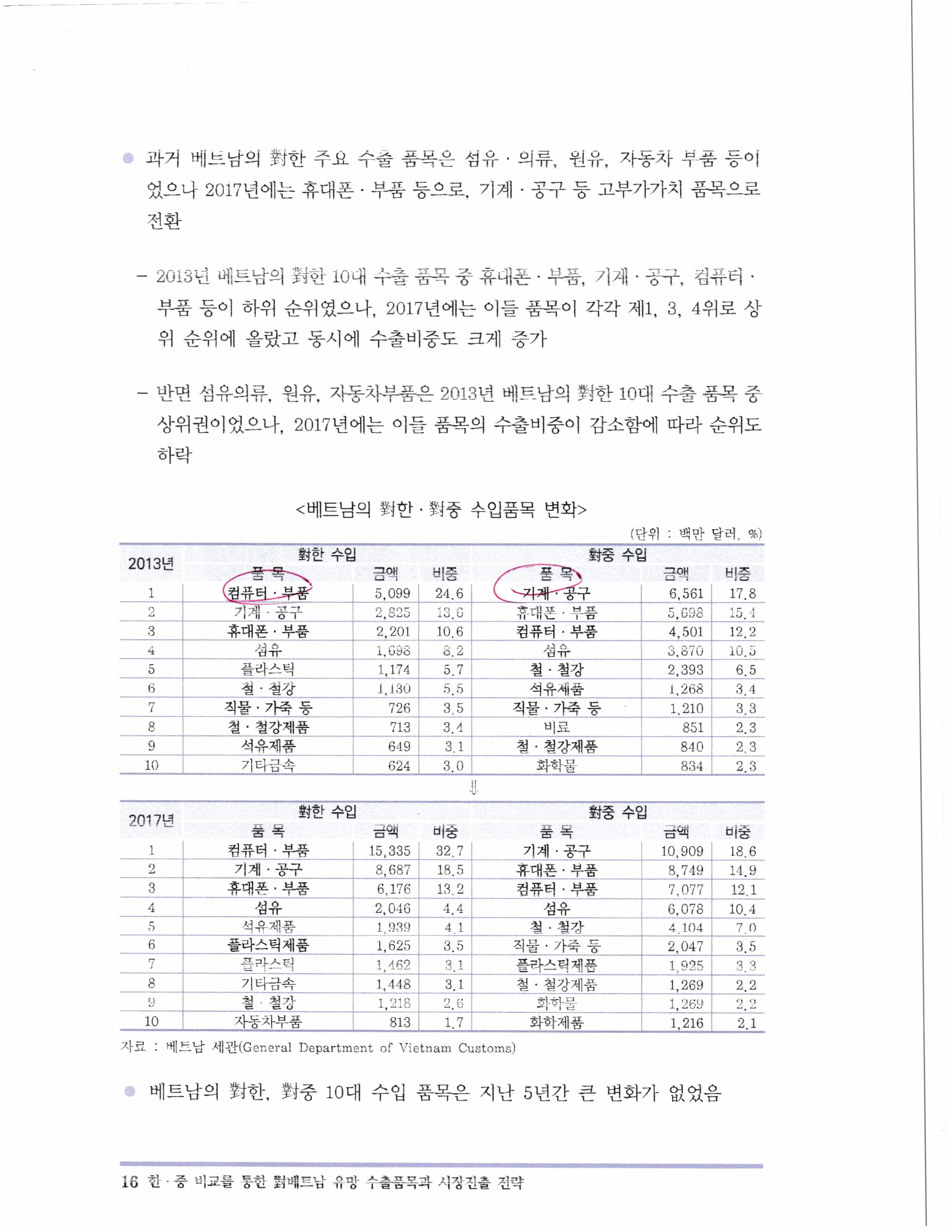 한.중 비교를 통한 대 베트남 유망 수출품목과 시장진출 전략