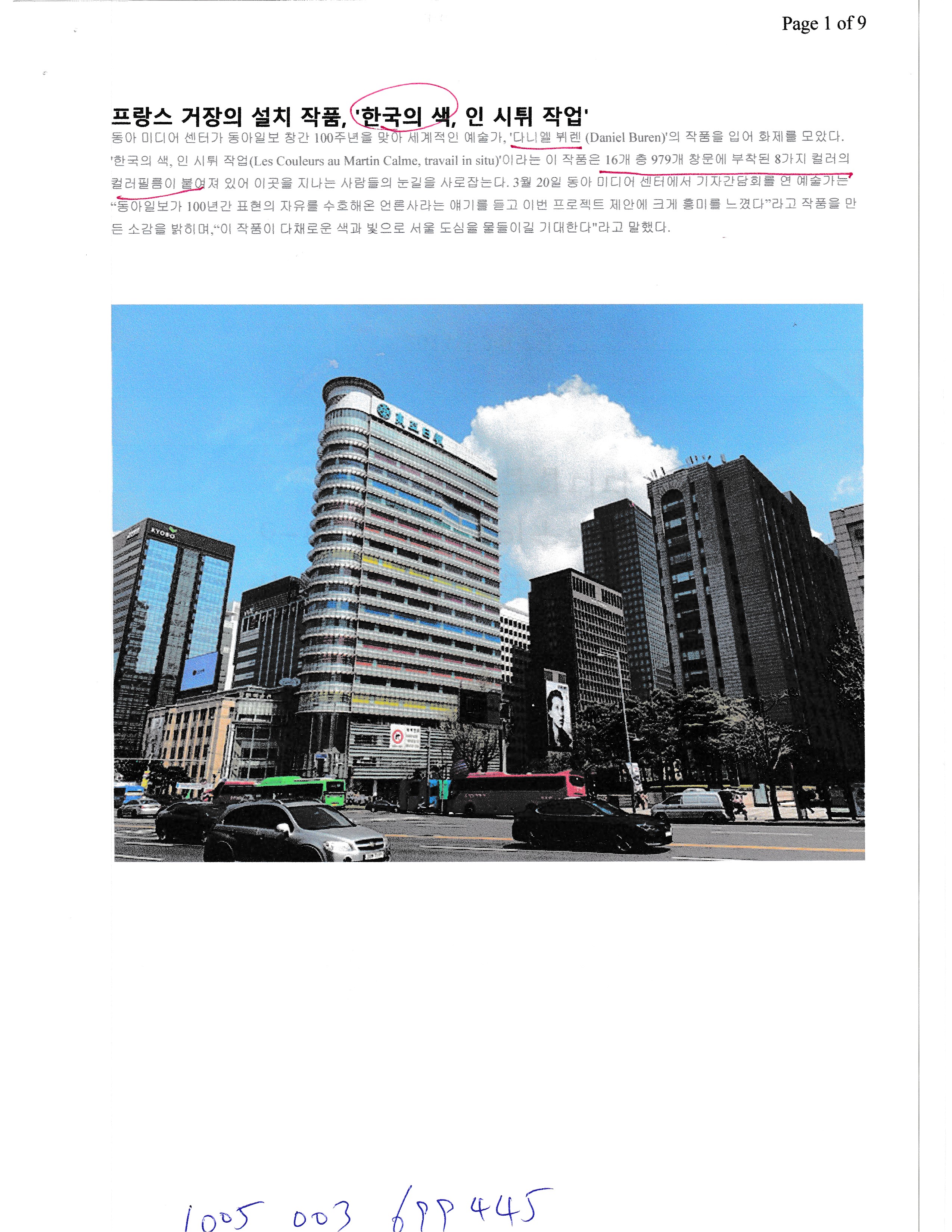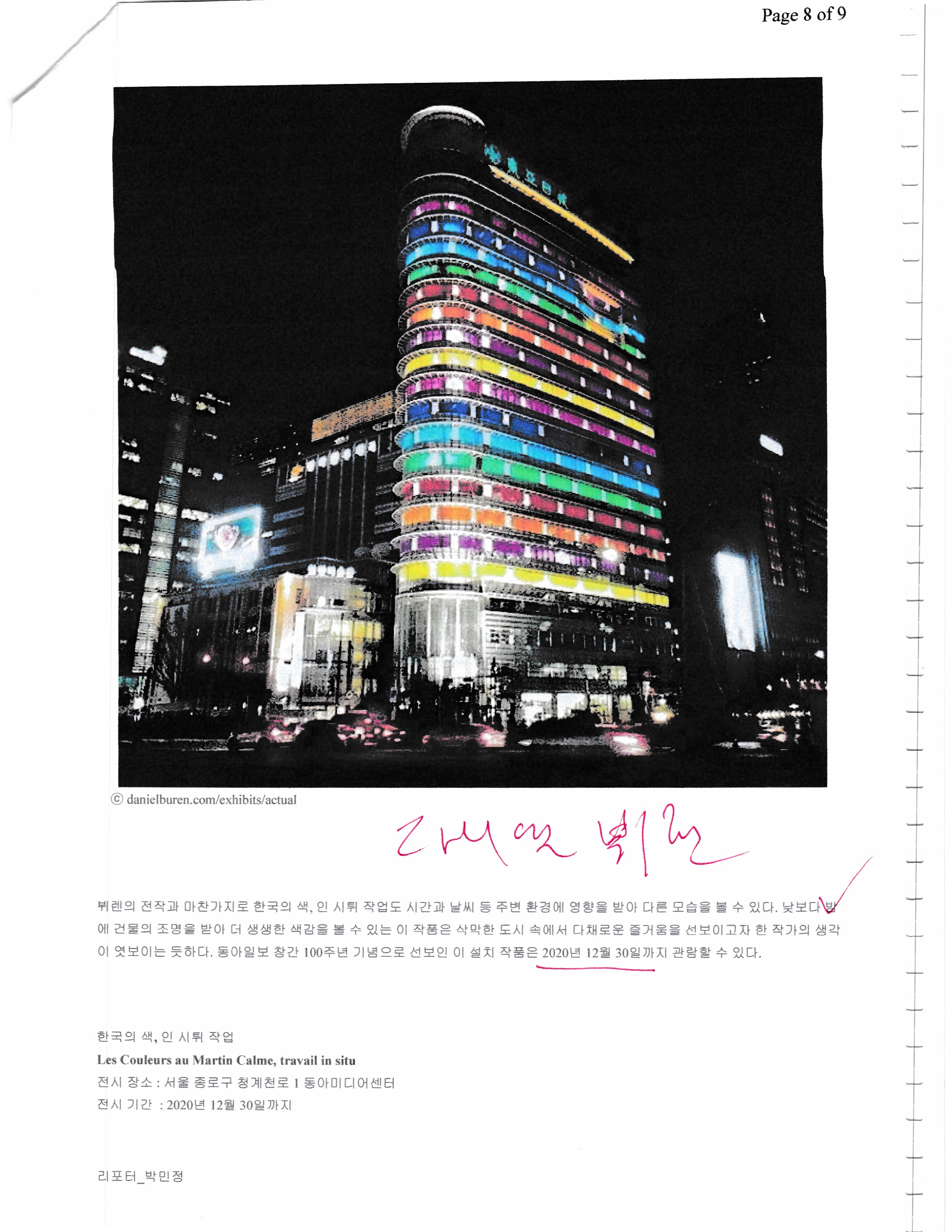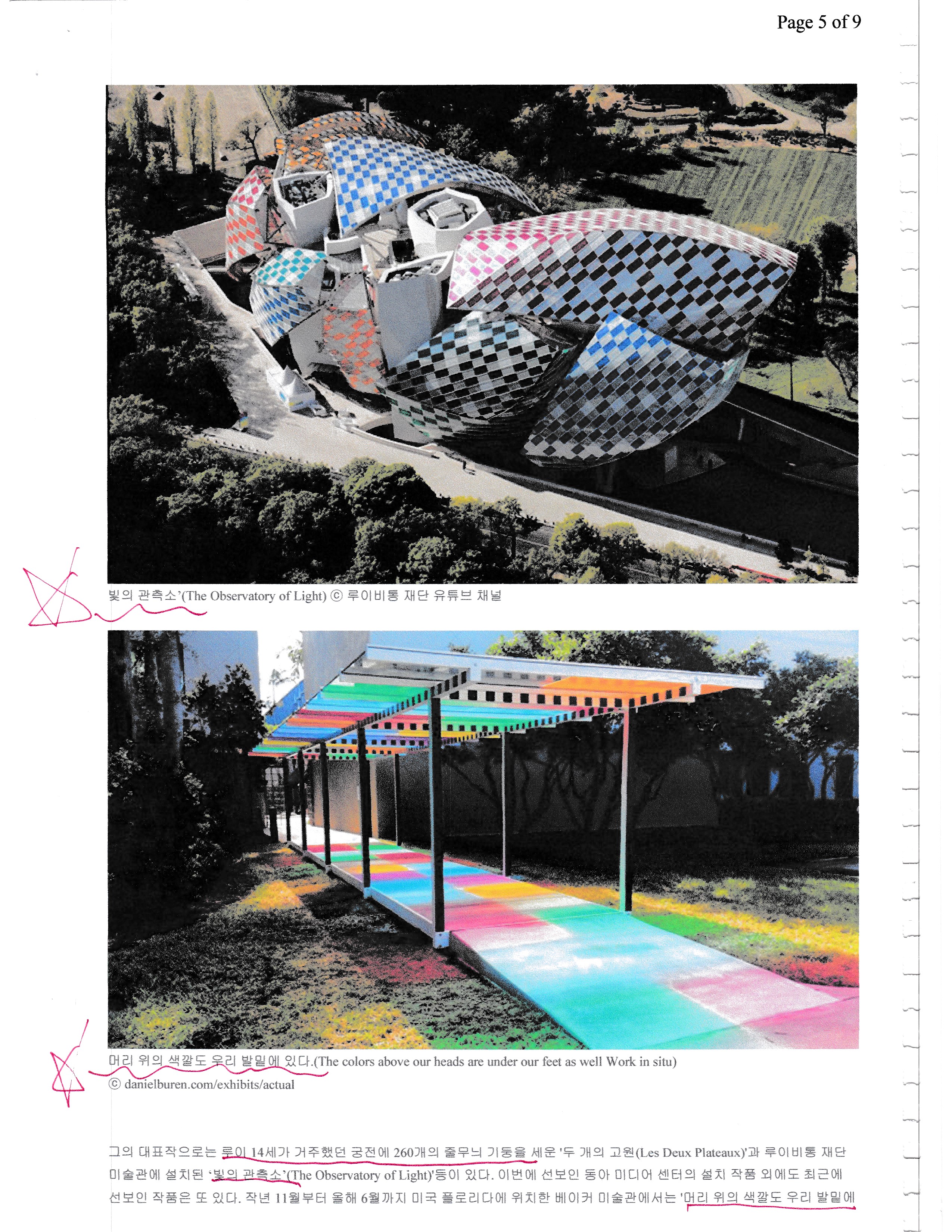 프랑스 거장의 설치작품, 다니엘 뷔렌, 한국의 색, 인 시튀 작업,