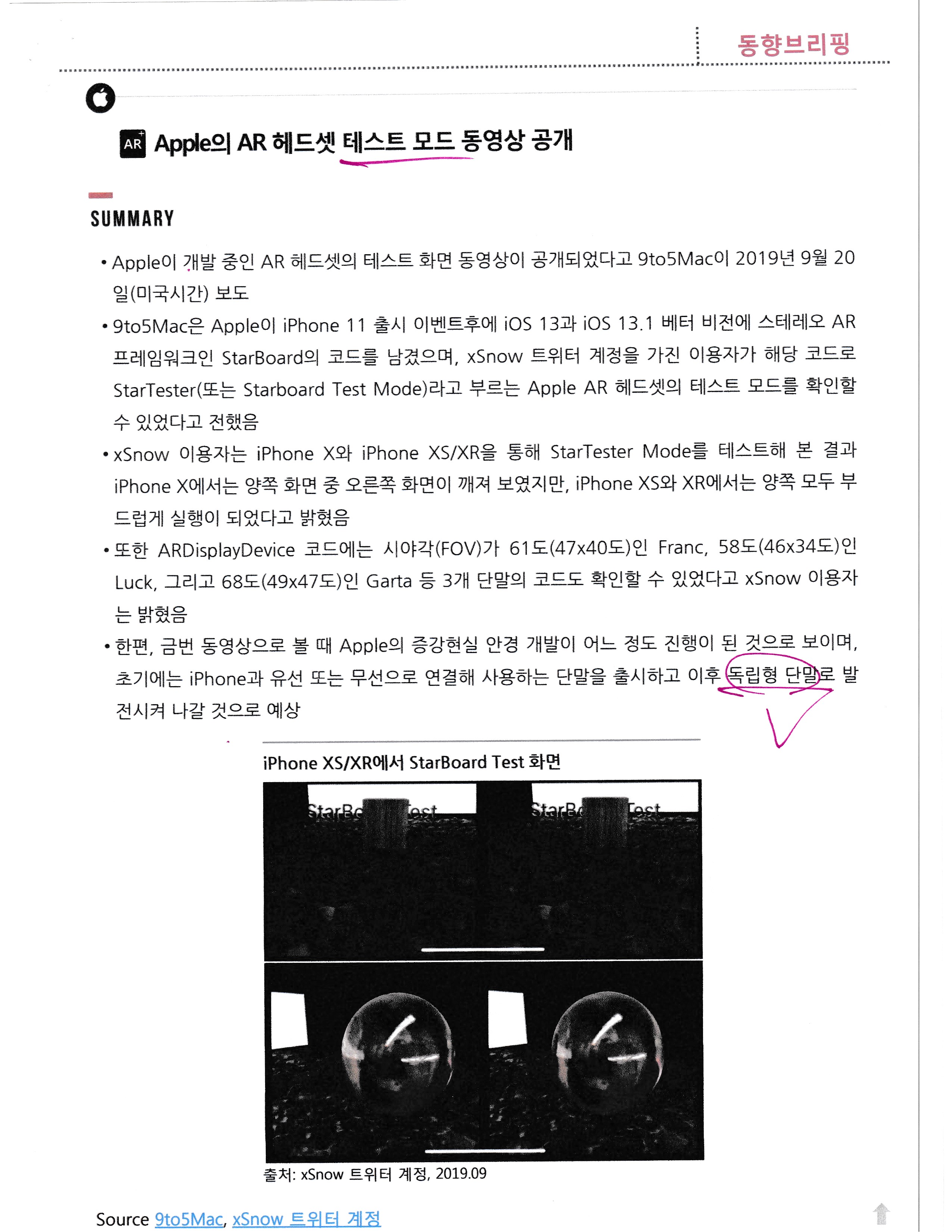 해외 IT업체 동향 브리핑 20190902- 애플AR헤드셋 등
