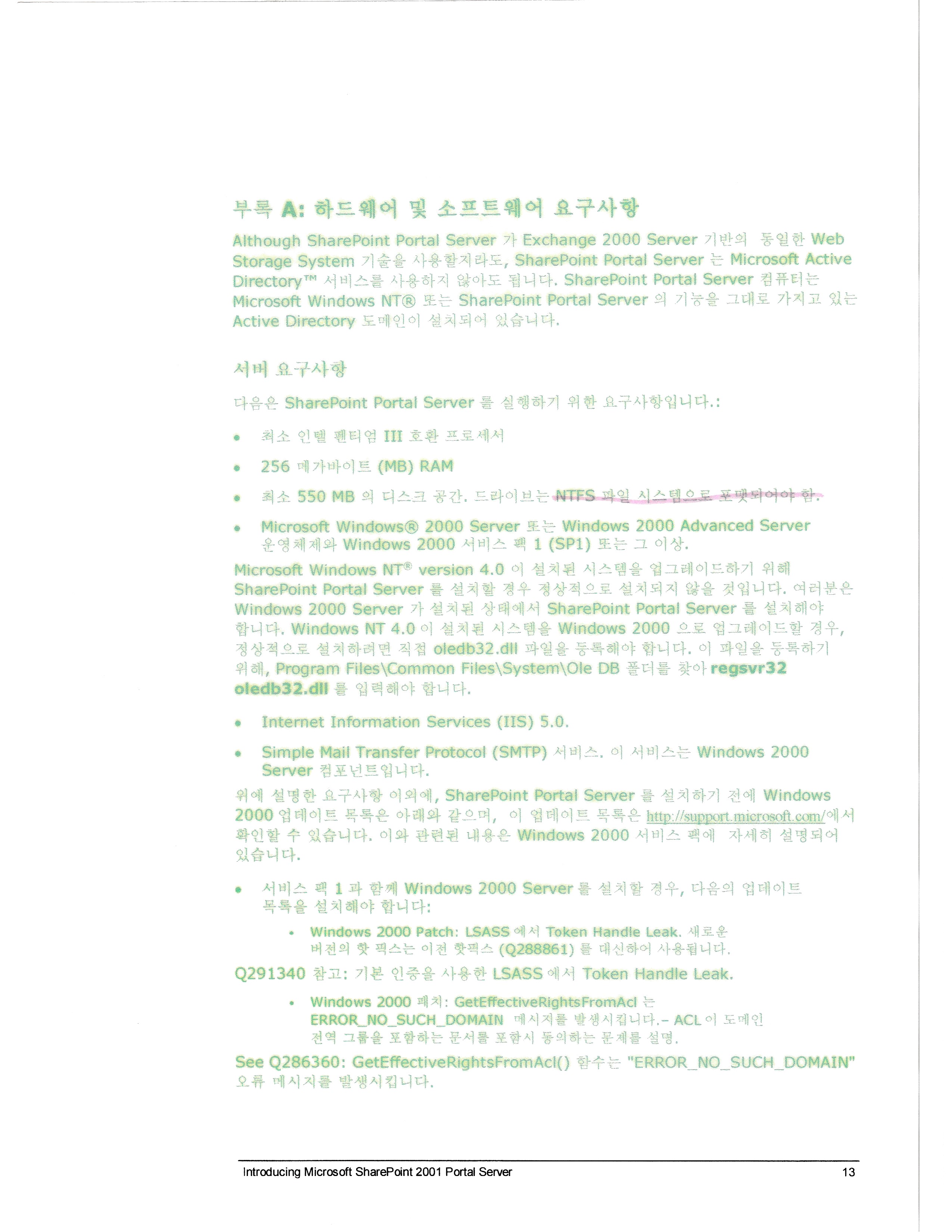 마이크로소프트 쉐어포인트 포탈서버 2001,