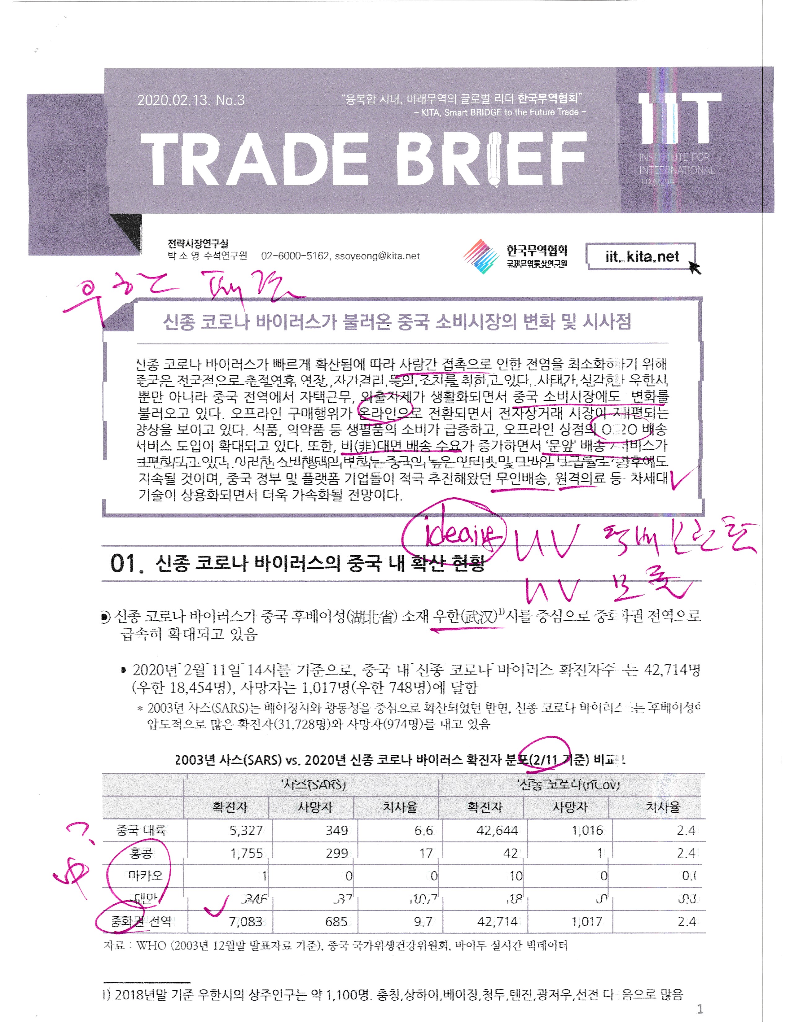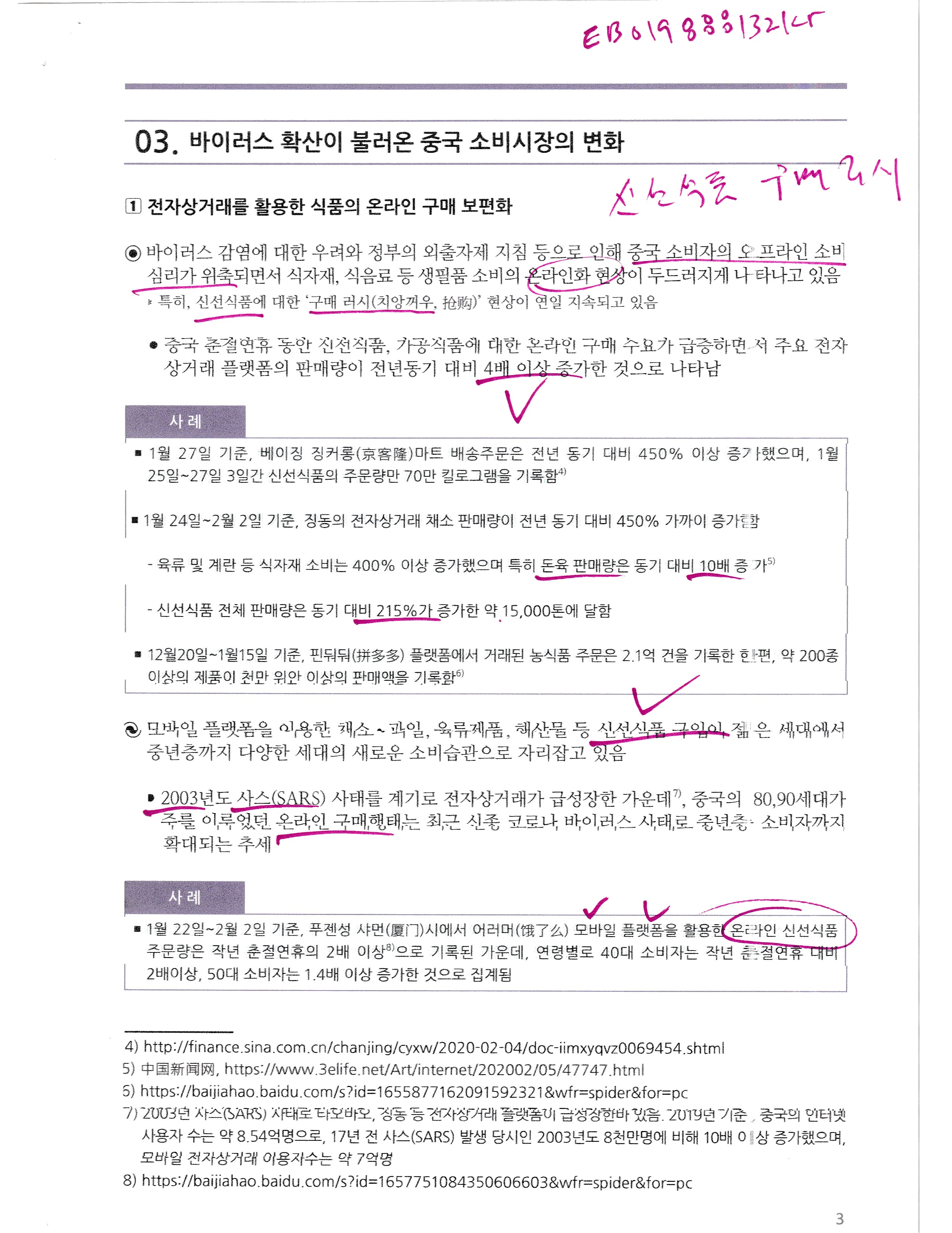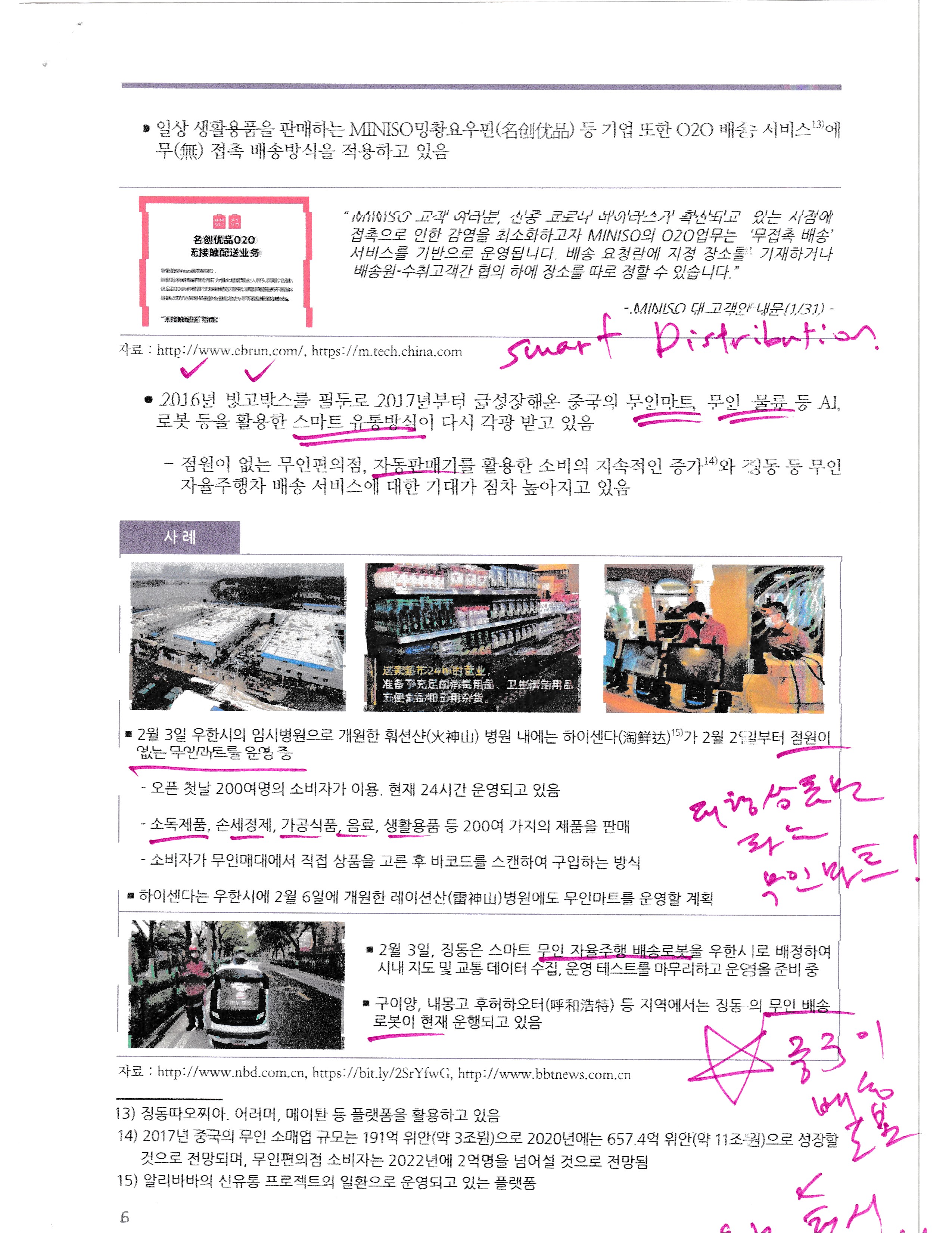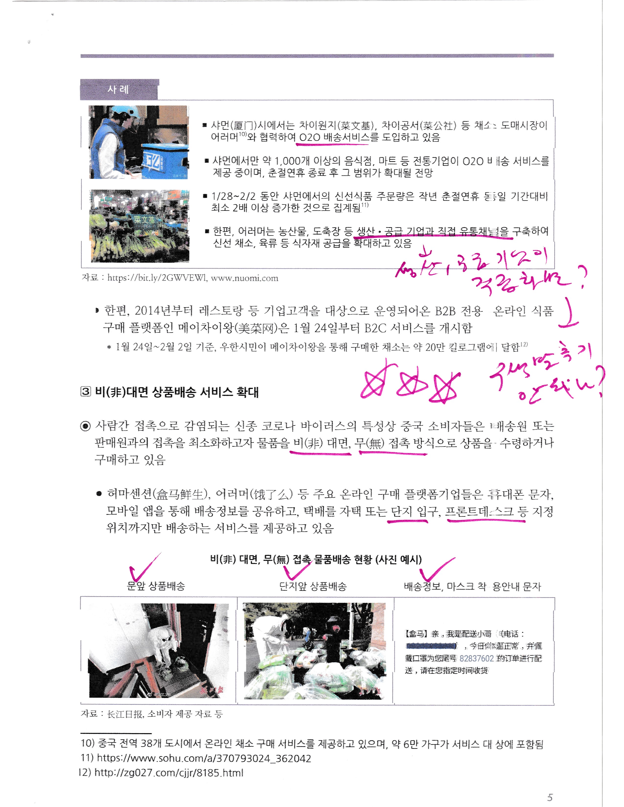 As the new corona virus spreads rapidly, China is taking measures such as prolonging the spring isolation holiday and self-isolation nationwide to minimize the spread of human contact. Not only Wuhan city, which has a serious situation, but also home-based work and going out and going out in China are changing the Chinese consumer market. As the offline purchasing behavior is shifted to online, the e-commerce market is reshaping. Consumption of daily necessities such as food and medicines is increasing rapidly, and the introduction of O2O delivery service in offline stores is expanding. In addition, demand for non-face-to-face shipments is increasing, making 'door-to-door' delivery services popular. Such changes in consumption behavior will continue in the future due to China's high Internet and mobile penetration rate, and will be accelerated by the commercialization of next-generation technologies such as unmanned delivery and telemedicine, which the Chinese government and platform companies have actively promoted.