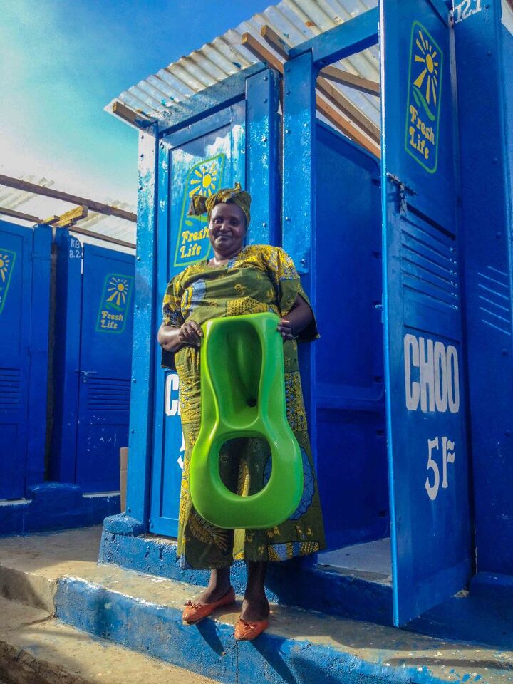 In 2010, the team flew to Kenya to observe Nairobi’s sanitation challenges up close. “We saw slums filled with discarded plastic bags known as ‘flying toilets’ and human waste being dumped in the water next to schoolyards,” says David. “There were people in the communities trying to change that, but they lacked support. That’s how we came up with our franchise model.”
