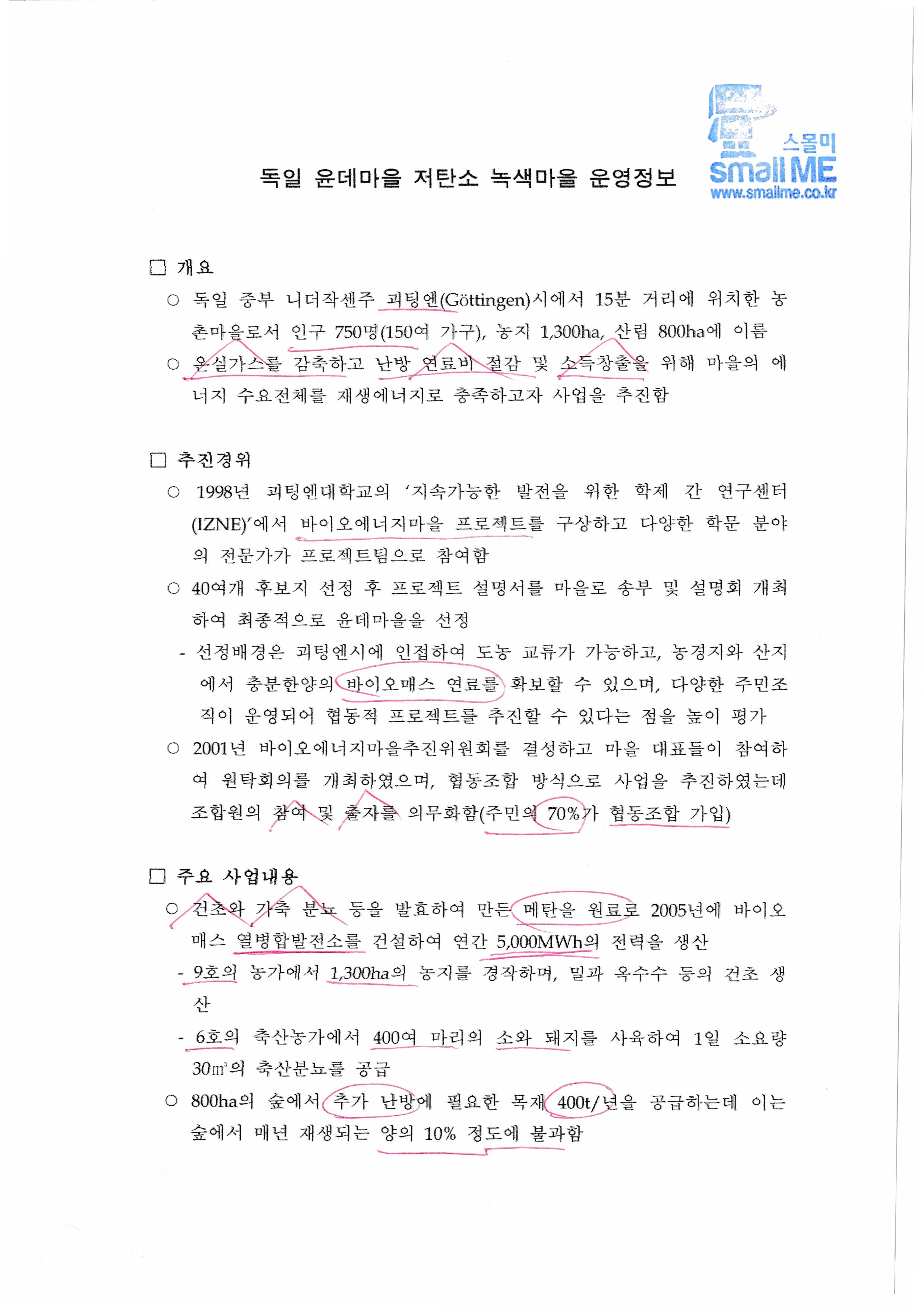 수업용 : 독일 윤데마을 저탄소 녹색마을 운영정보