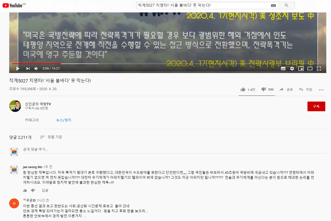 이 영상도 그러하다. 그래서 댓글도 하나 달아놨다.