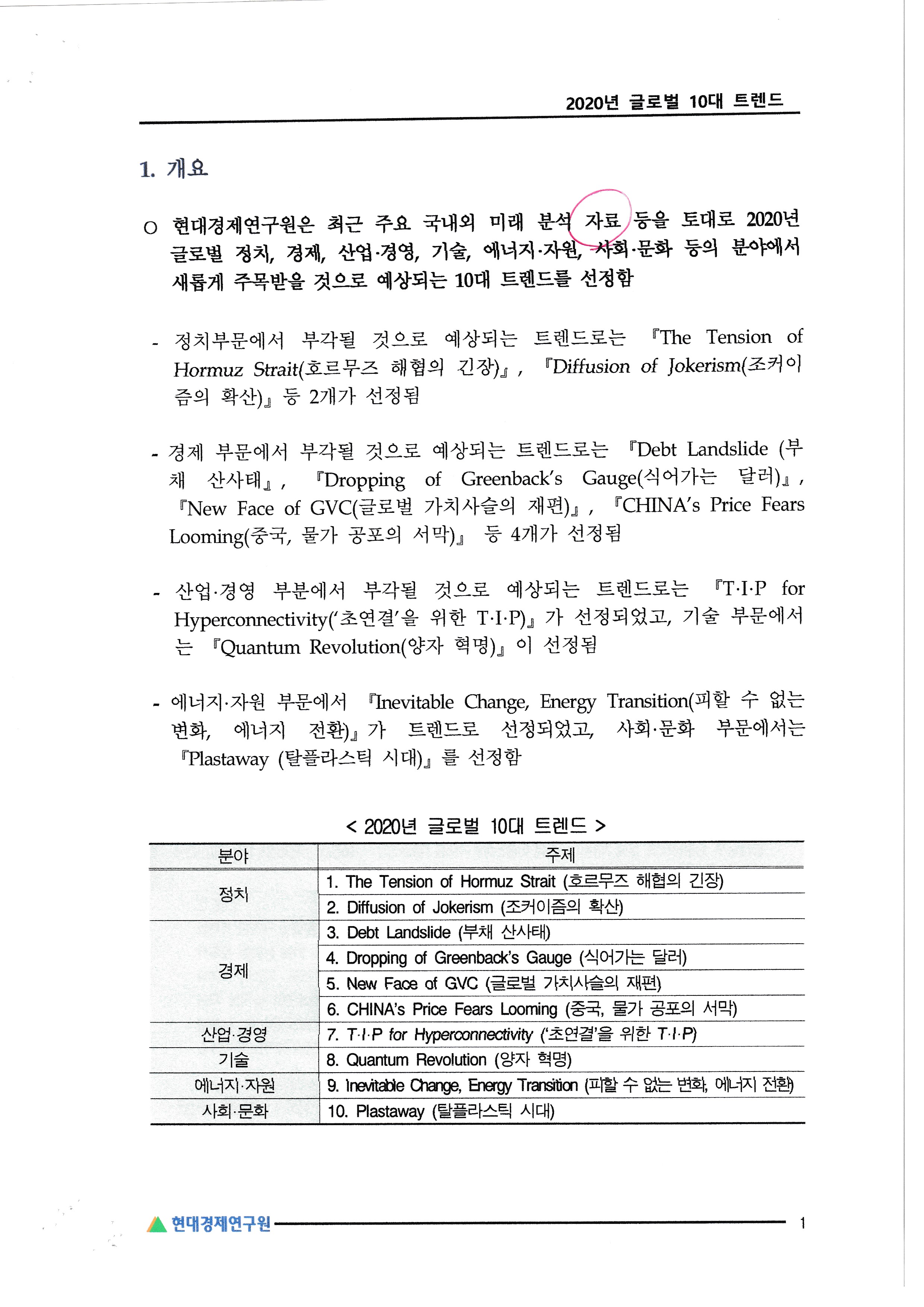 기술, 환경관련 트랜드는 방향성이 일관되게 가동될 것으로 본다.