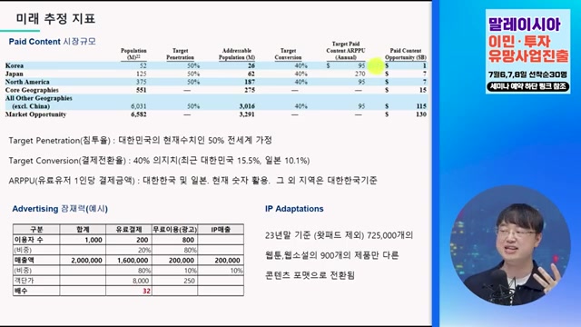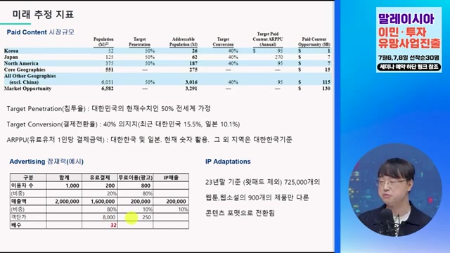 - 웹툰이 아직 익숙해지지 않은 나라들의 시장에 대한 잠재력을 언급하며, 컨텐츠의 가능성을 강조.