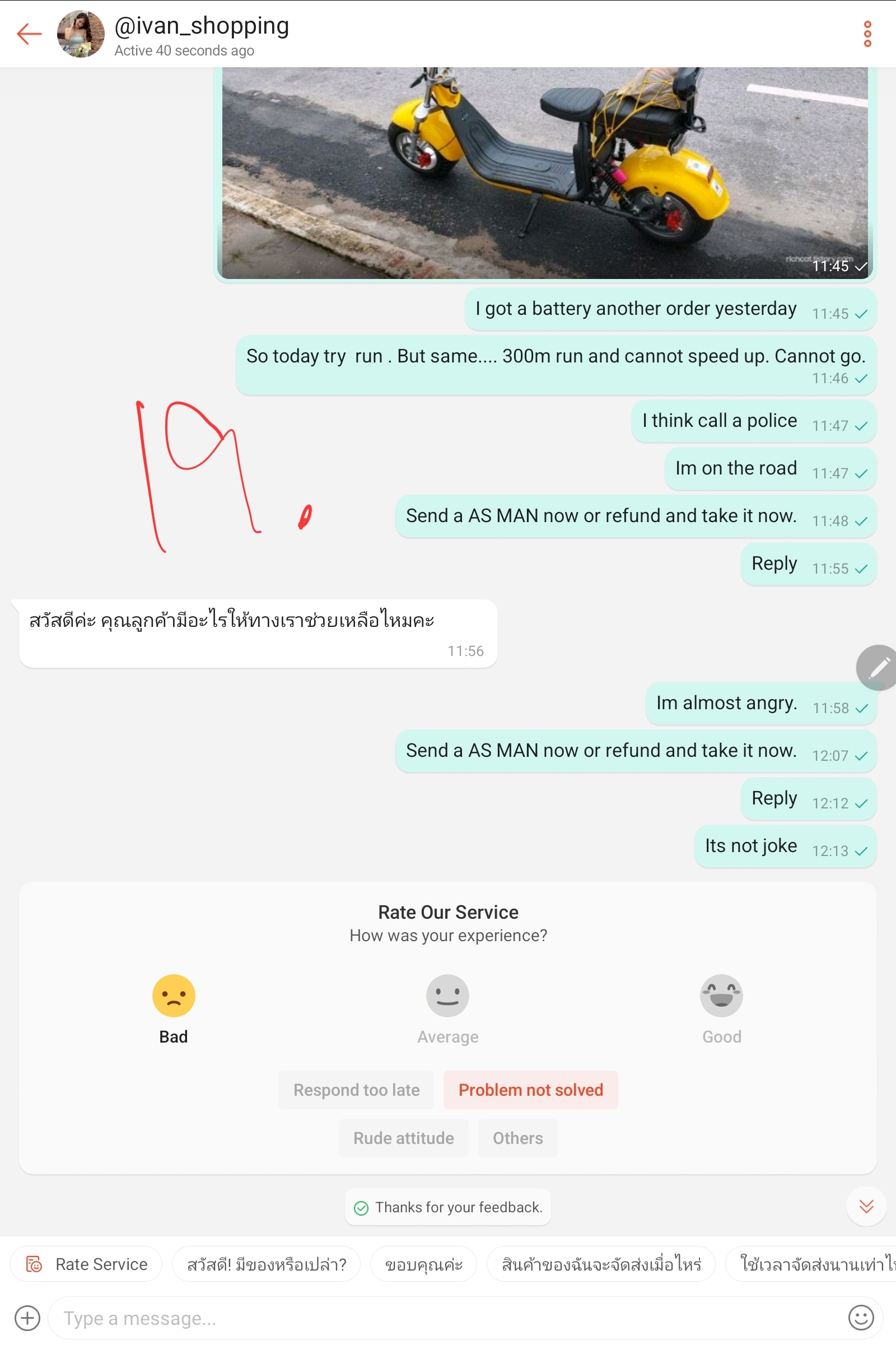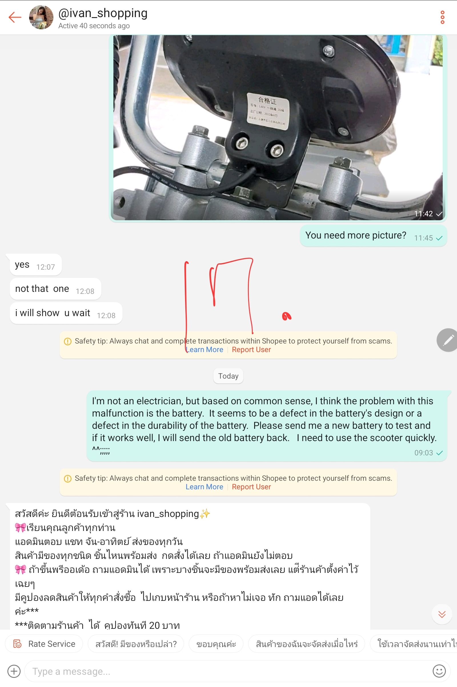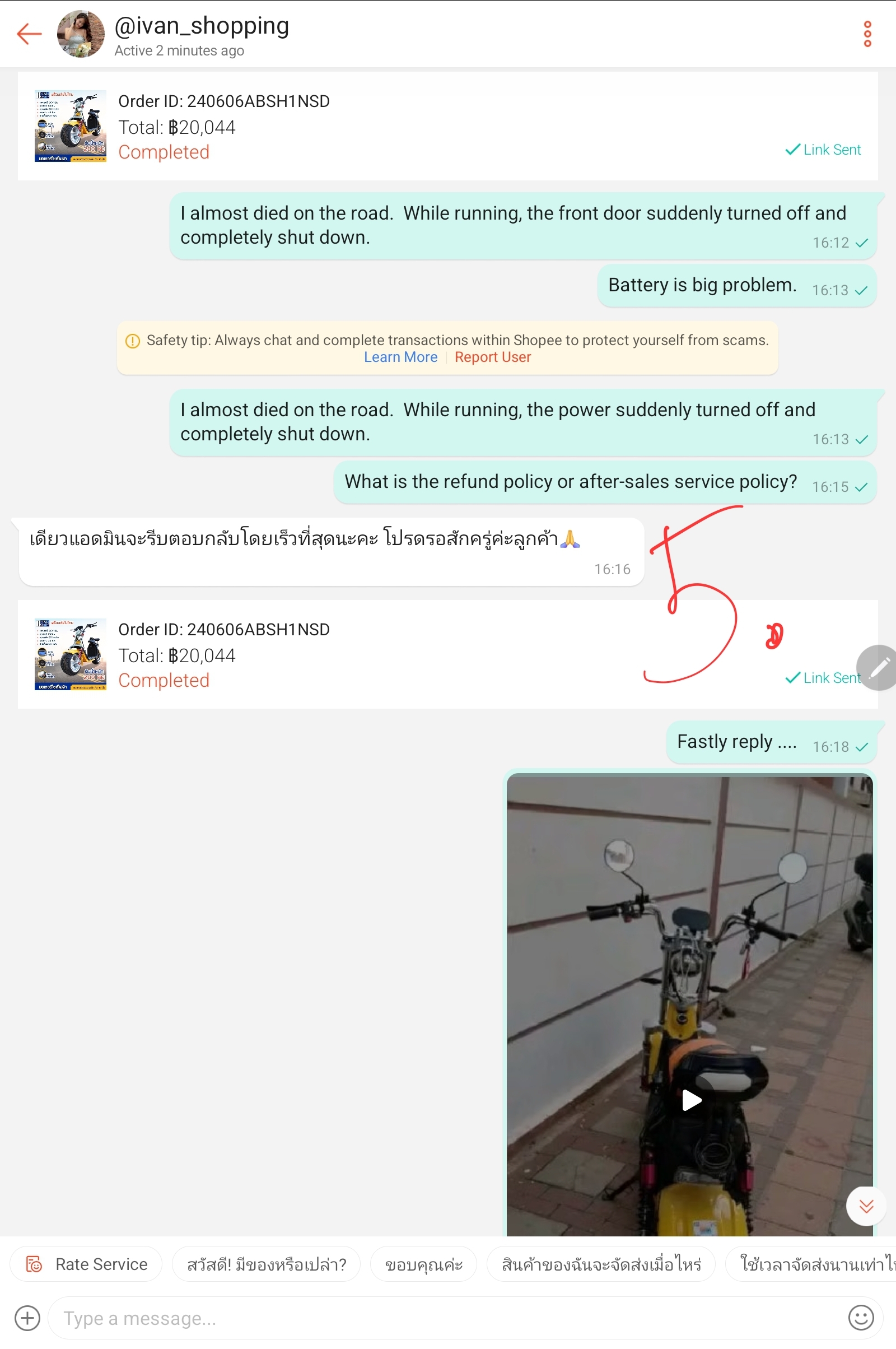 And the seller who just sold the scooter without any after-sales service response, ignored requests for repairs (after-sales service) for a scooter that nearly killed a person, sent only a reference video, and acted like a ghost, was immediately expelled from Shopee. You have to do it.