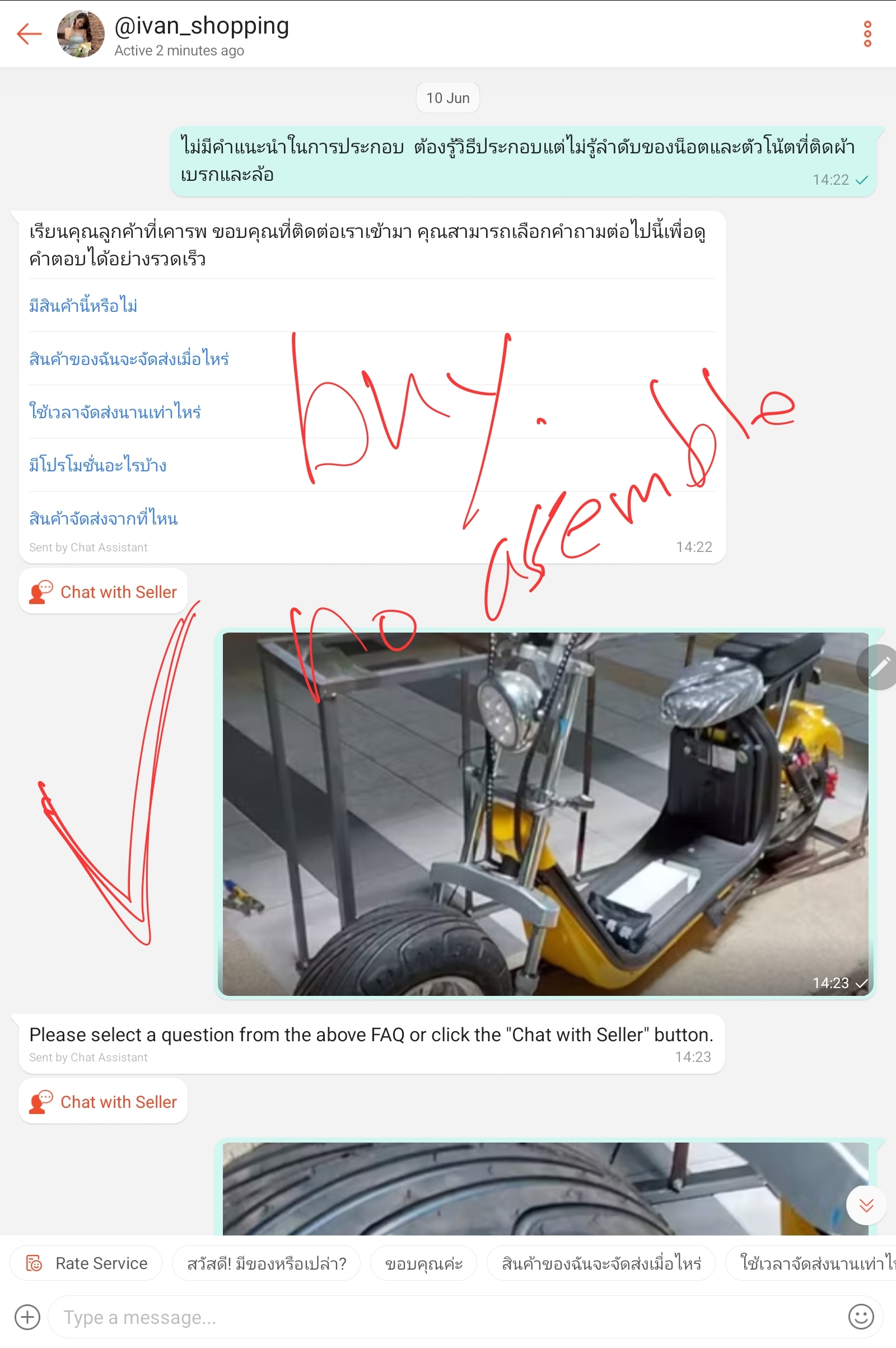 So, if a scooter or car breaks down shortly after purchasing it, the seller, the CEO of Ivan Shopping, or the employees of Shopee... do they fix it themselves while watching the video the company sends?