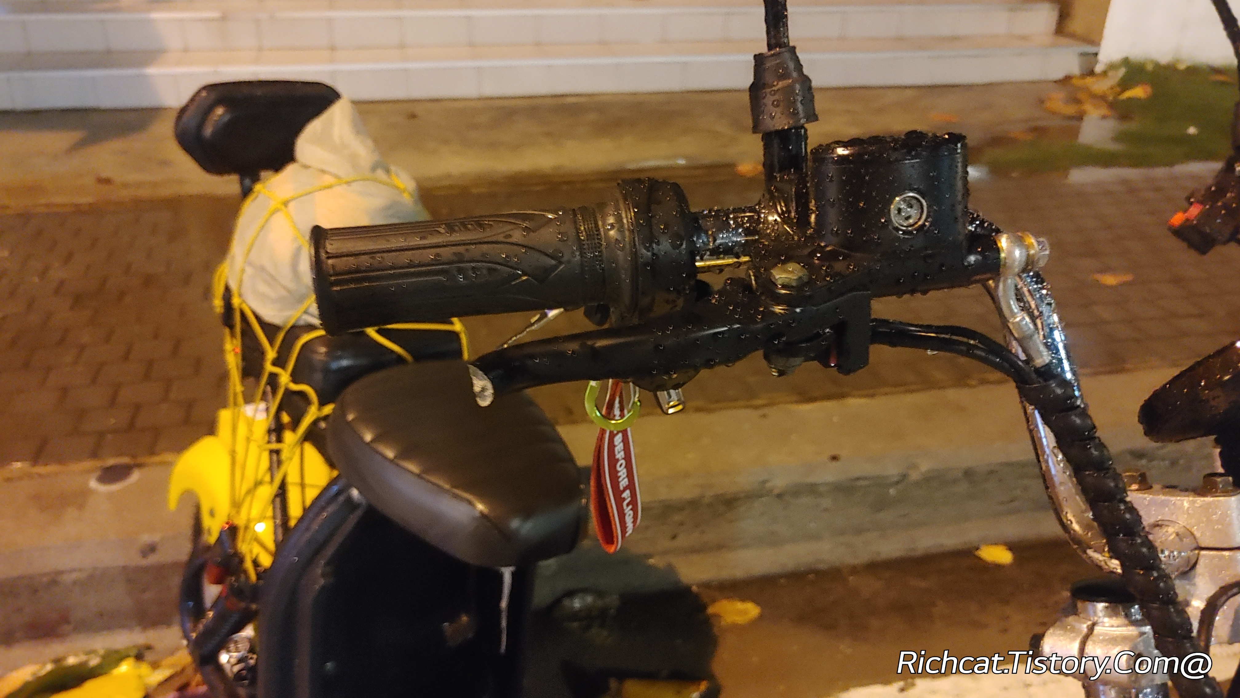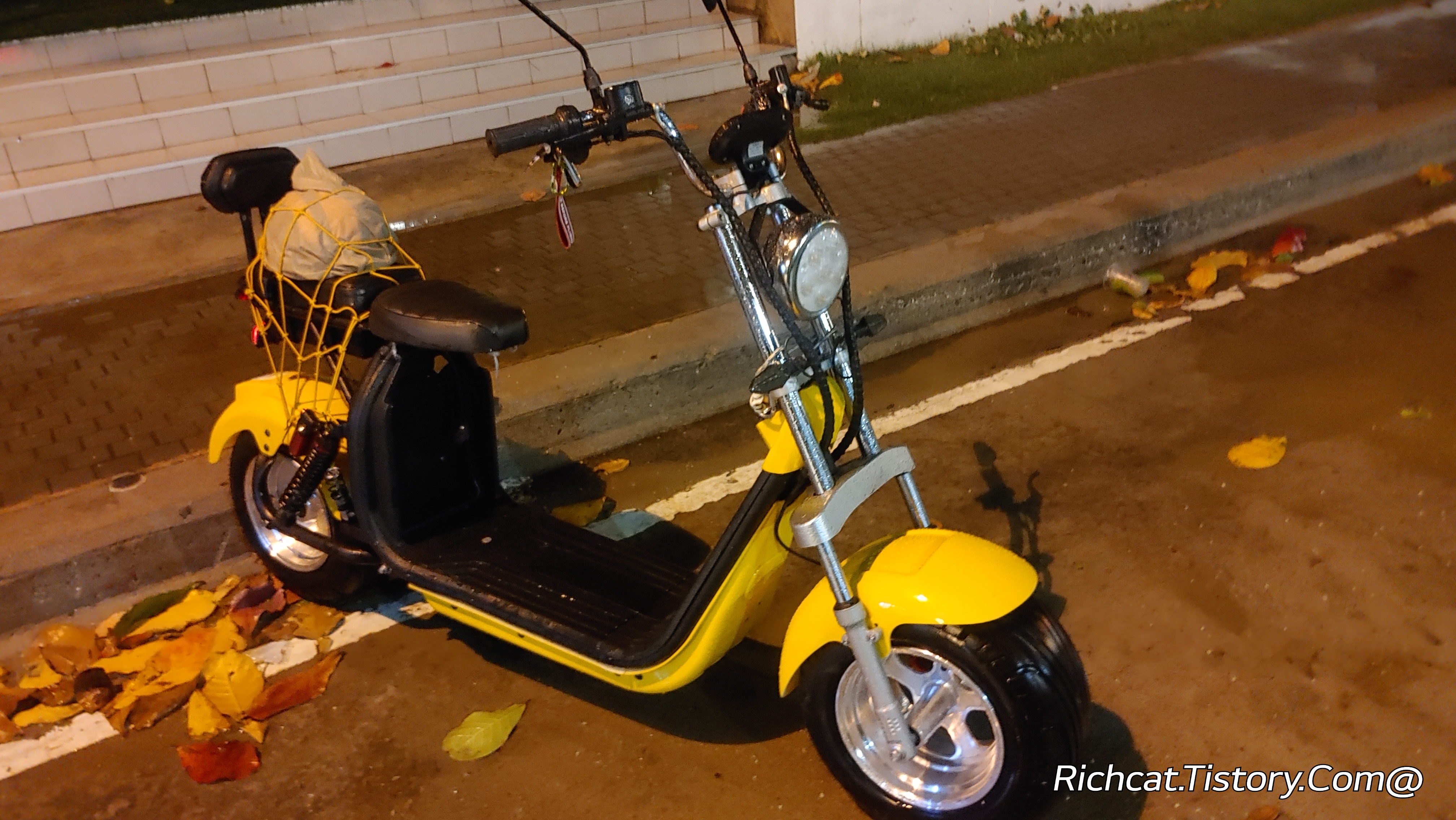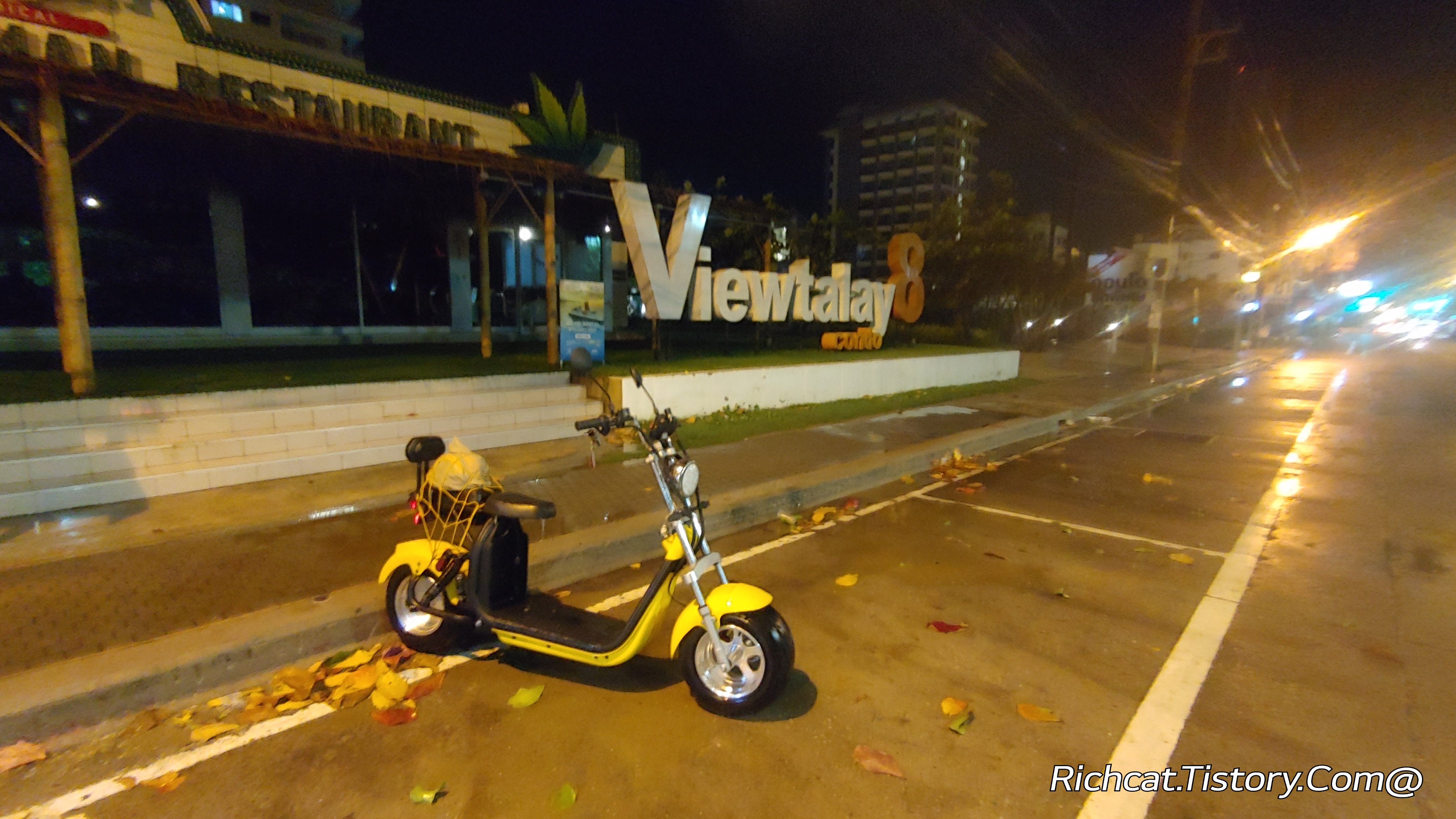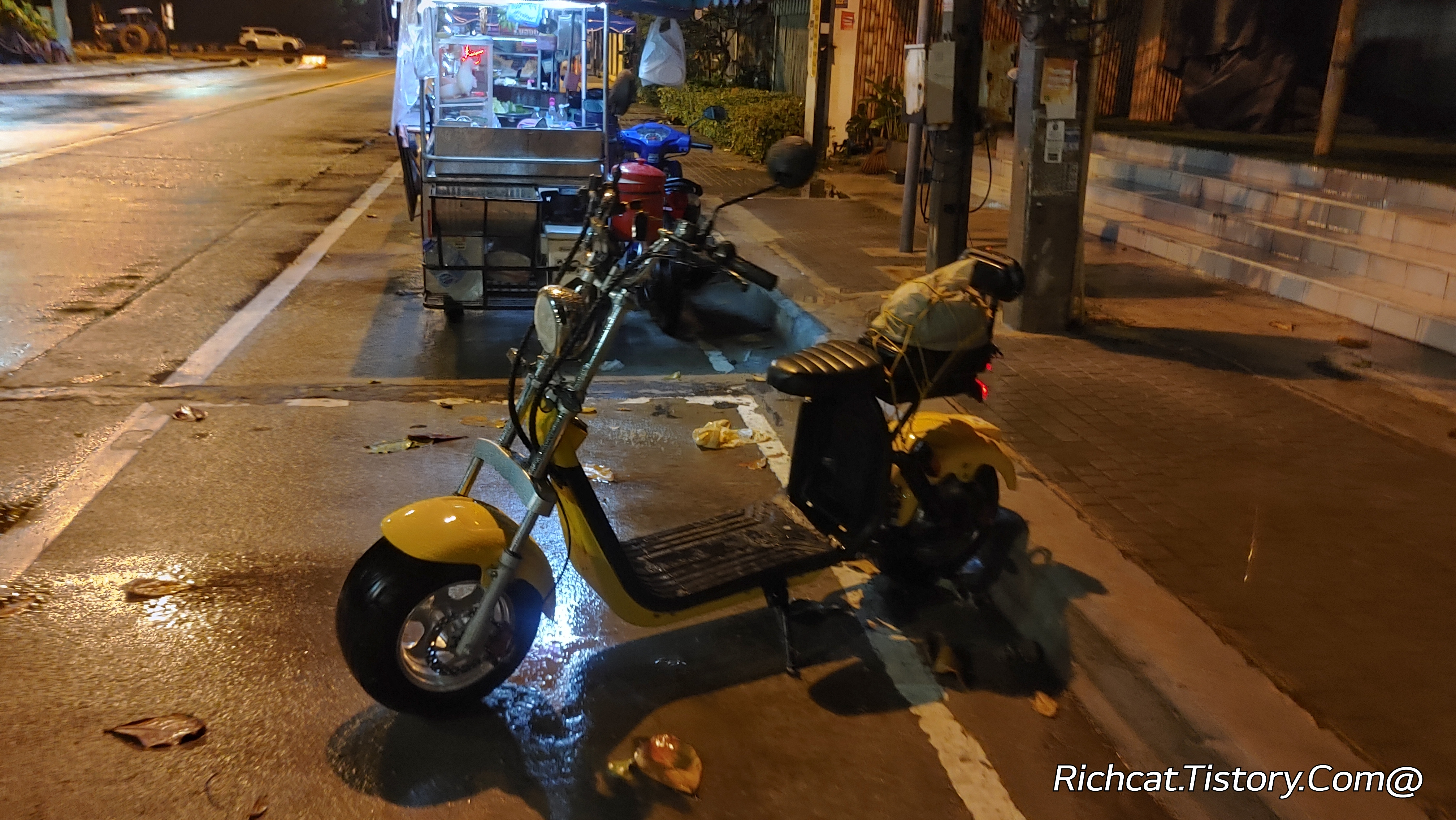 별수 없이 식당앞 길에 주차해 뒀던 스쿠터.