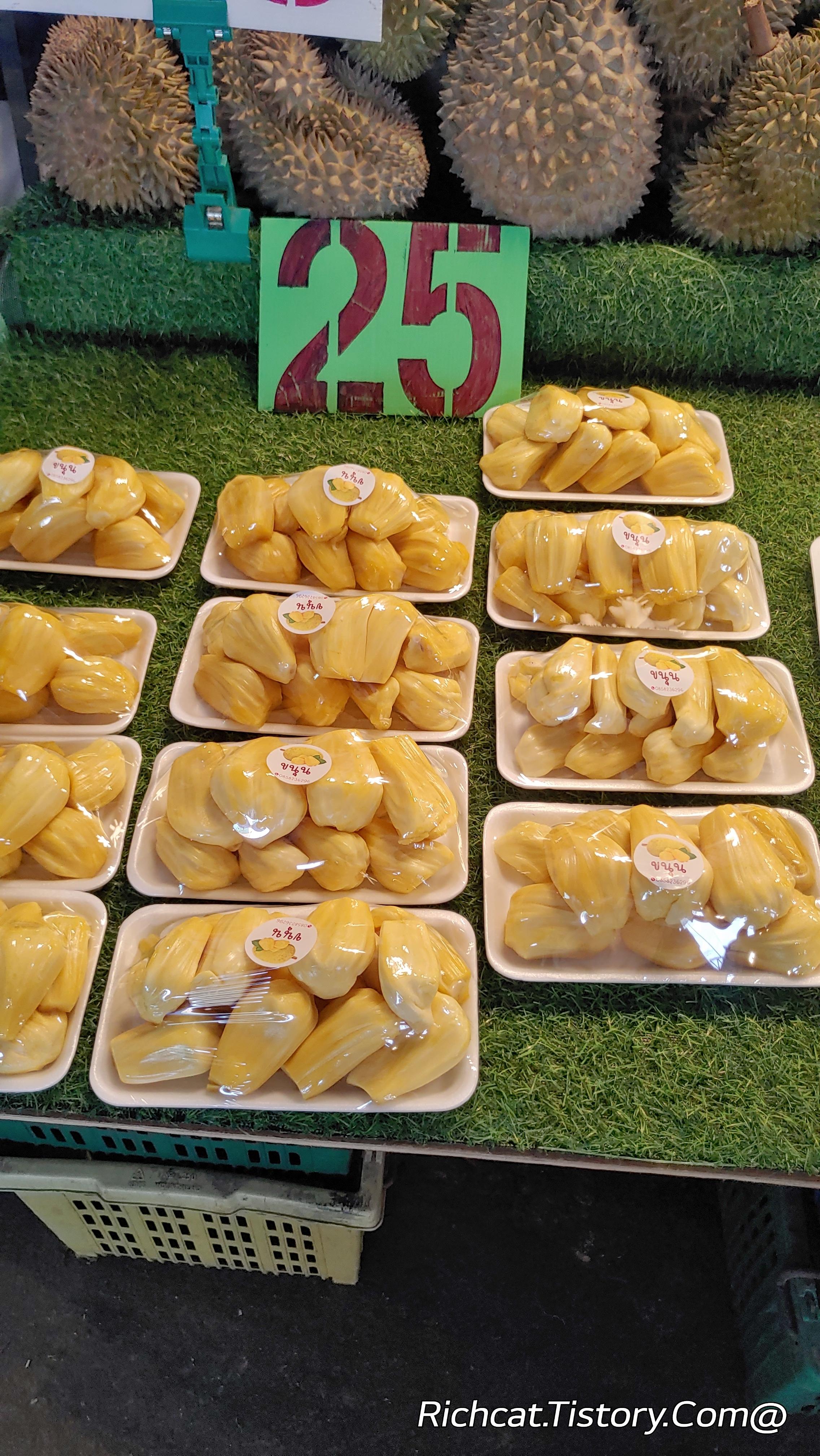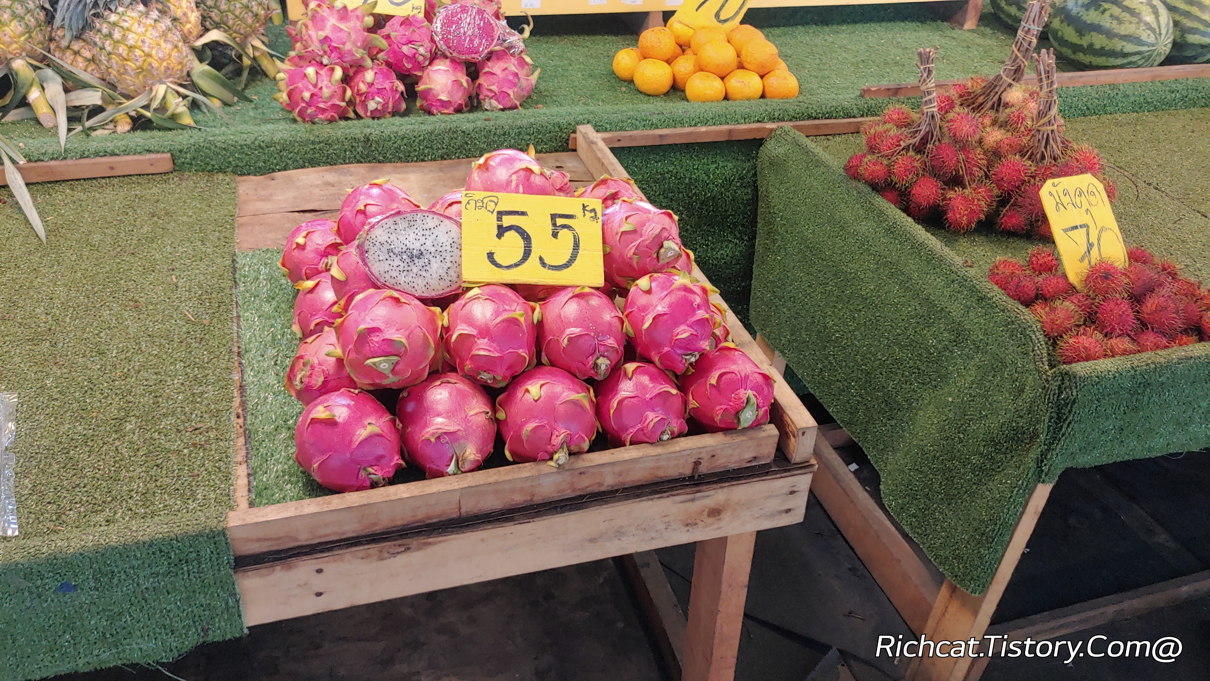 태국 파타야 재래시장의 용과, 잭푸룻, 쏨 가격...