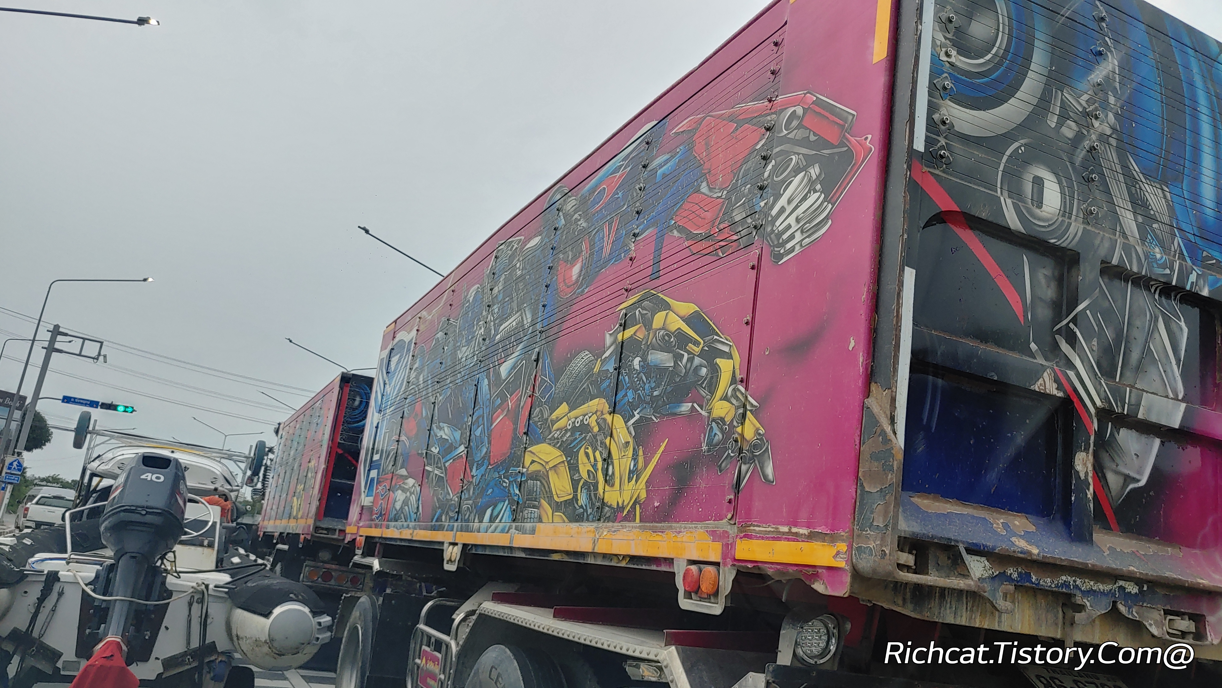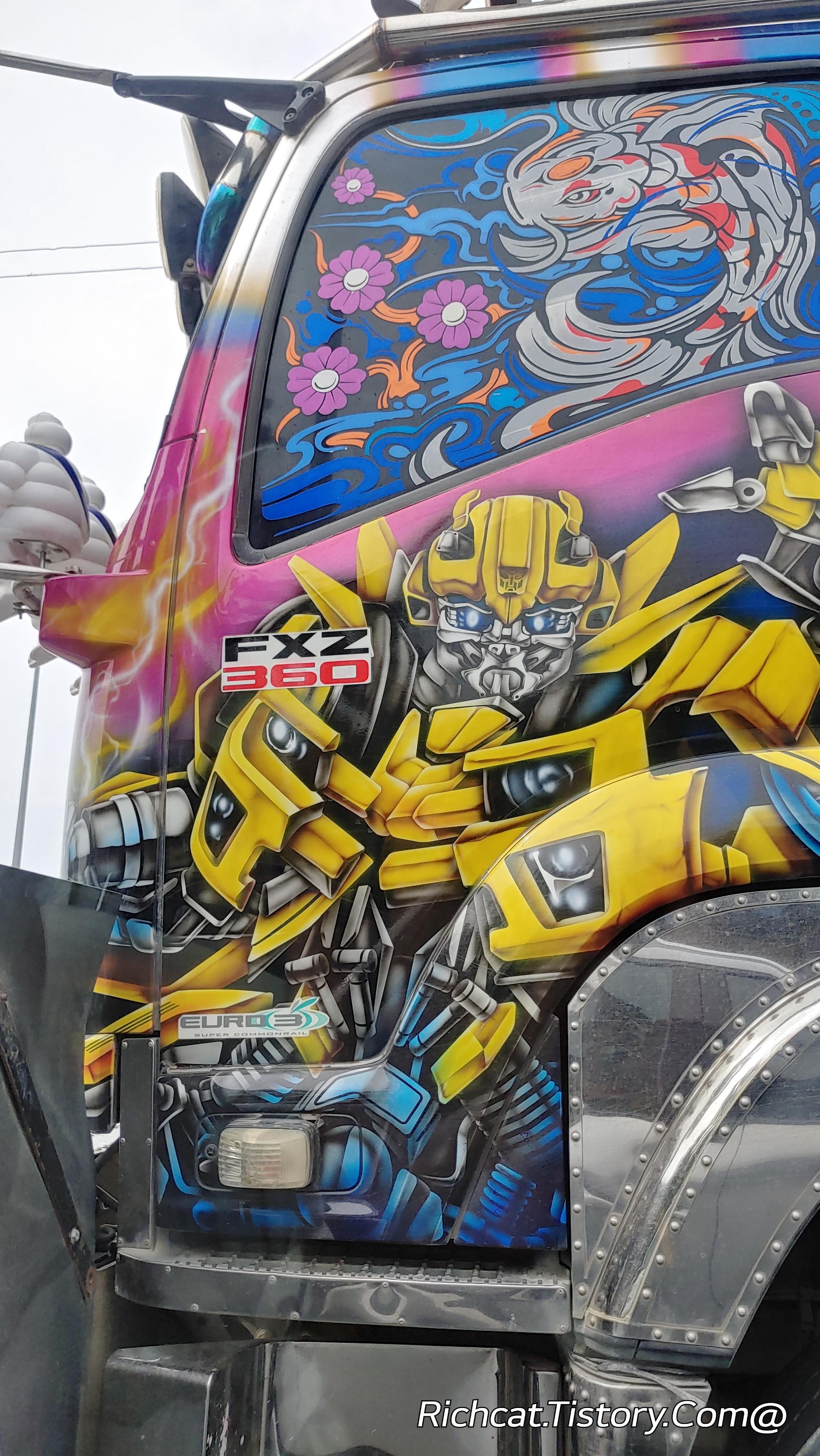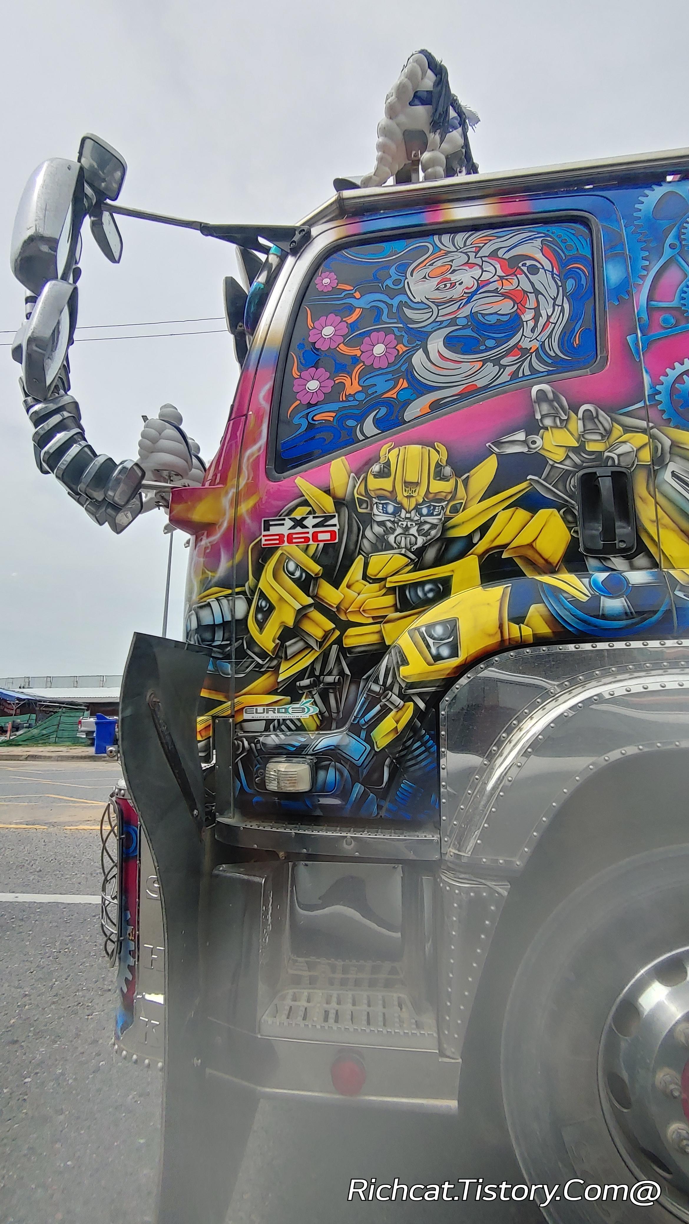 상당히 강렬한 그림을 그려 놓은 트럭이 보이길래 따라가면서 유심히 봤더니...
