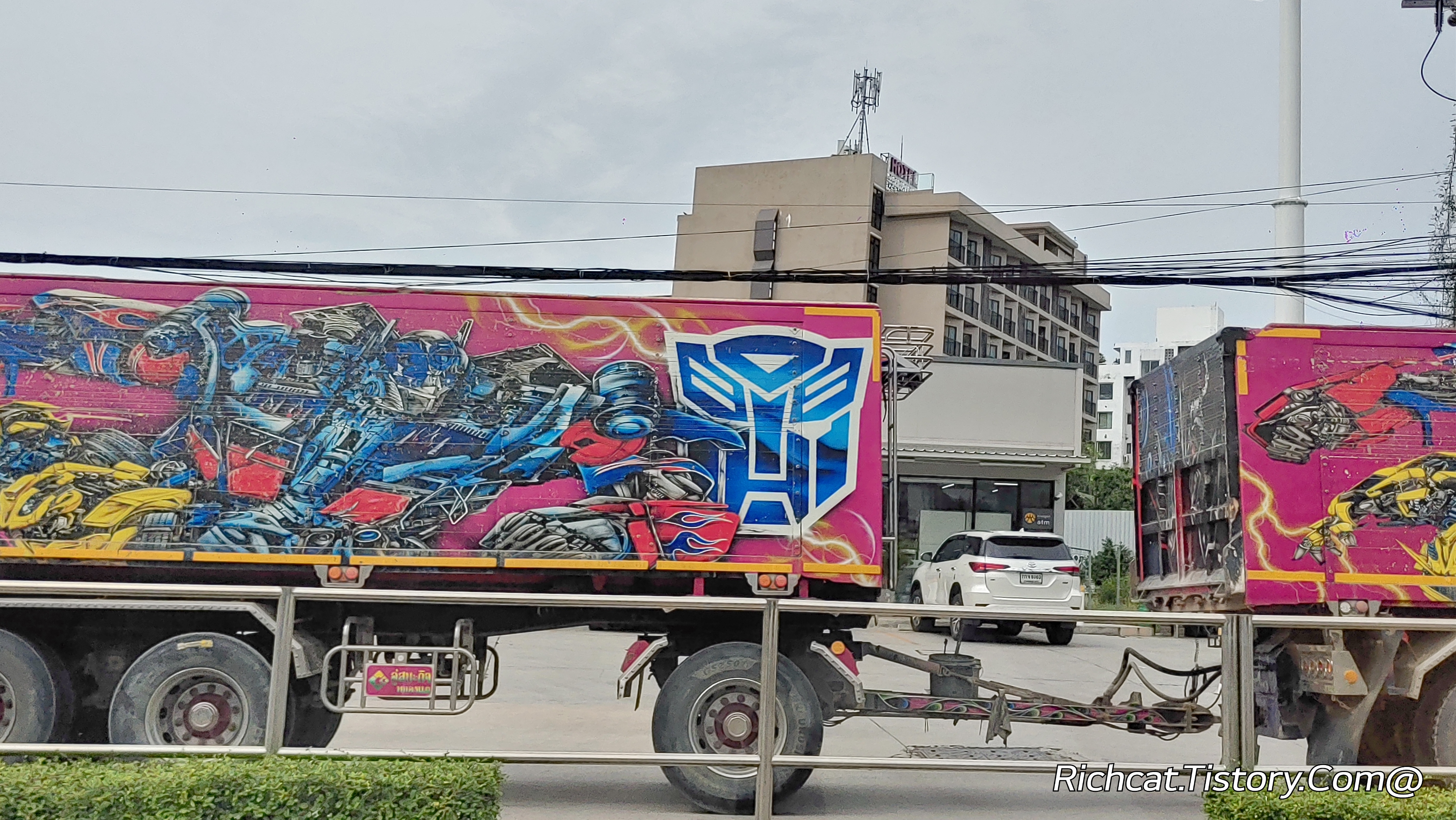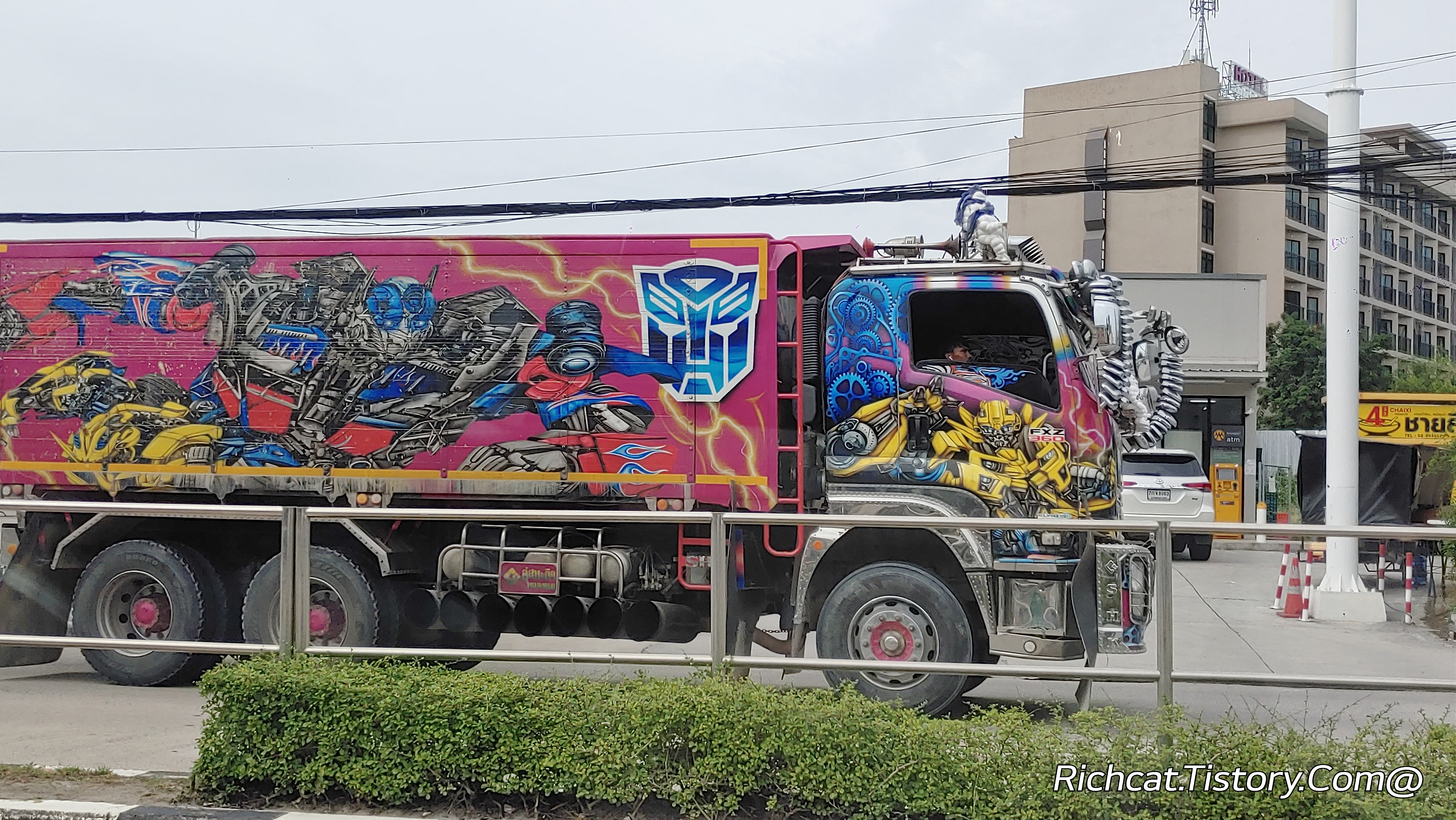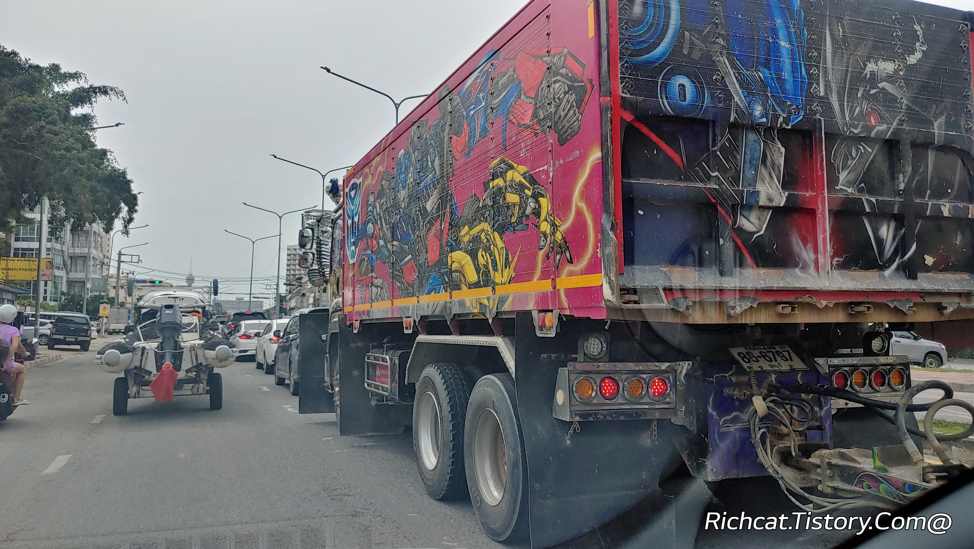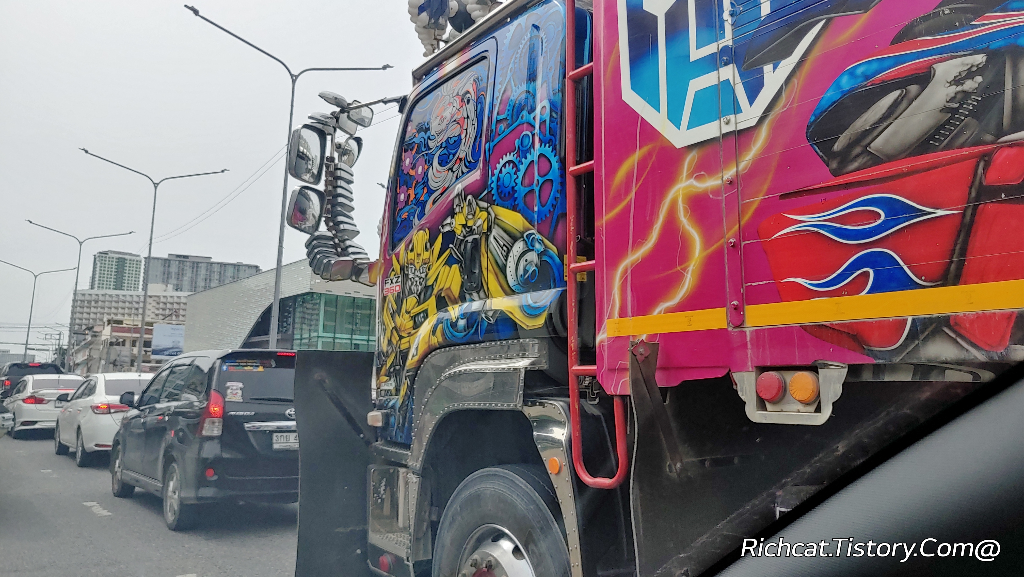 상당히 강렬한 그림을 그려 놓은 트럭이 보이길래 따라가면서 유심히 봤더니...