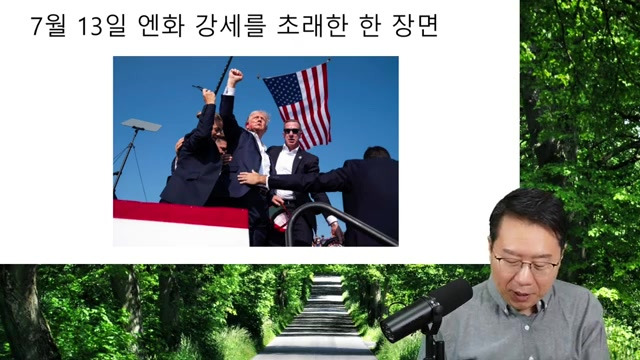 최근에 엔화 가치의 반전이 일어났죠. 끝없이 추락하던 엔화가치가 최근에 갑자기 급격하게 오르고 있는데 앞으로이 엔화 가치의 반전이 미국 대선판 그리고 한국 경제에 어떤 영향을 미칠지 짚어봤습니다. 원래 번하면 외안 보유액이 정말 많은 나라로 유명 하, 죠 중국 다음으로 두 번째로 외안 보유액이 많은 나라 입니다. 자, 이런 나라가 외안 시장에 집중적으로 개입을 하. 니까 이게 당장 영향을 미쳤습니다. 자 7월 10일에 11.7 n 야 이렇게 올라가던 화율이 일본은행의 개입으로 갑자기 이렇게 떨어지기 시작했습니다. 즉 다시 말, 하면 애화 가치가 올라갔다는 뜻이 되죠 그리고 또 한번 내려가는 일이 생기는데. 이게 사실은 정치적 이벤트 때문에 엔화의 환율이 이렇게 떨어지는 현상, 즉 엔화 가치가 더 급격하게 올라가는 현상이 일어났습니다. 그래서 외한 시장에 일본 당국이 개입한지 딱 보름만에 엔화 환율이 161.7 n 152.7 n 야, 이거 갑자기 엔을 확 보내 버렸는데요. 26일에는 살짝 오름새 보이고 있습니다. 지금까지 많은 외안 시장 참가자들이 엔저가 더욱 가속화될 것이다, 이쪽에 배팅을 했었거든요. 근데 이렇게 외한 시장 참가자들이 한쪽으로 쏠렸던 현상, 이걸 뒤집는 사건이 있었습니다, 바로 7월 13일.