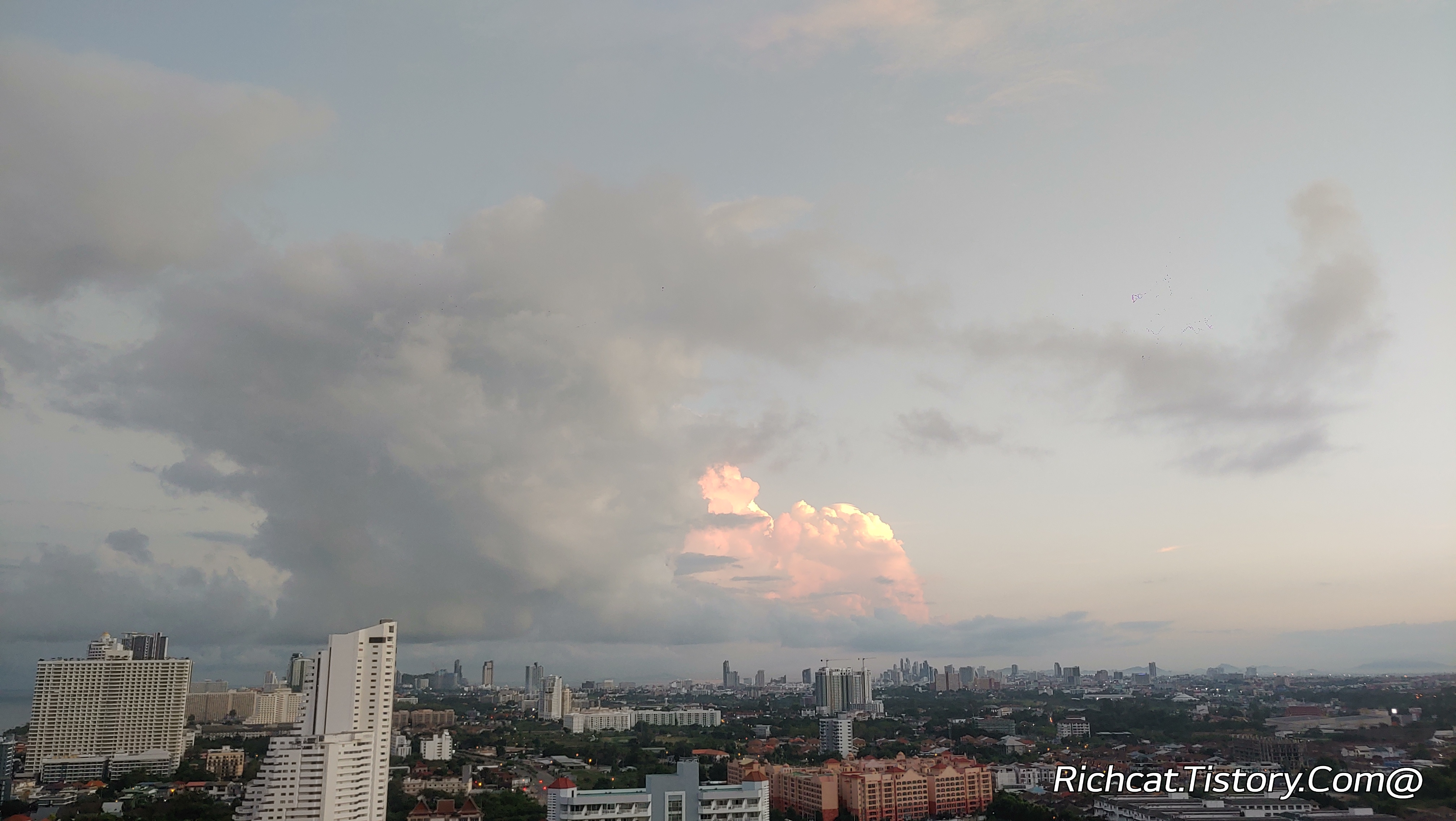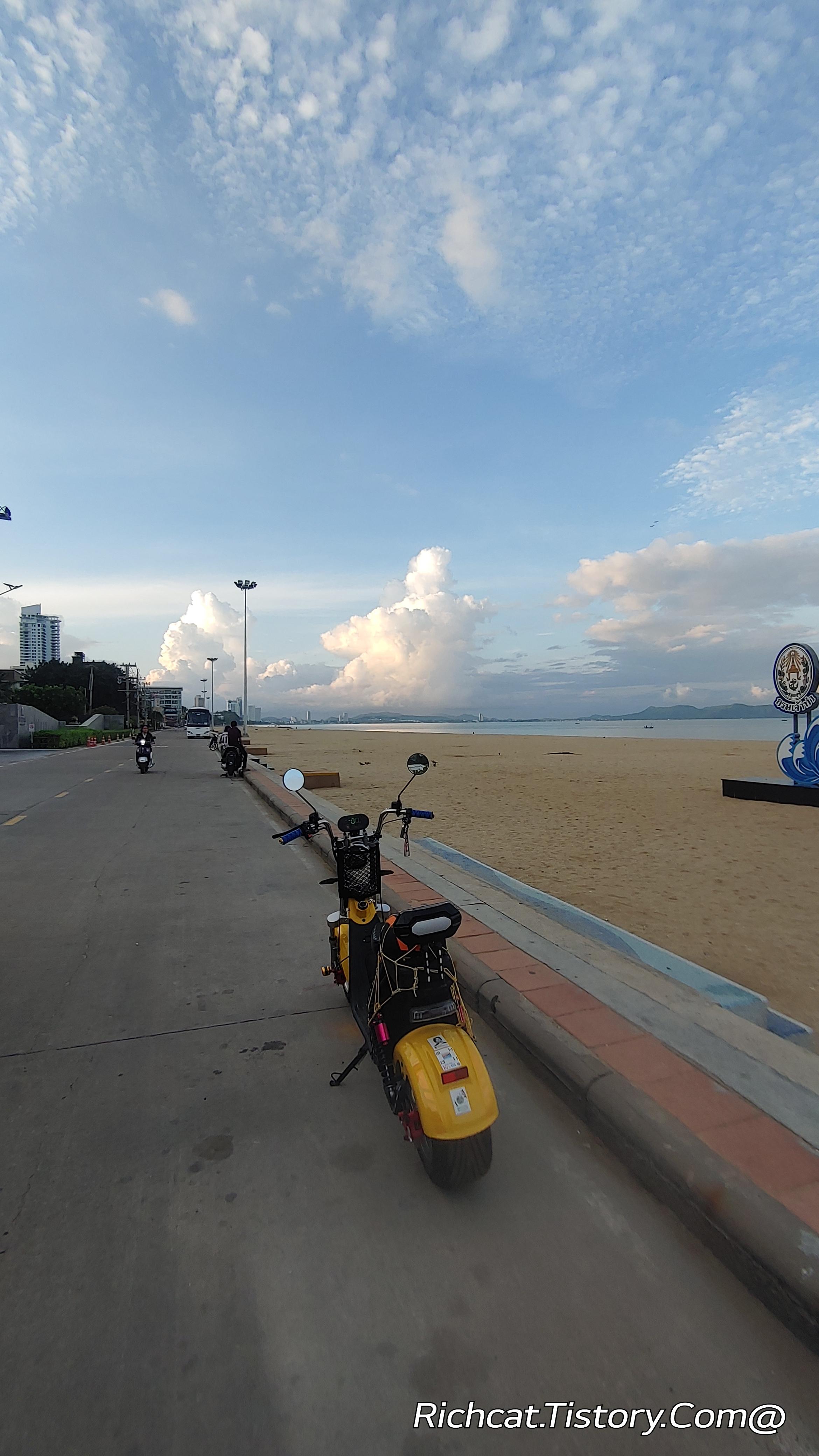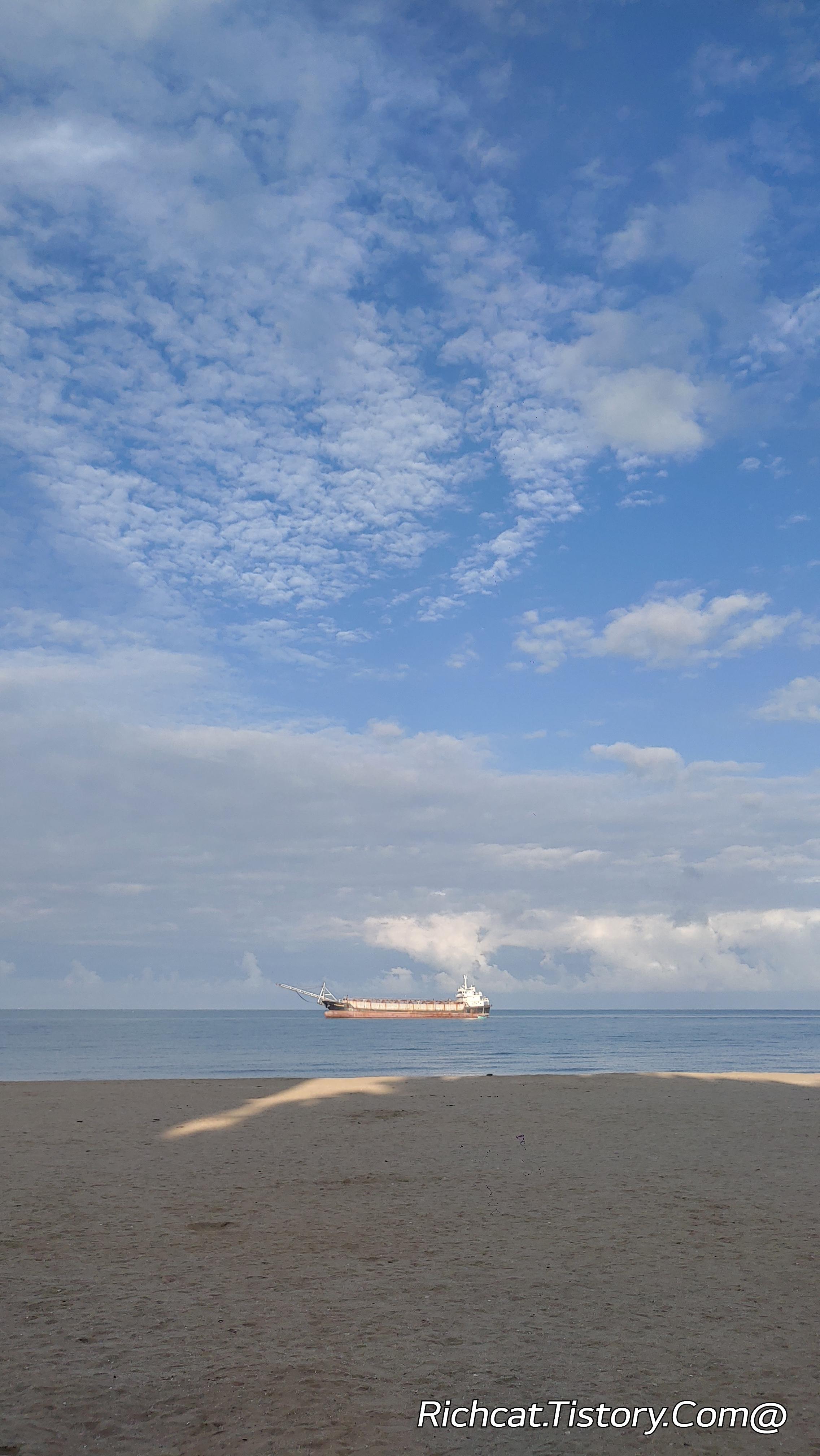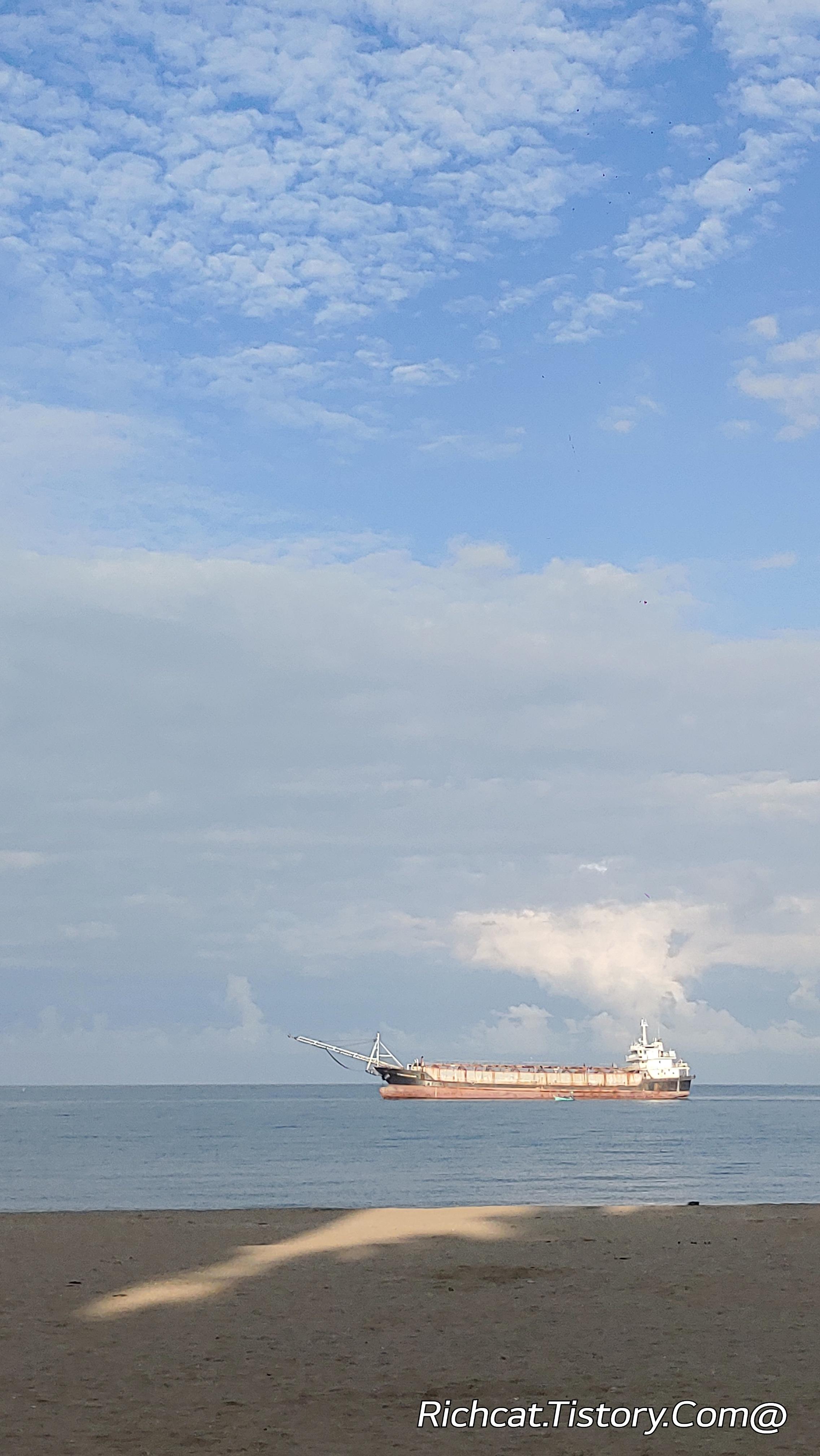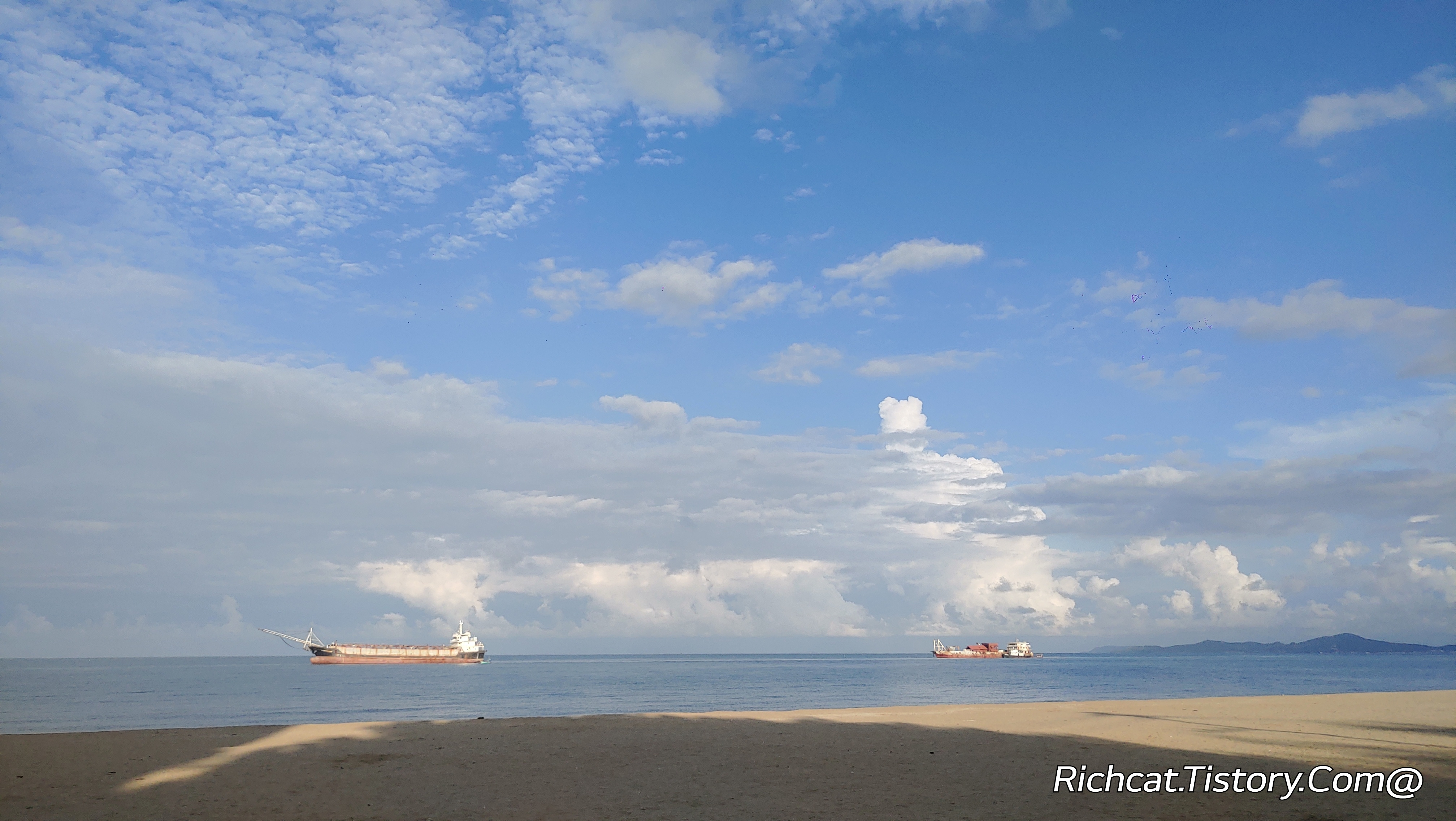 좀티엔 바다에 떠 있는 준설선도 바다 색깔과 하늘 색깔 그리고 구름 색깔과 어울려서 너무 이쁘게 보인다 ^&^