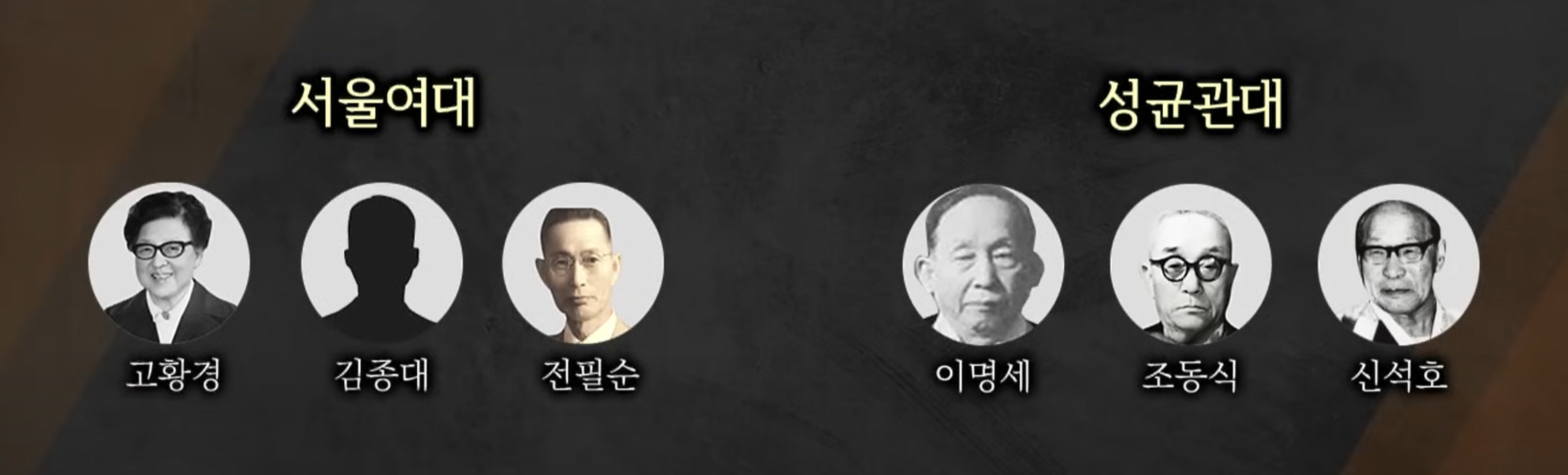 - 일제강점기와 박정희 정권 등 여러 시기에 친일 행위를 했던 인물들이 대학의 주요 직책을 차지했다.