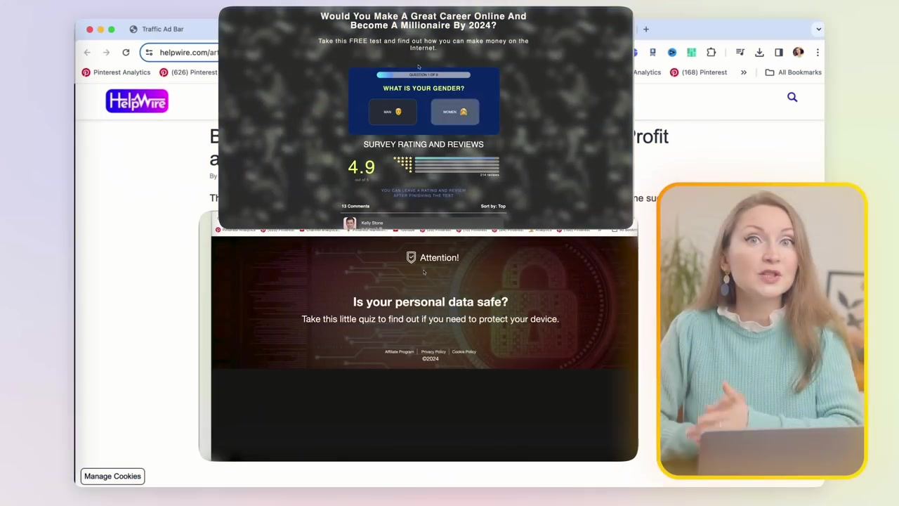 - 온라인으로 돈을 벌기 위한 바로가기 방법은 없다. 영상에서 시도한 것들은 이상한 무료 광고가 아닌, Pinterest, Google, YouTube, Quora 등의 일반적인 트래픽 소스로 어떻게 트래픽을 유도하는지를 이해해야 한다.
