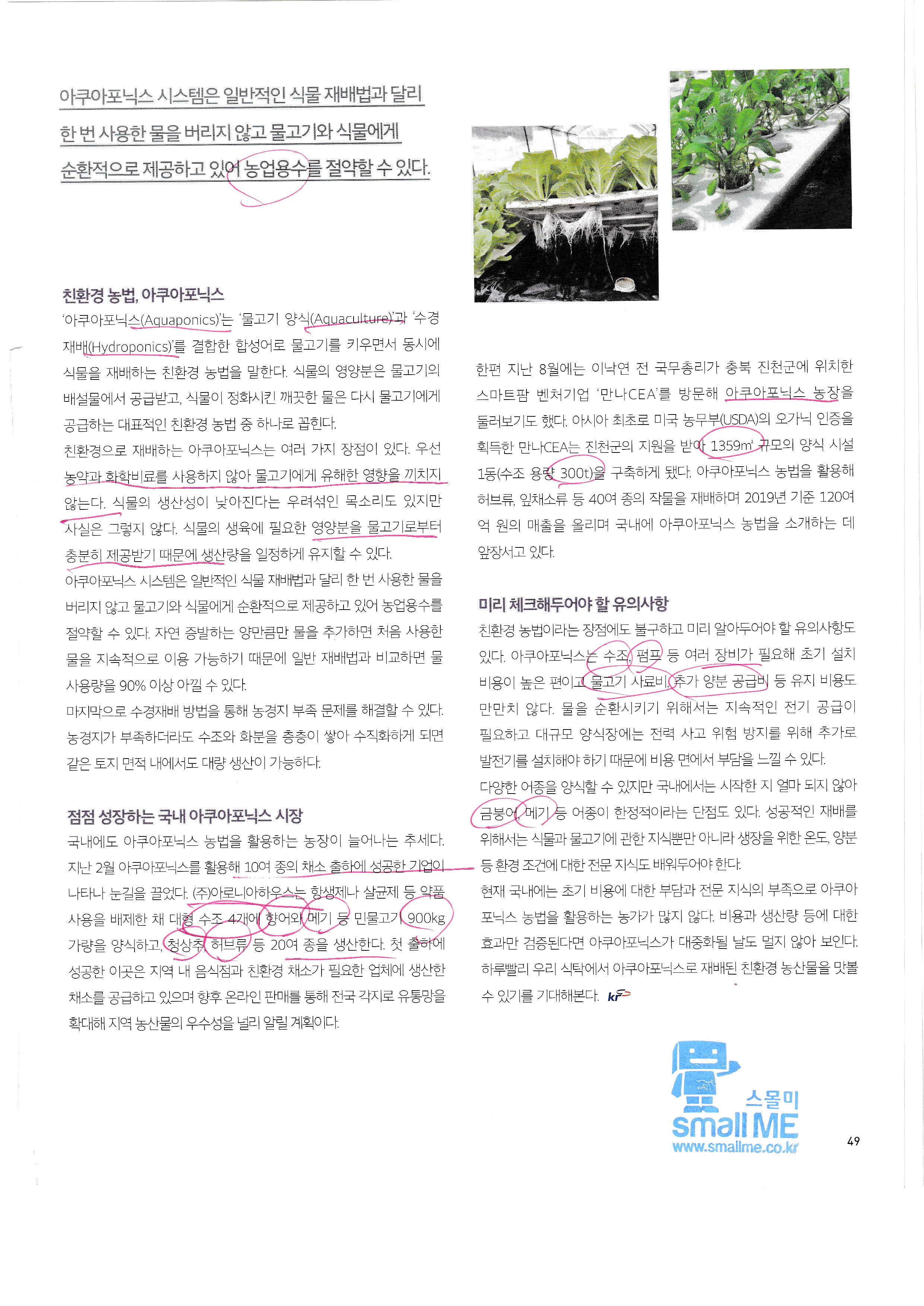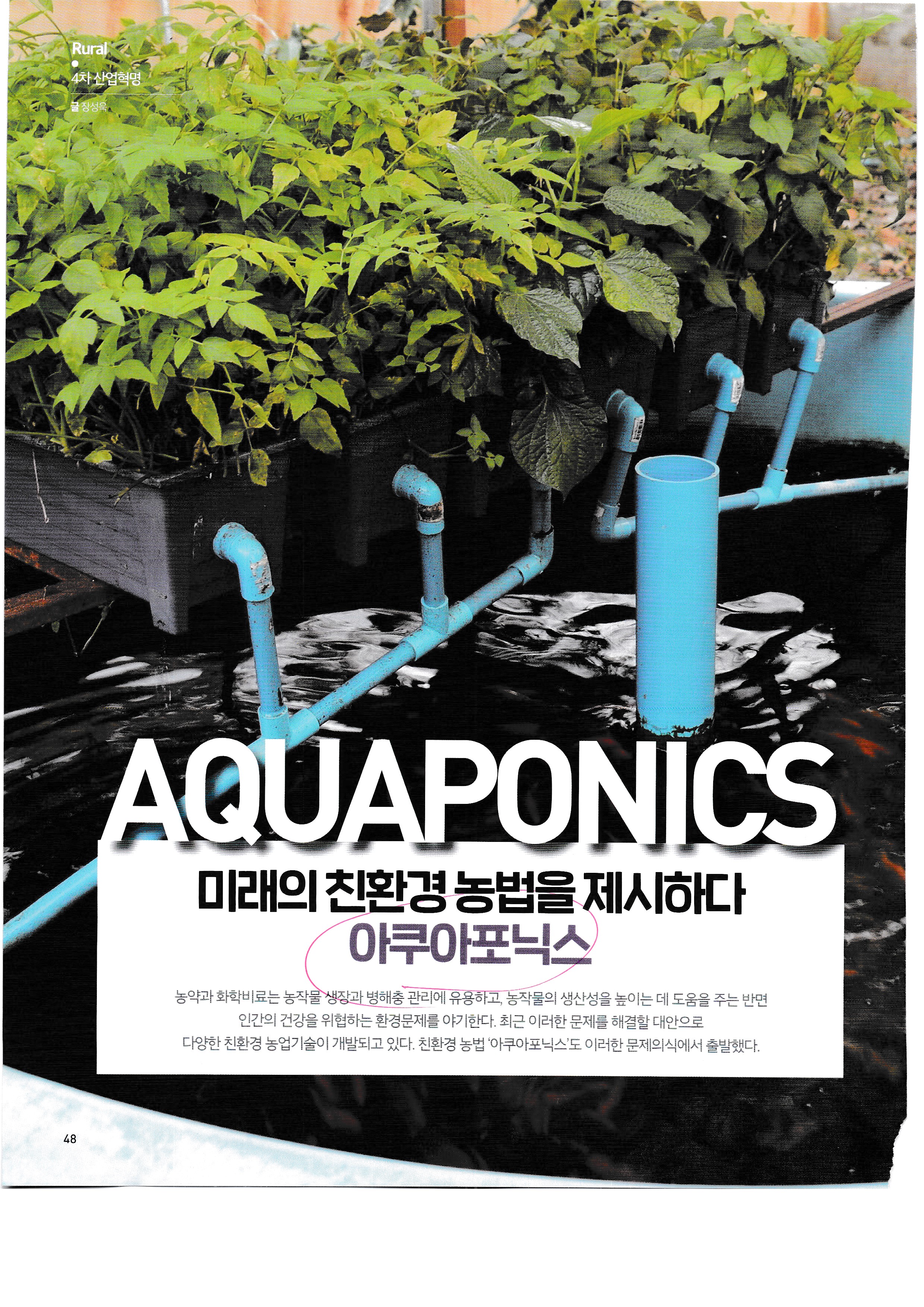 물고기 키우는 수조에서 물을 펌프로 보내서 식물을 키우는 방식...기가 막힘.