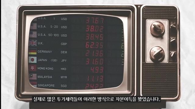 - 많은 투기 세력들은 환율 변동을 이용해 자본 이득을 보아 큰 돈을 벌었다는 사실이 관찰되었다 .