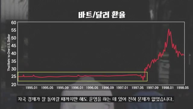 - 태국 정부는 바트와 환율 변동폭을 극히 제한적으로 운영했지만, 자국 경제가 안정적일 때까지만 문제가 없었으며, 이후 상황이 악화되었다 .