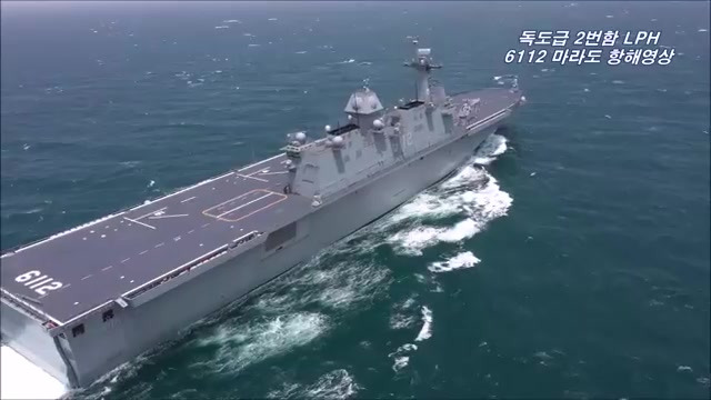 - 무인기를 함재기로 활용하는 대형 수송을 통한 전력 건설이 현재 해군의 입장으로, MQ-1C 그레이 이글의 모하비 모델을 독도급에서 테스트하기로 결정했다 .