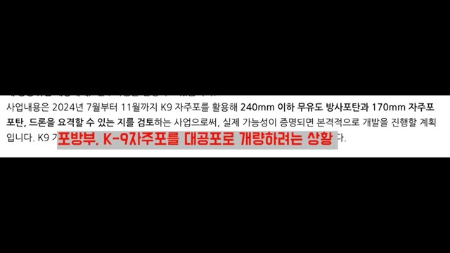 - 155mm 자주포 탄이 공중에서 폭발 시, 작은 무인기와 방사포까지 파괴할 수 있는 위력을 가질 것으로 예상된다 .