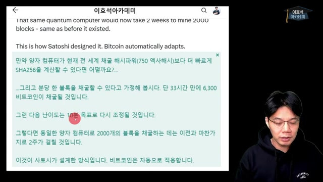 - 비트코인은 암호화폐가 풀릴수록 자동으로 적응하는 특성이 있어, 양자 컴퓨터의 위협에도 대응할 수 있다.
