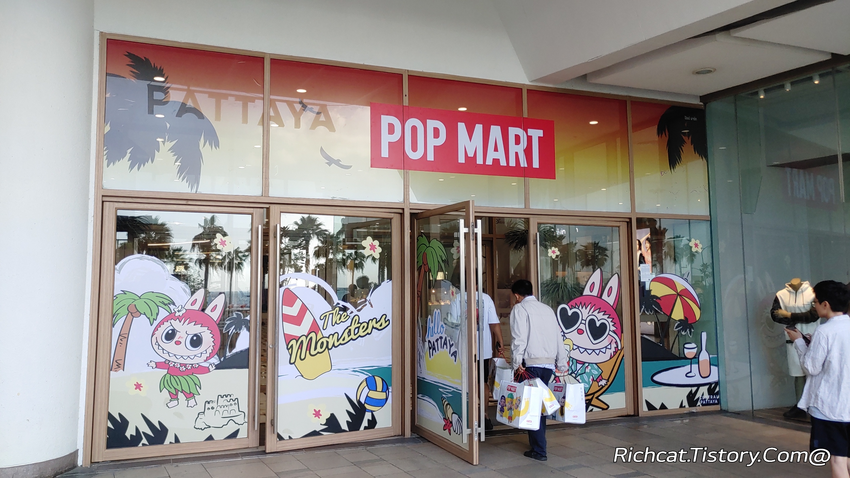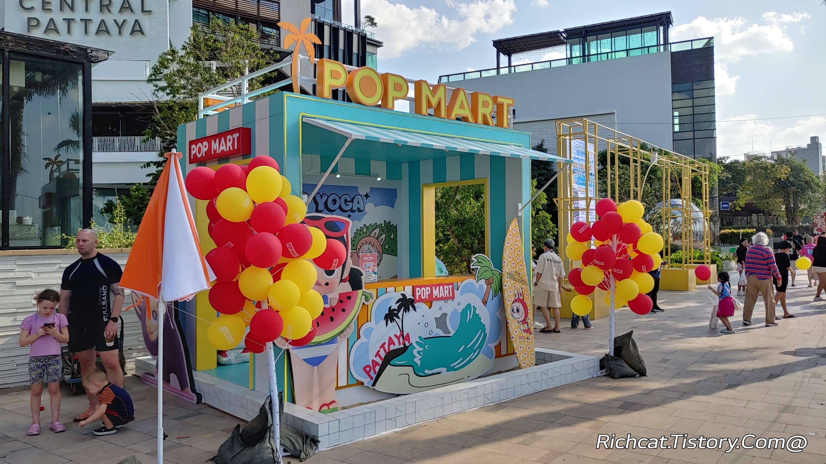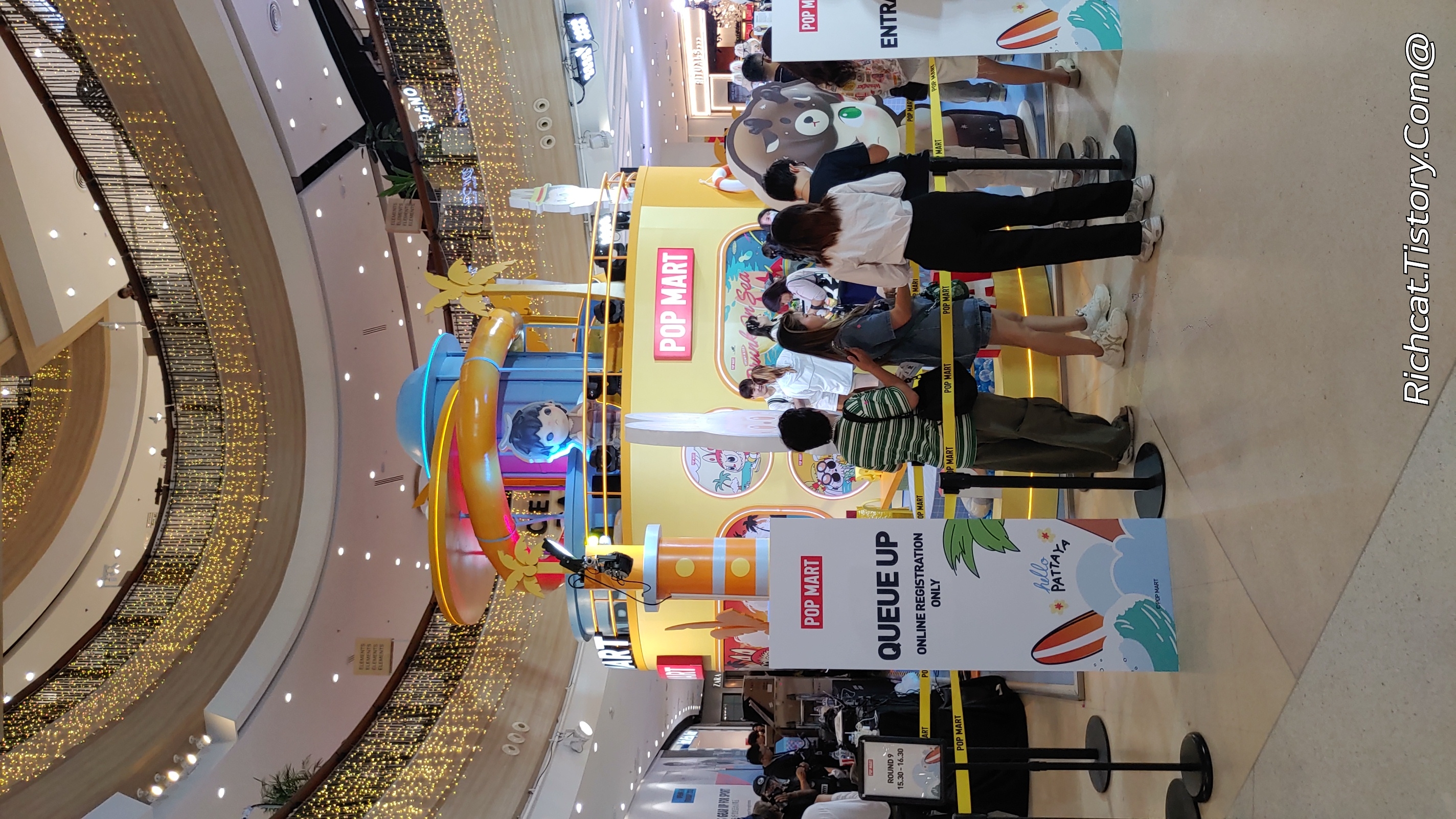 상당한 인파가 줄을 서있는 팝마트. pop mart in 센트럴페스티벌 파타야