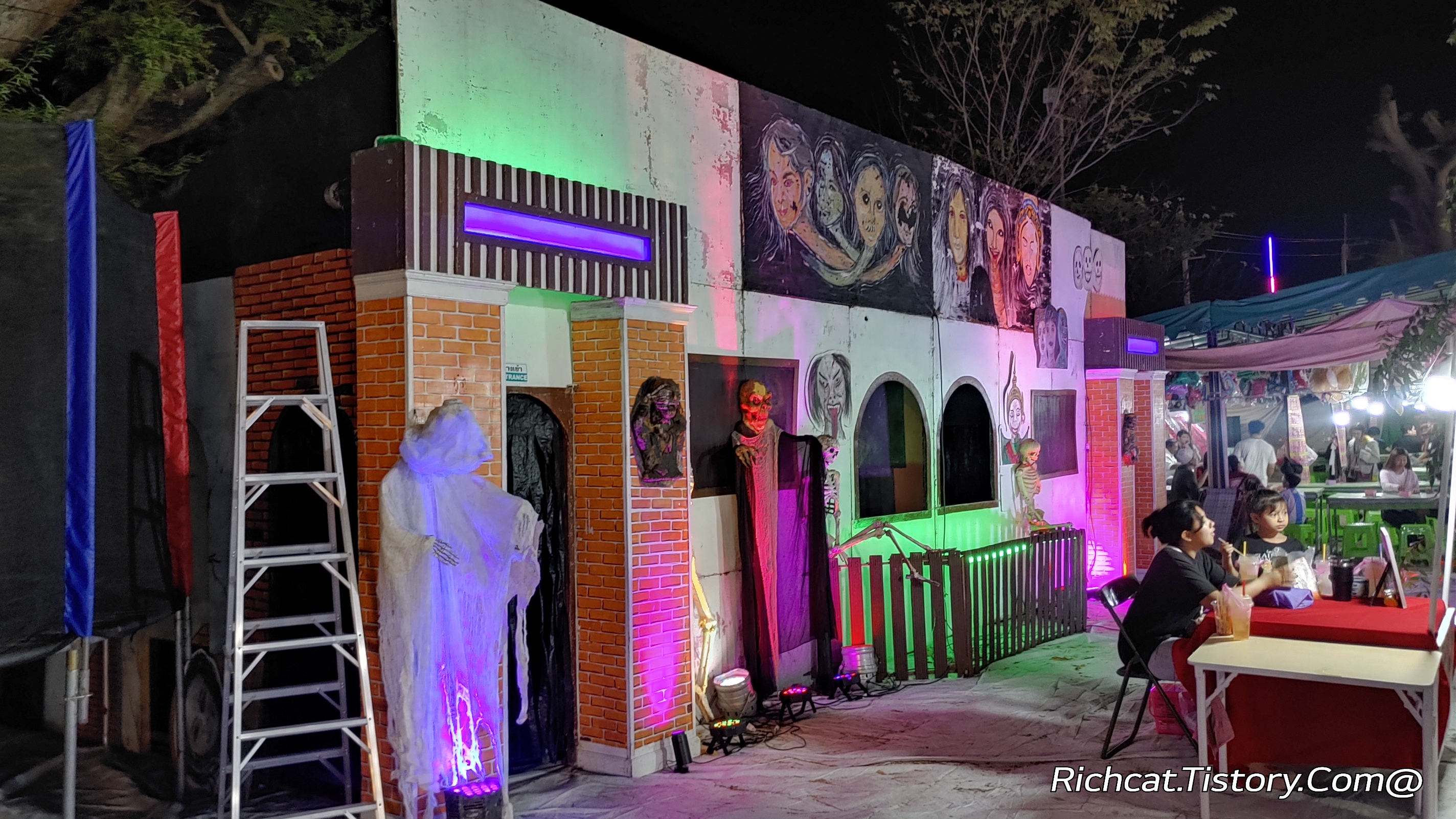 태국의 체험 비즈니스 : 작은 주방 체험. 인형 색칠하기 체험 유령의집 체험.