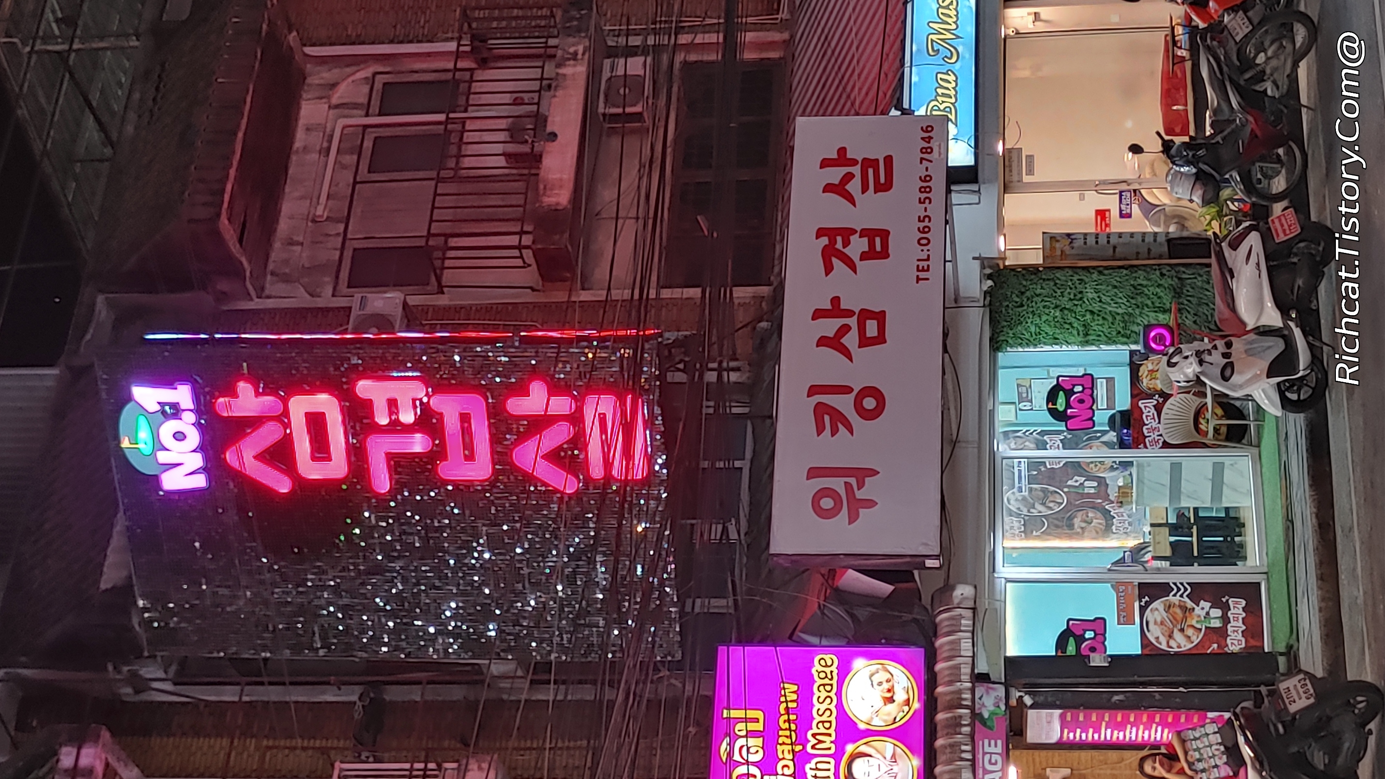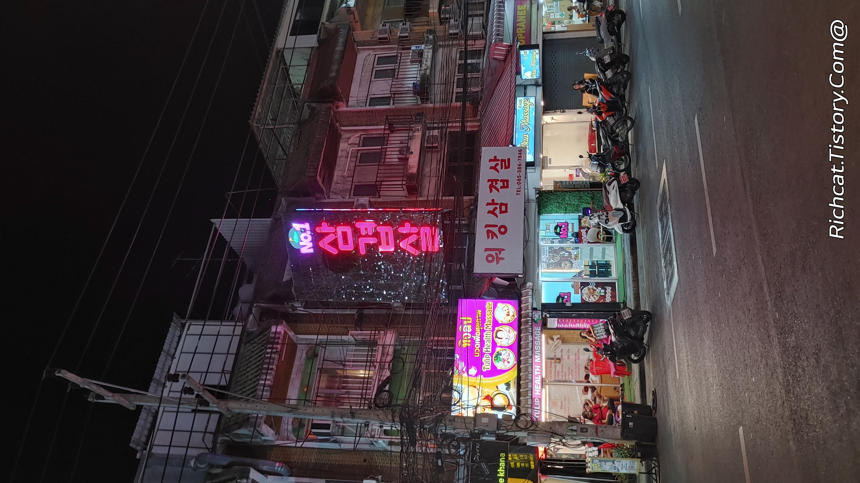 삼겹살 간판이 보이는 워킹스트리트 풍경