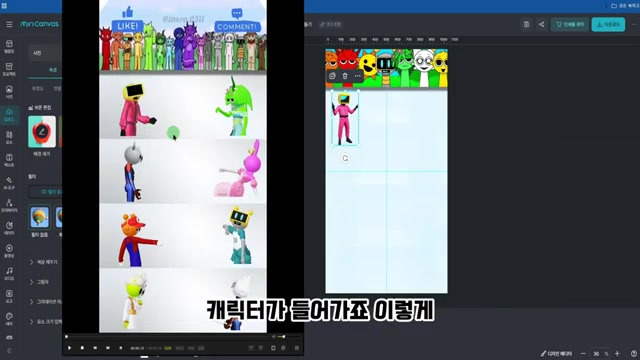 캐릭터를 불러온 후 배경 색깔을 제거하여 깔끔한 작업이 가능하다.