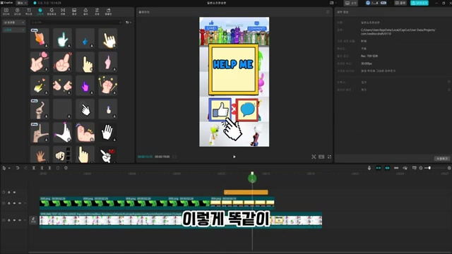 스티커를 통해 손가락 모양을 추가하고, 키프레임을 설정하여 움직임을 자연스럽게 연출할 수 있다.